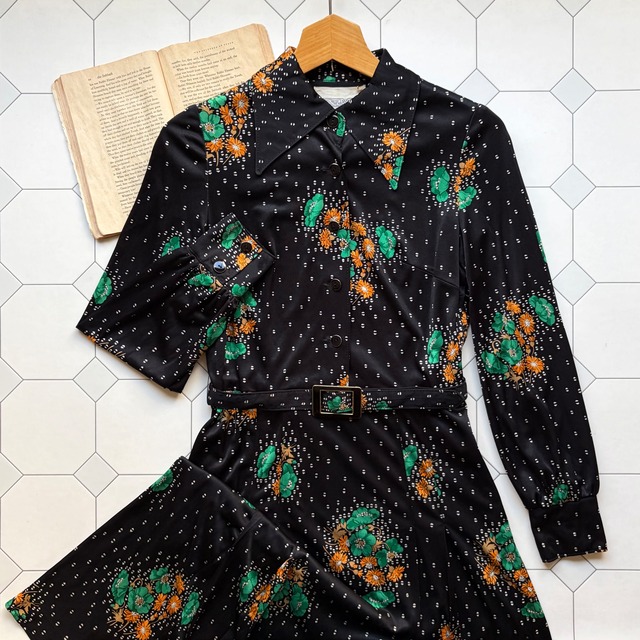 Psychedelic Flower Print Belted Dress〈レトロ古着 サイケデリック 花柄 ベルト付き ワンピース ジャパンヴィンテージ Japan Vintage〉