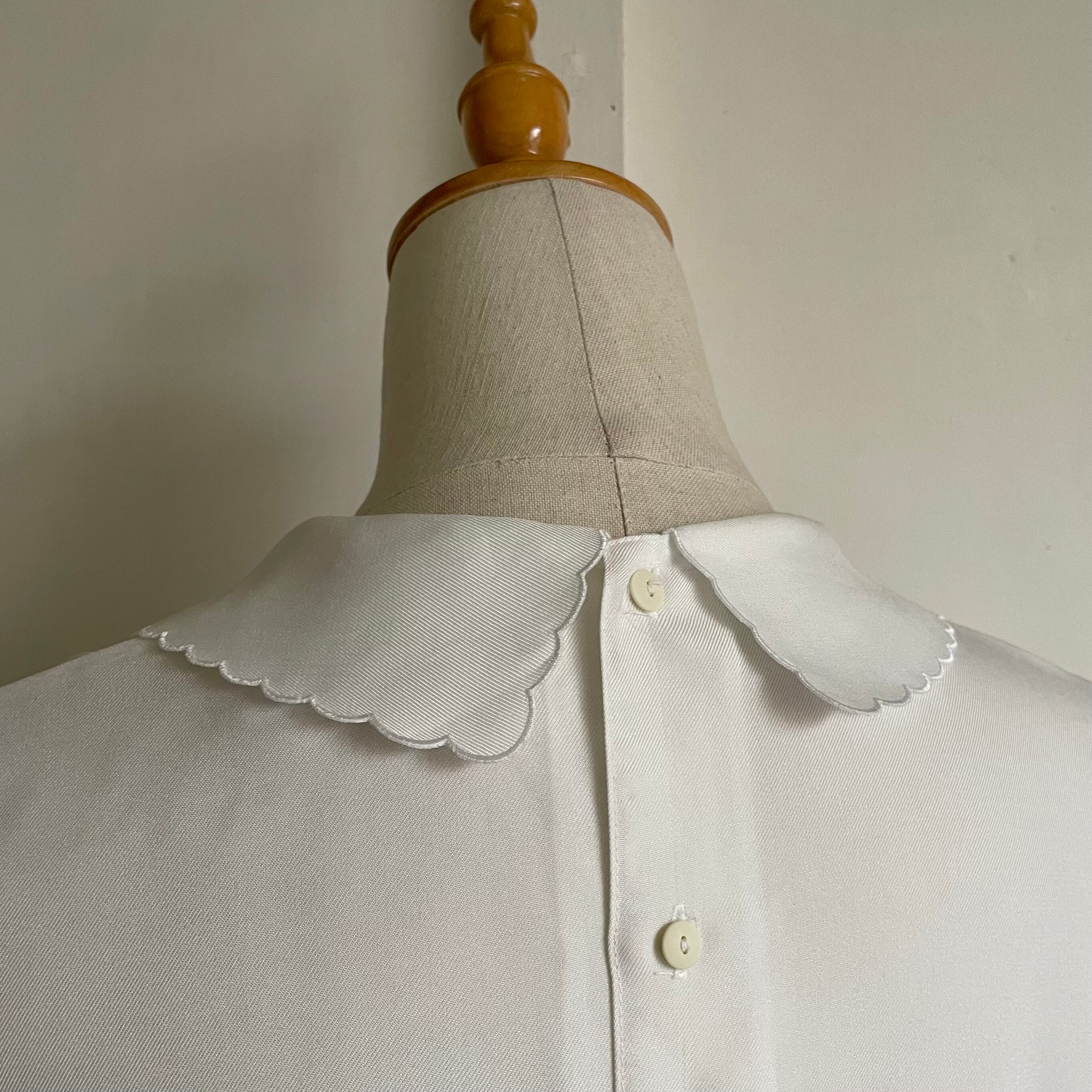 ribbon embroidered pintuck blouse 〈レトロ古着 リボン刺繍 ピンタック ブラウス 白 ジャパンヴィンテージ〉