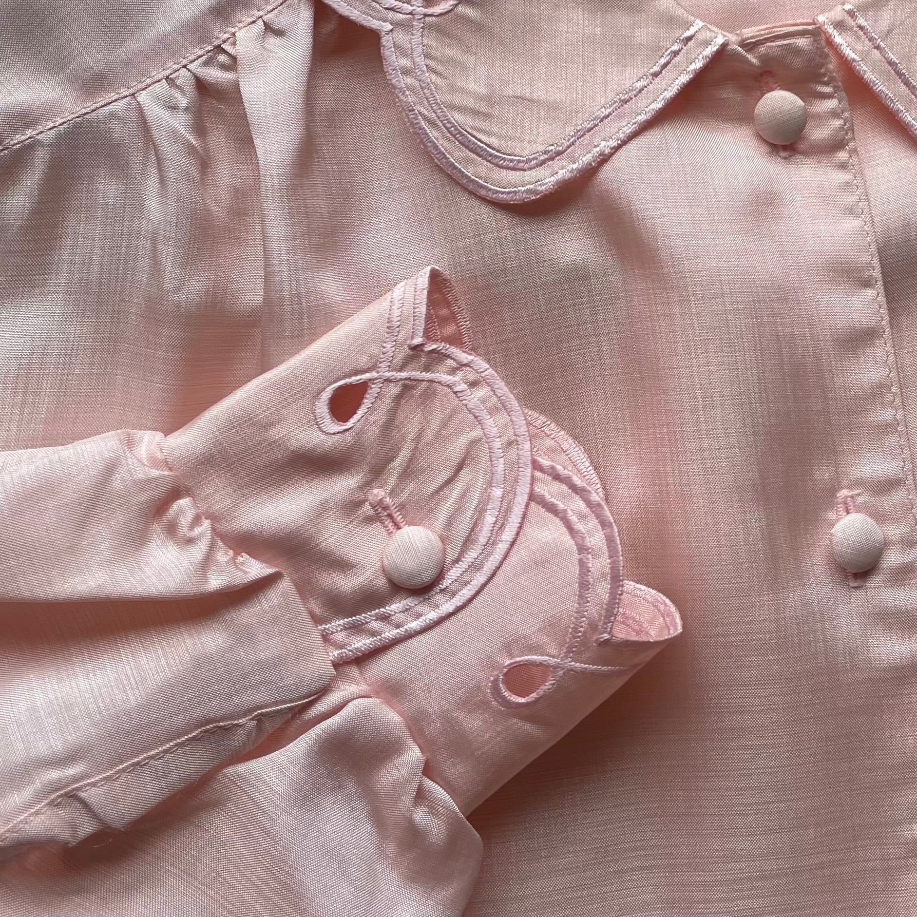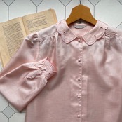scalloped pale salmon pink blouse 〈レトロ古着 スカラップ刺繍 ペールサーモンピンク ブラウス 日本製 ジャパンヴィンテージ japan vintage〉