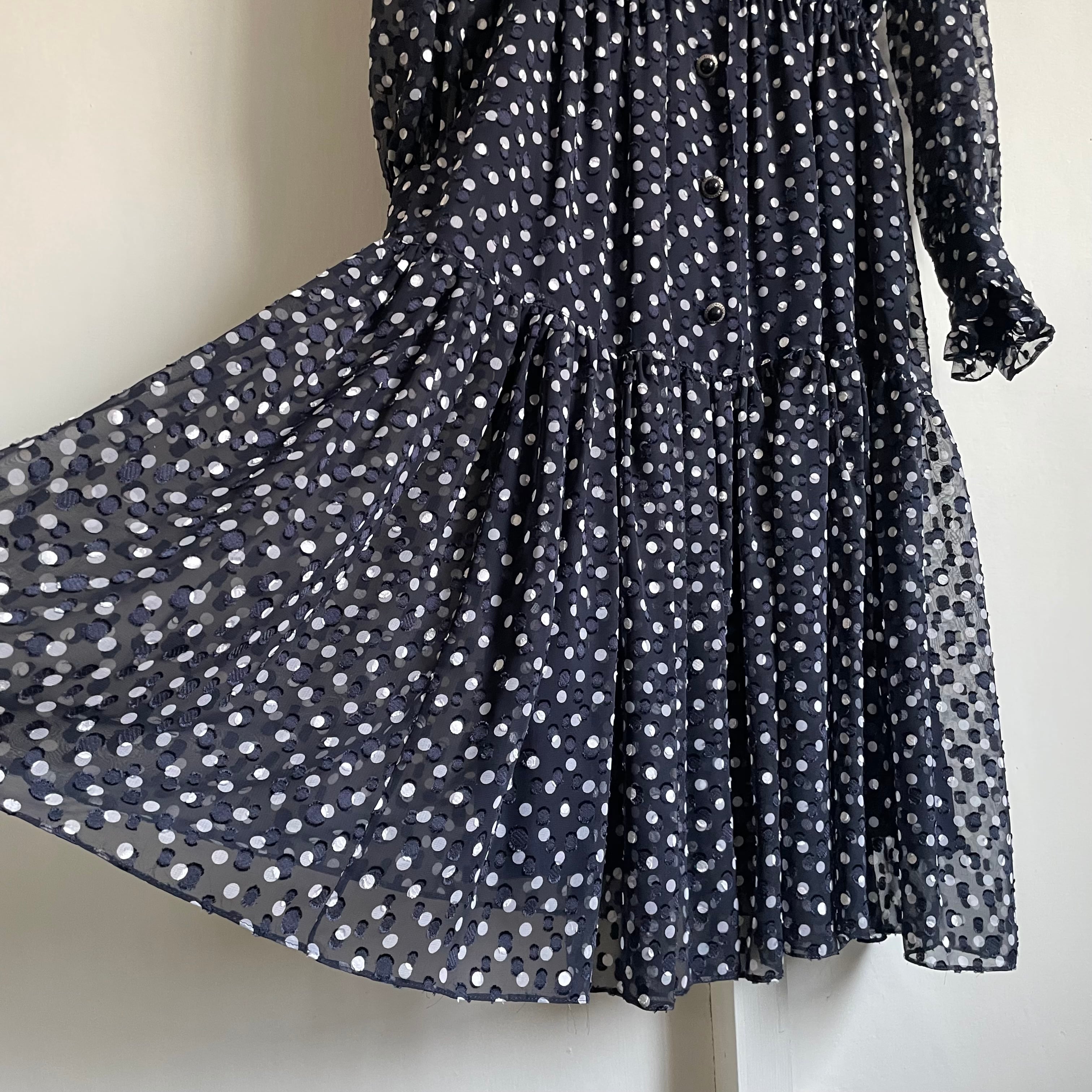 sheer sleeve polka dot dress〈レトロ古着 キミジマ シアー袖 ドット柄 ワンピース 日本製 ジャパンヴィンテージ japan vintage〉