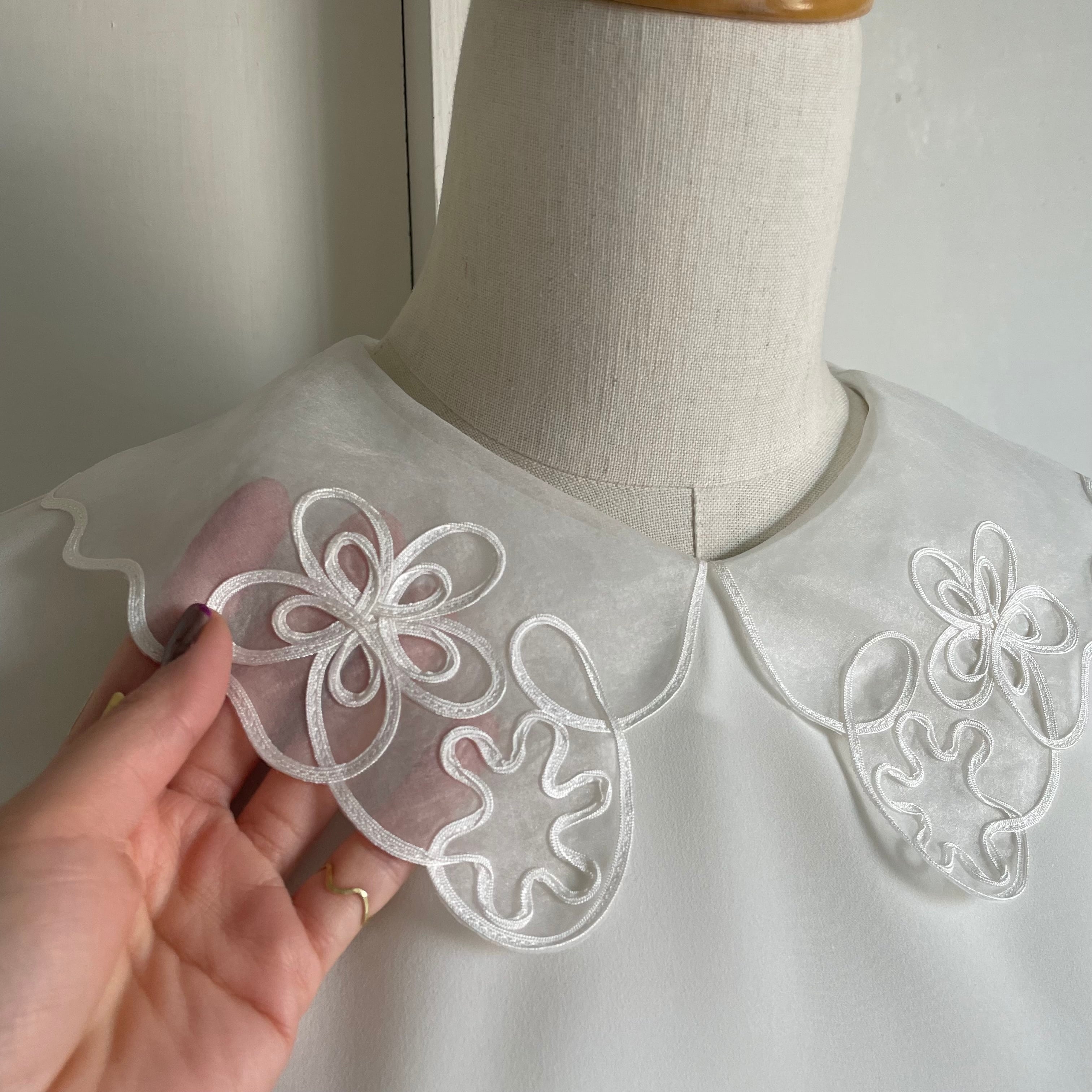sheer cord embroidered collar white blouse 〈レトロ古着 シアー コード刺繍襟 ホワイトブラウス ジャパンヴィンテージ japan vintage〉