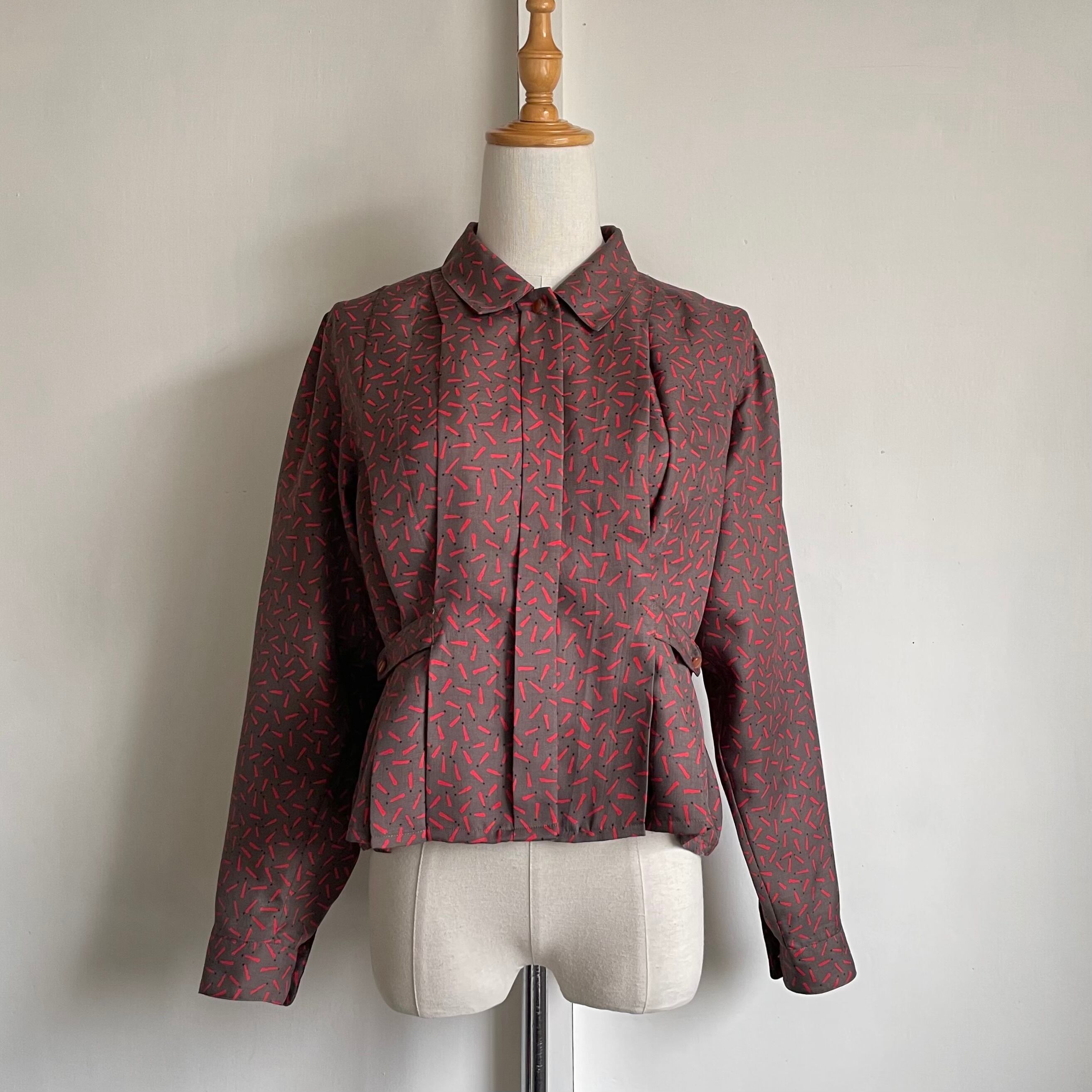 tuck design peplum blouse 〈レトロ古着 タックデザイン ペプラムブラウス ジャパンヴィンテージ japan vintage〉