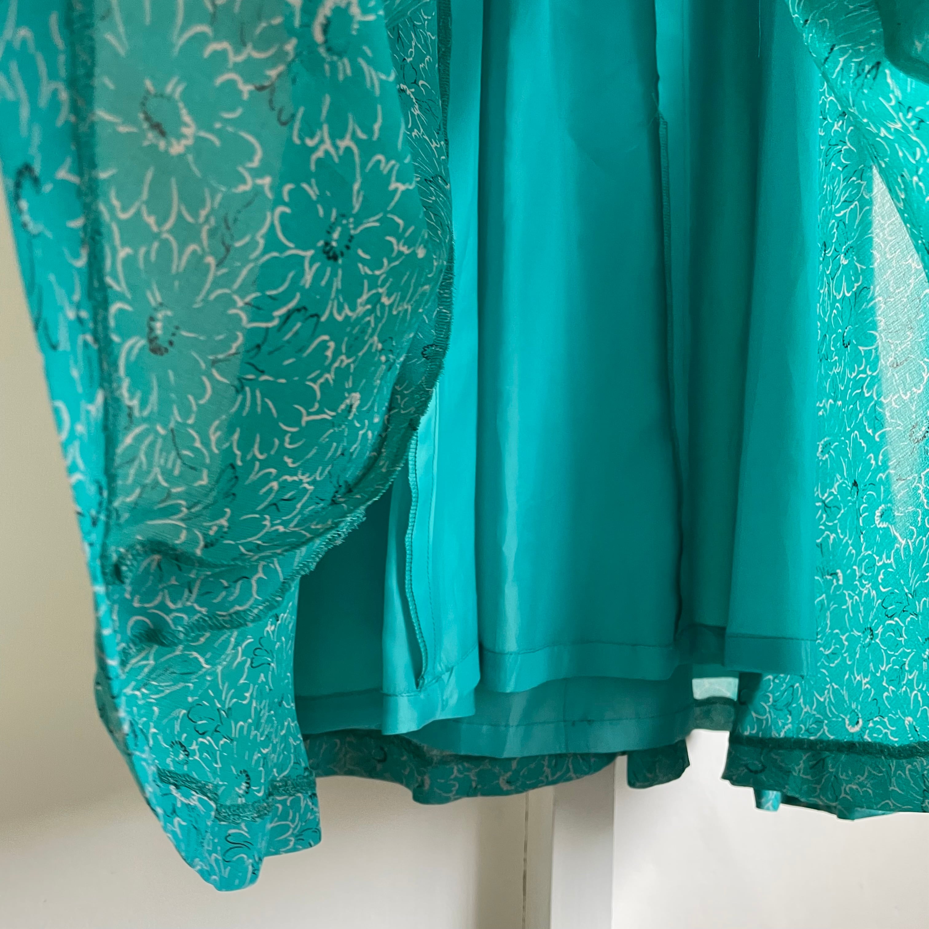 深いVネックのチェルシーカラーにパフスリーブ、ふんわり広がるフレアがレトロで愛らしいシルエット