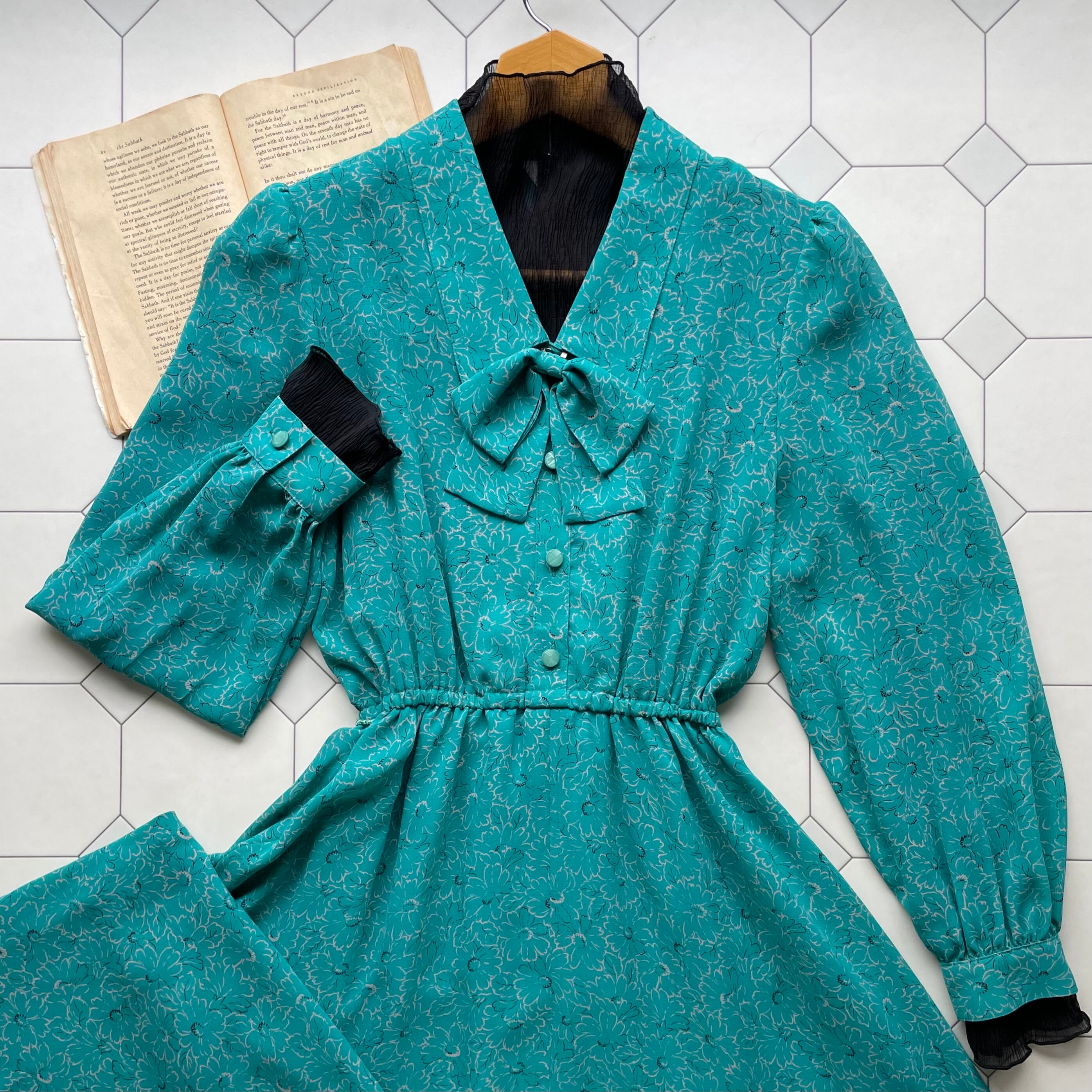 floral chelsea collar dress〈レトロ古着 花柄 チェルシーカラー ワンピース ジャパンヴィンテージ japan vintage〉