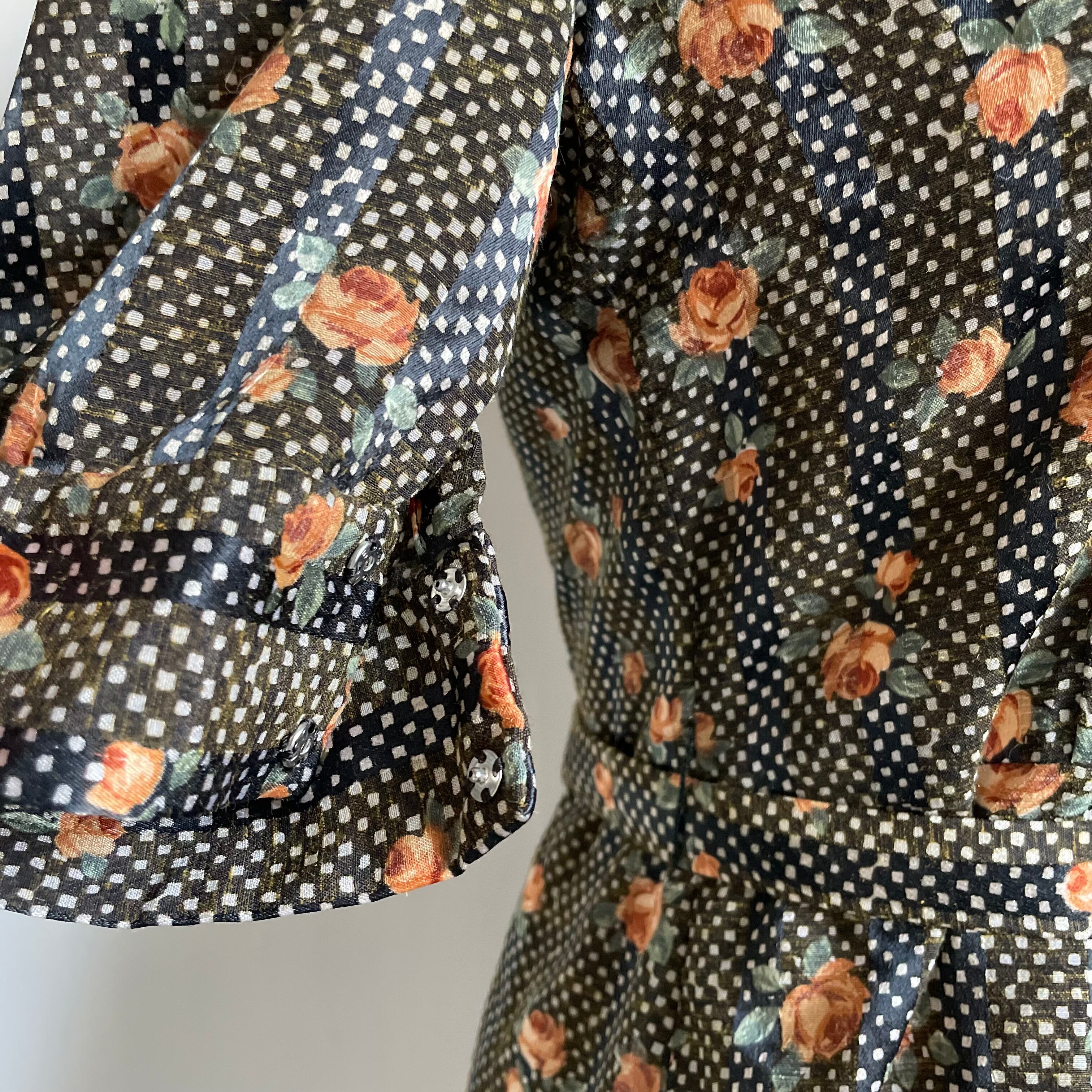 rose pattern puff sleeve open collar dress〈レトロ古着 薔薇柄 パフスリーブ 開襟 ワンピース 50年代 60年代 ジャパンヴィンテージ japan vintage〉