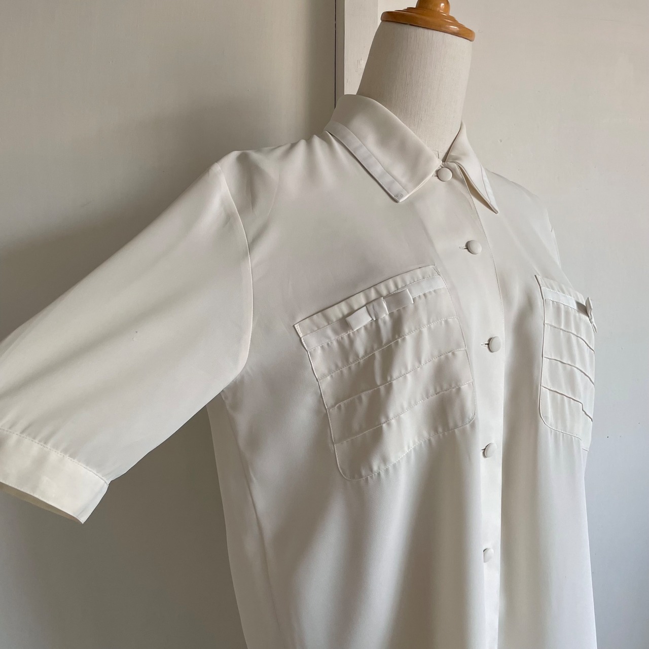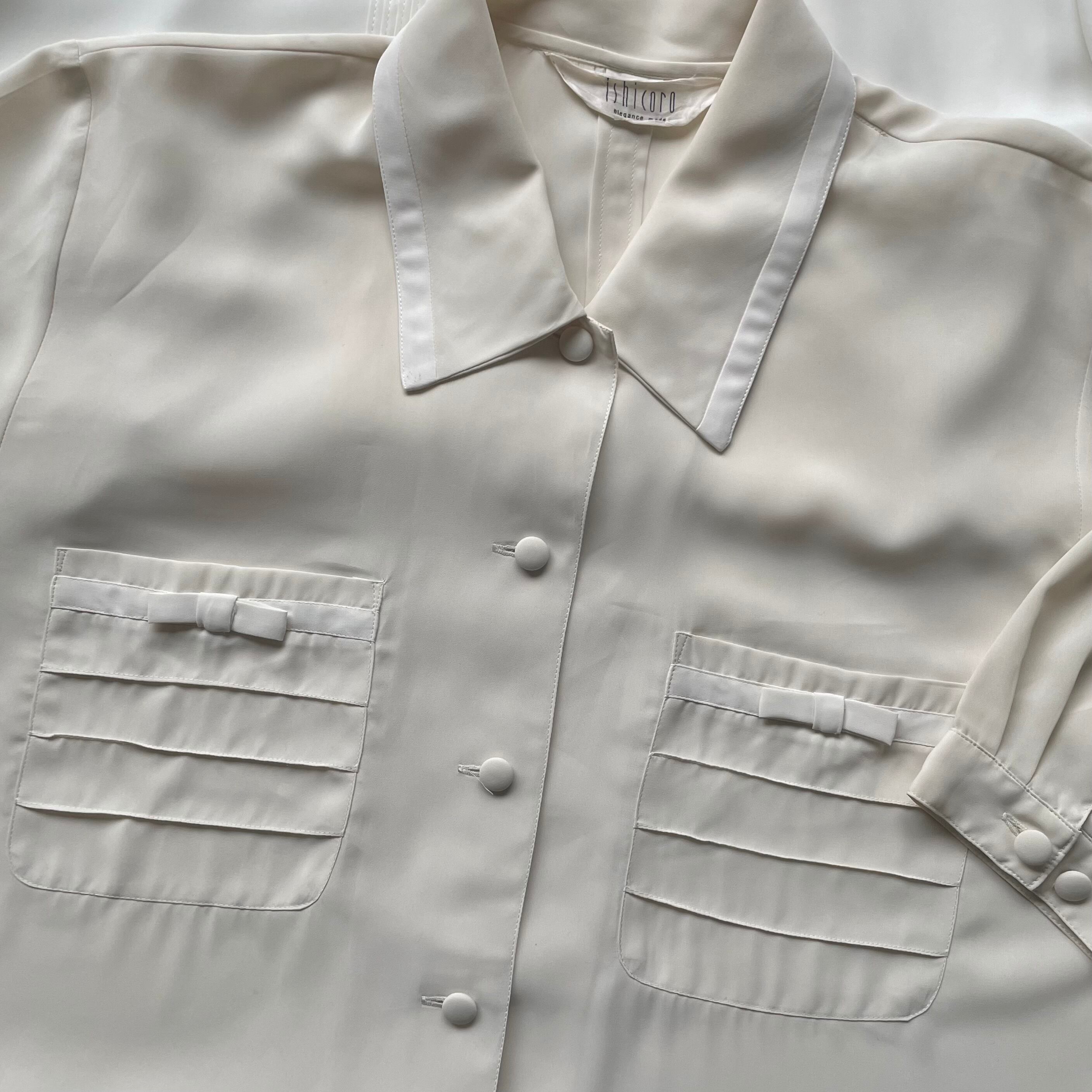 ribbon pocket bicolor blouse 〈レトロ古着 リボン ポケット バイカラー ブラウス 日本製 ジャパンヴィンテージ japan vintage〉