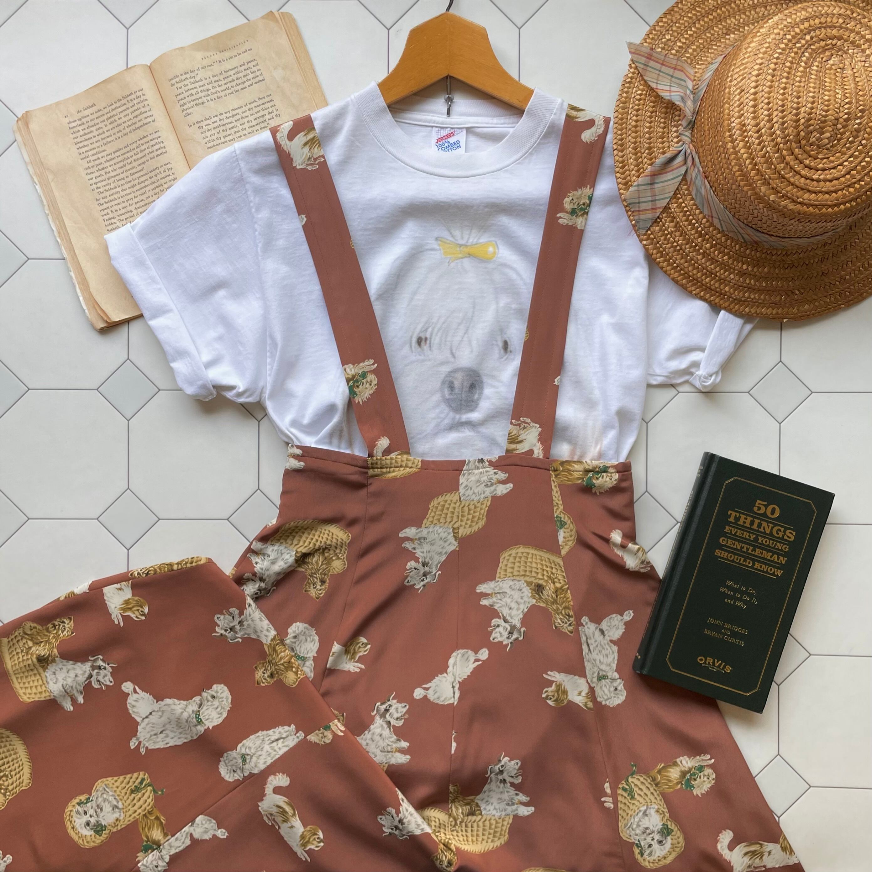 various dog pattern suspender skirt 〈レトロ古着 犬柄 サスペンダースカート ジャパンヴィンテージ〉