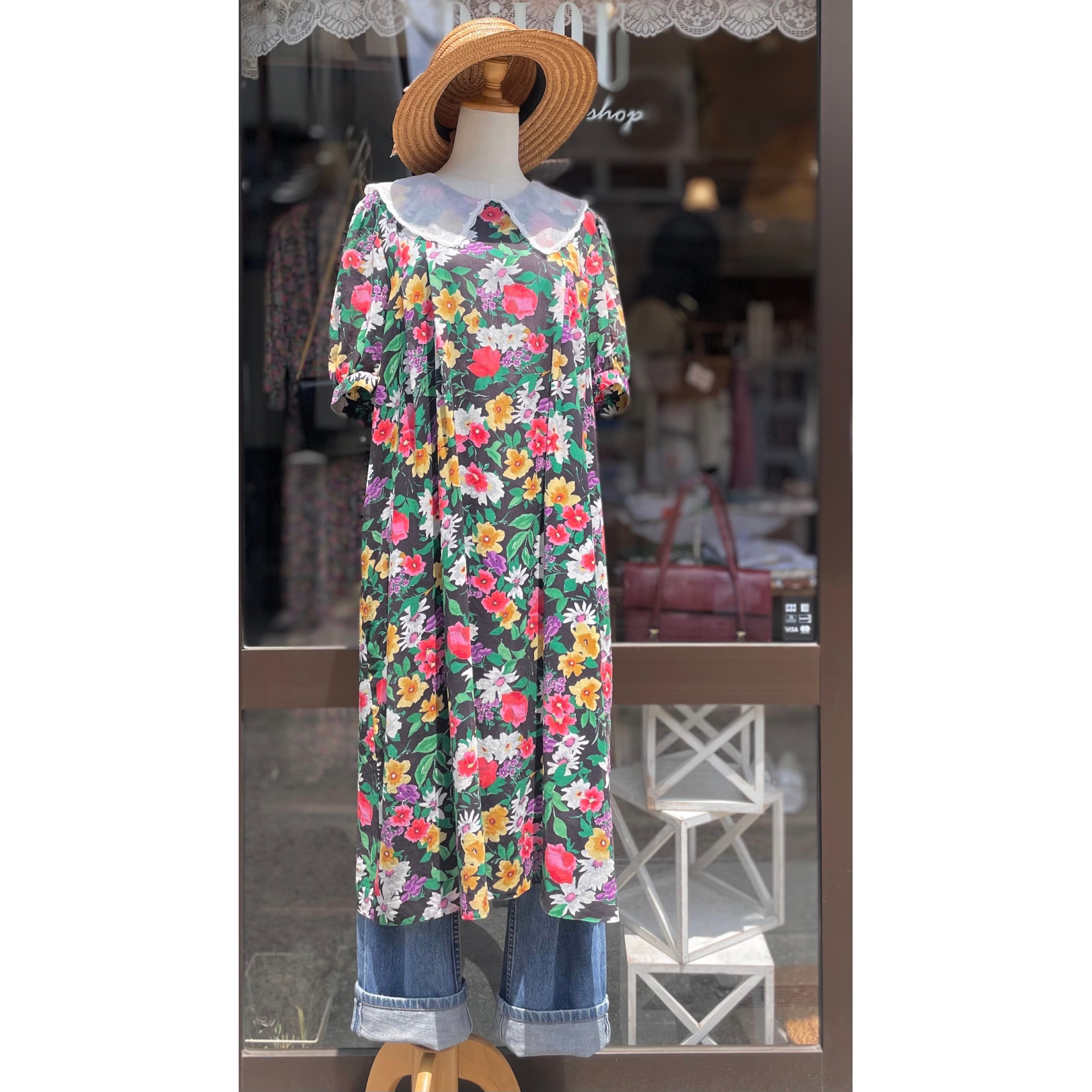 floral big collar dress〈レトロ古着 花柄 ビッグカラー ワンピース ジャパンヴィンテージ japan vintage〉