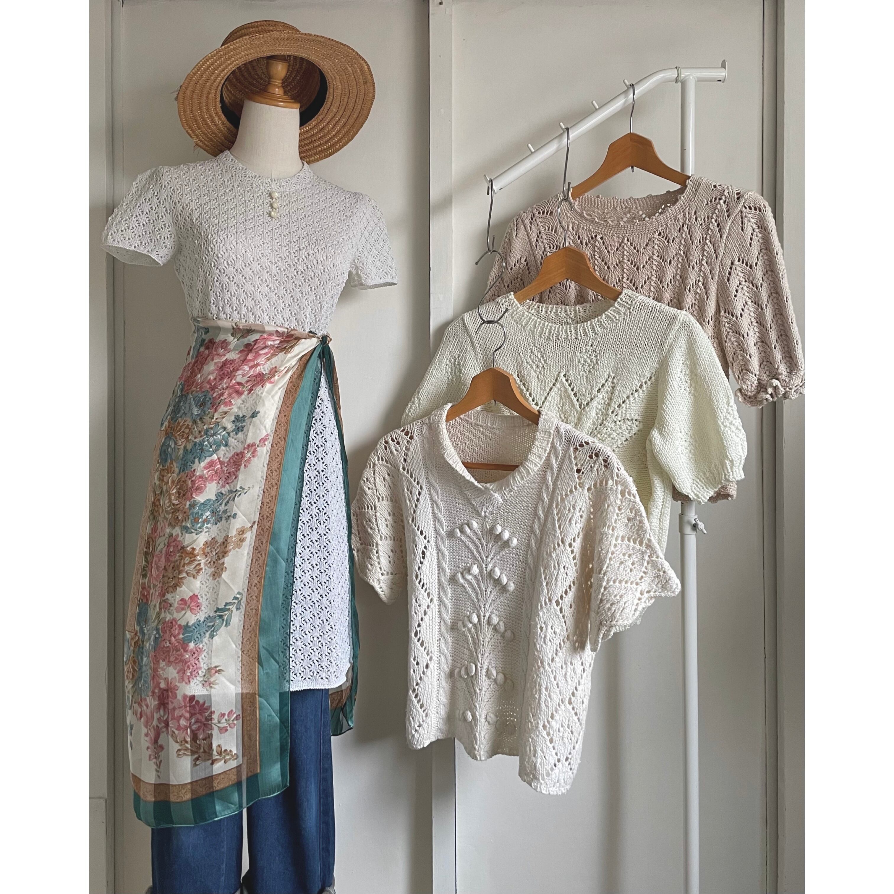 popcorn & diamond lace summer knit〈レトロ古着 ポップコーン&ダイヤ柄レース サマーニットジャパンヴィンテージ japan vintage〉