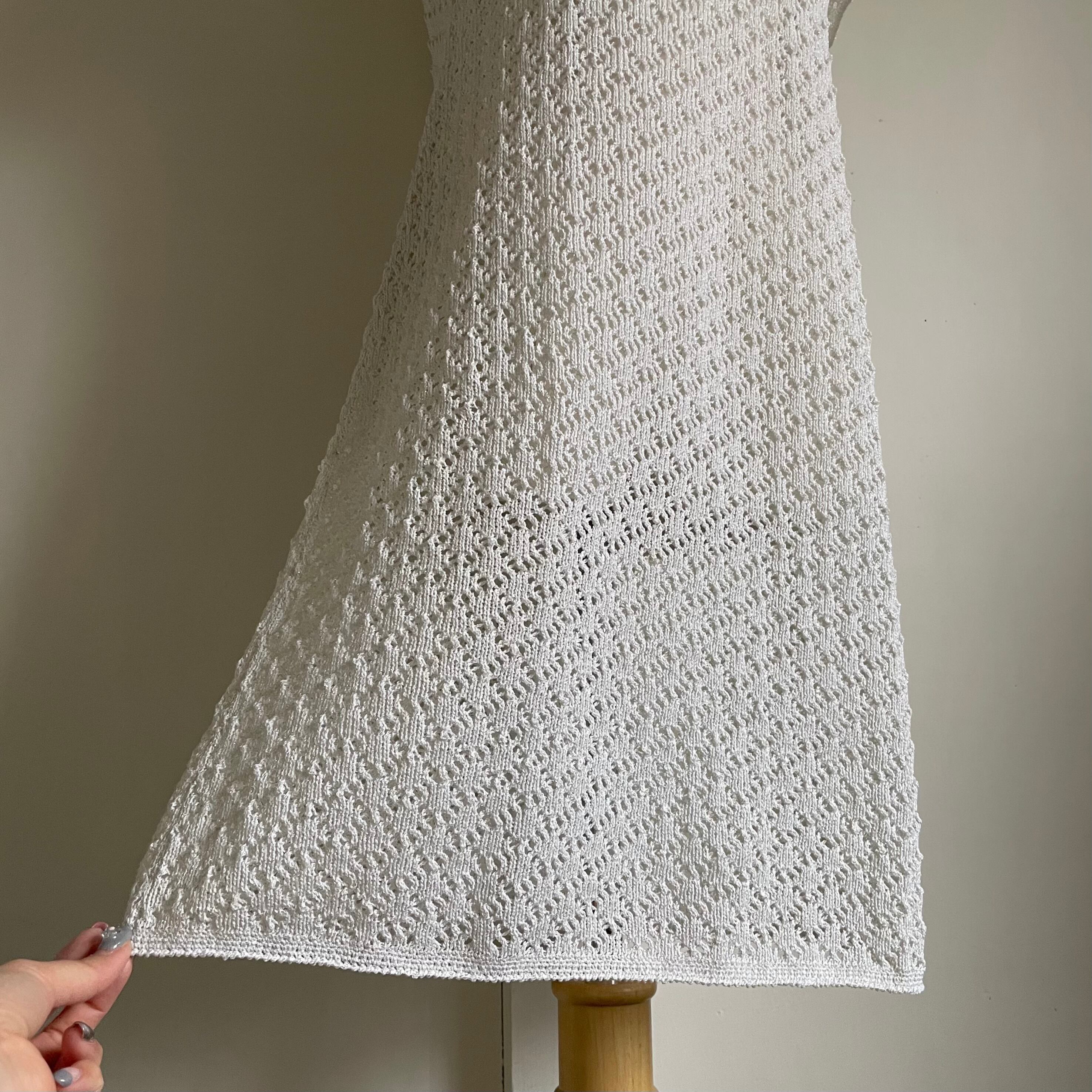 ほんのりグレーがかったダスティーホワイトのサマーニットワンピース