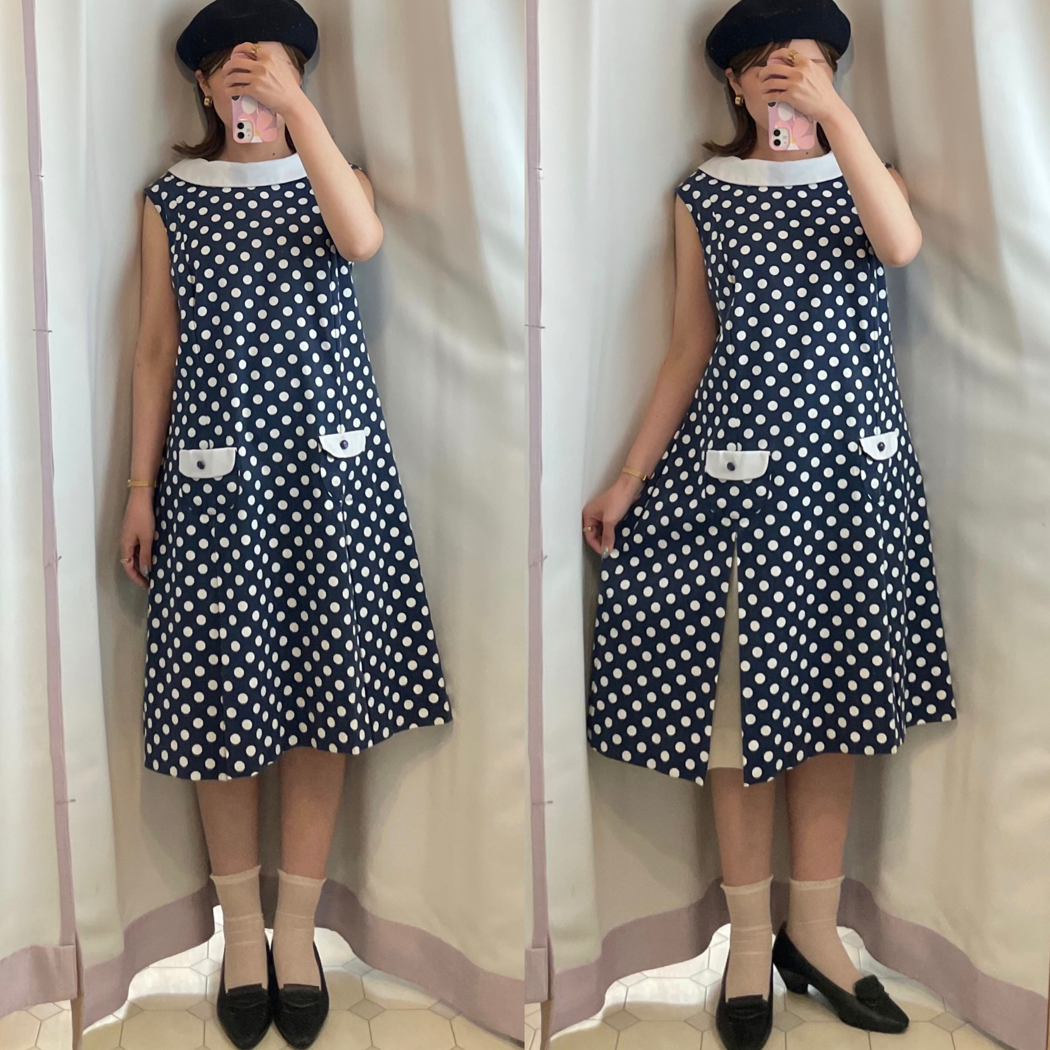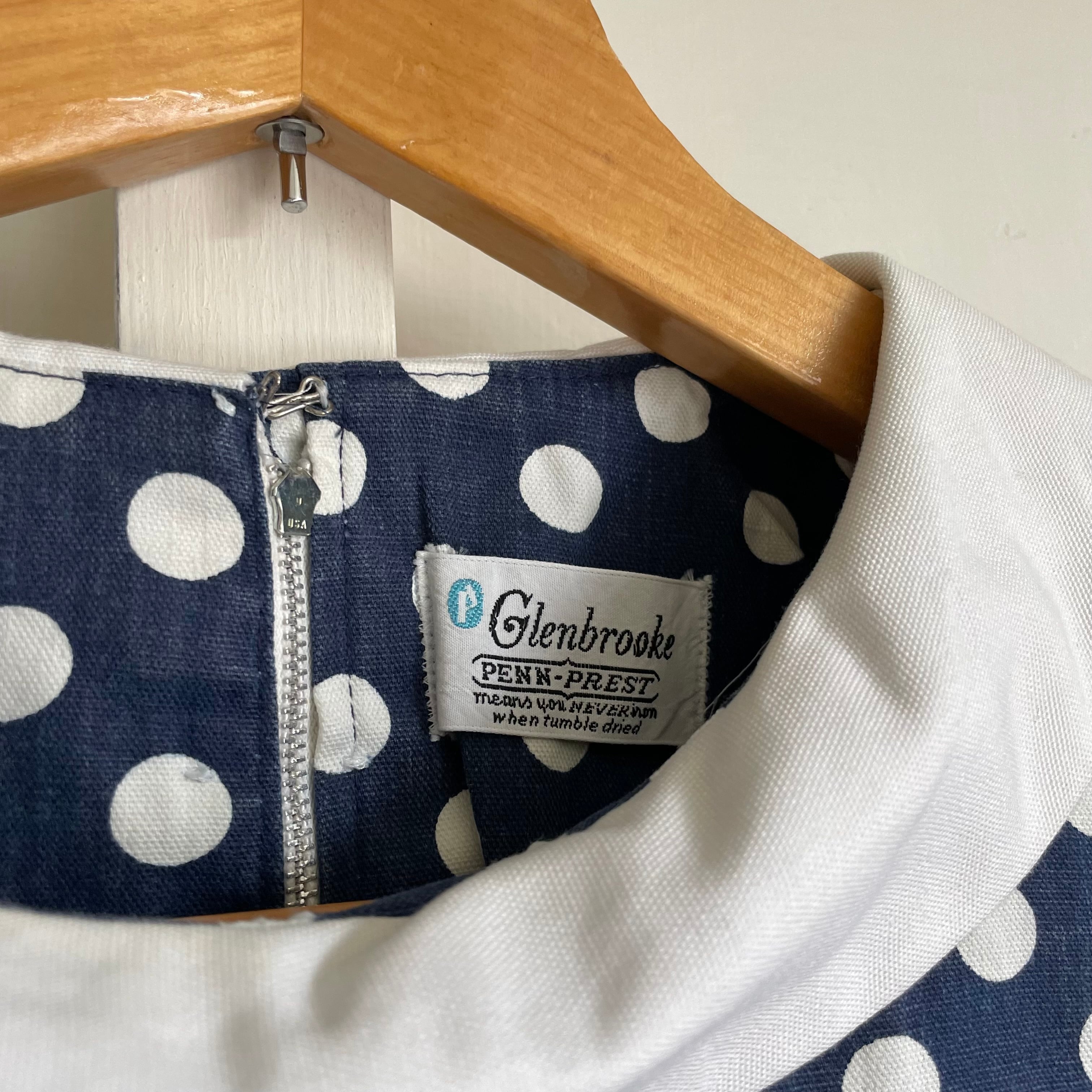 こちらはネイビーにホワイトのドットがとてもレトロなUSAヴィンテージの一着