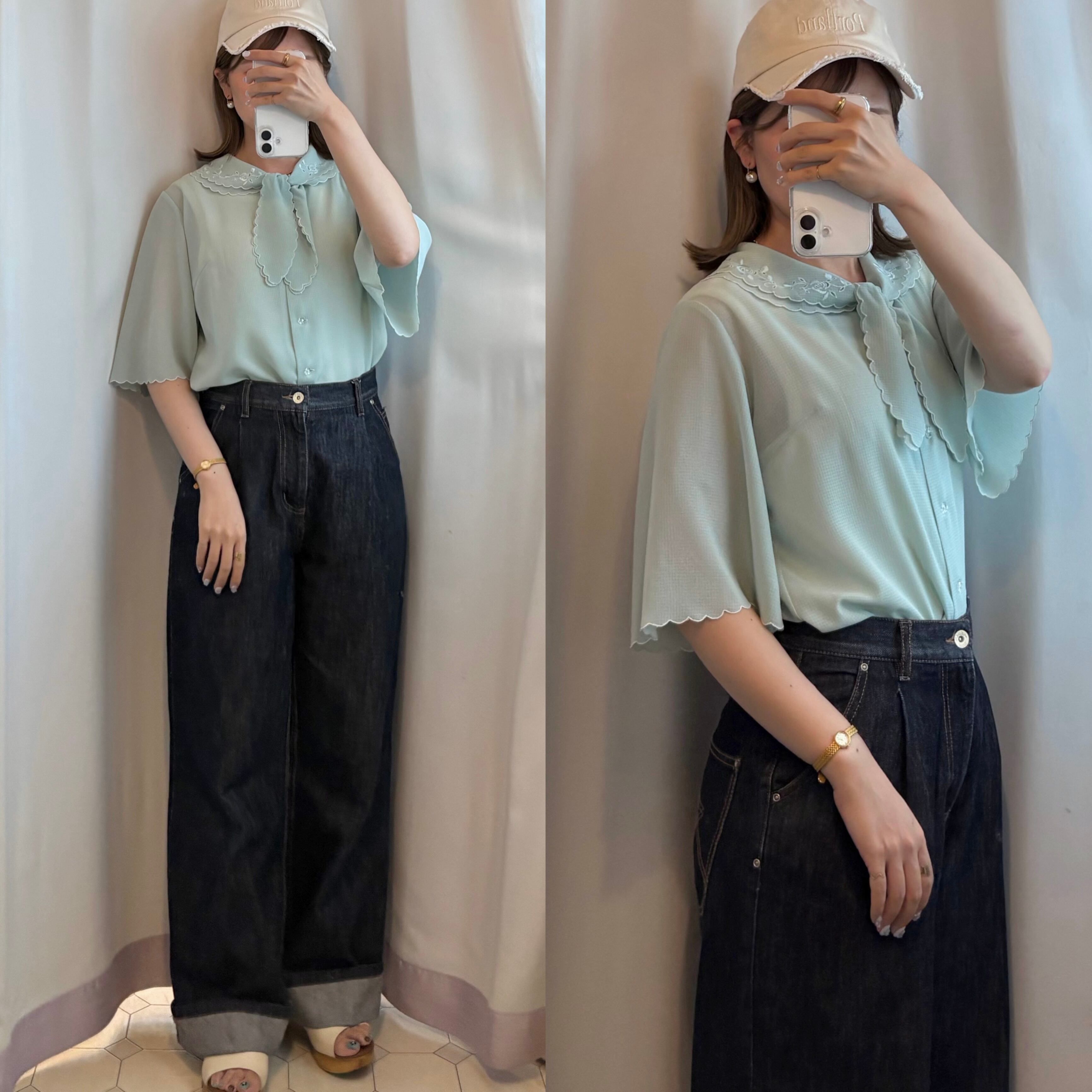 お花型のクリアボタンや軽やかなシアー素材など、見た目も着心地も涼やかです☺︎