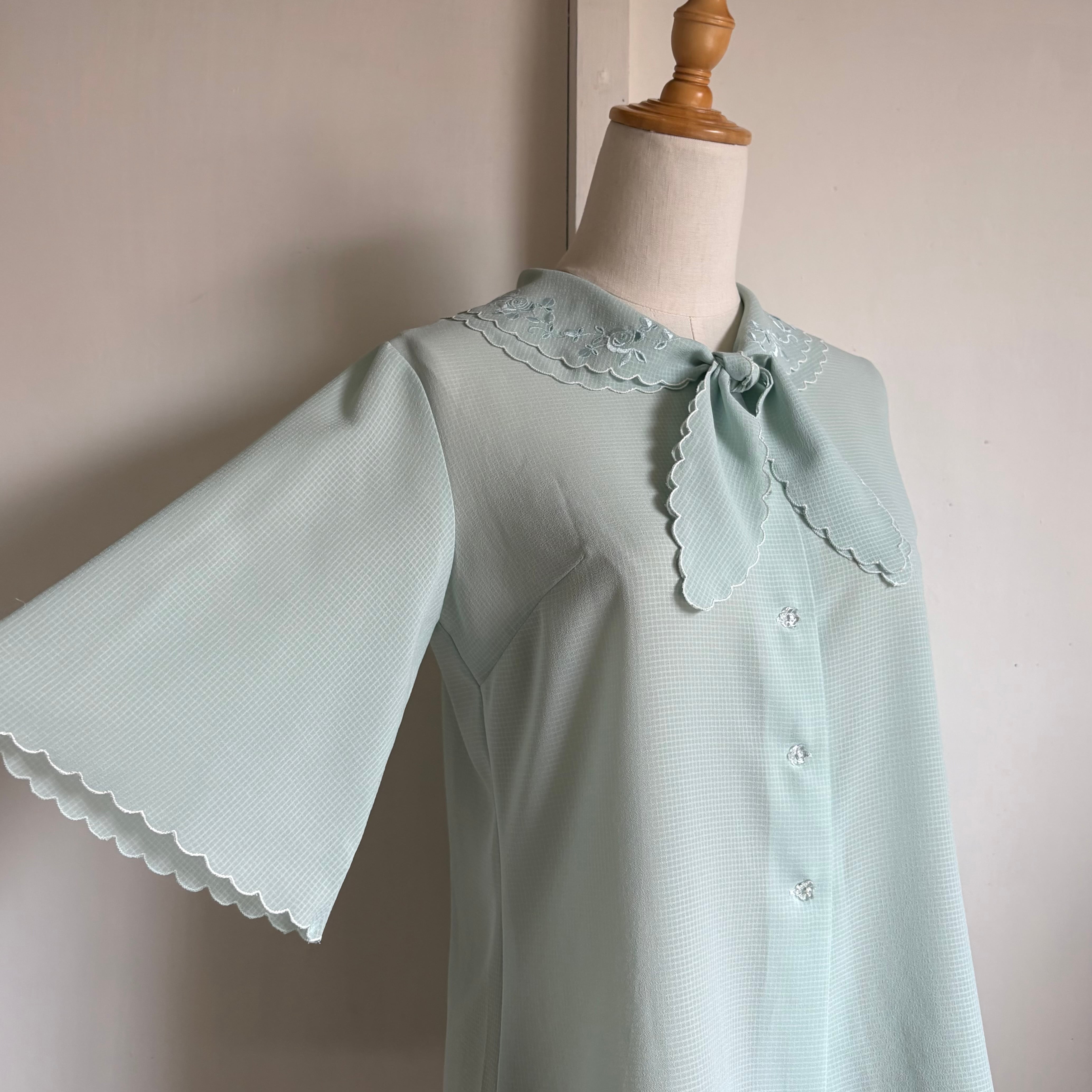 Rose Embroidered Scarf Collar Blouse〈レトロ古着 薔薇刺繍 スカーフカラー ブラウス 日本製 ジャパンヴィンテージ Japan Vintage〉
