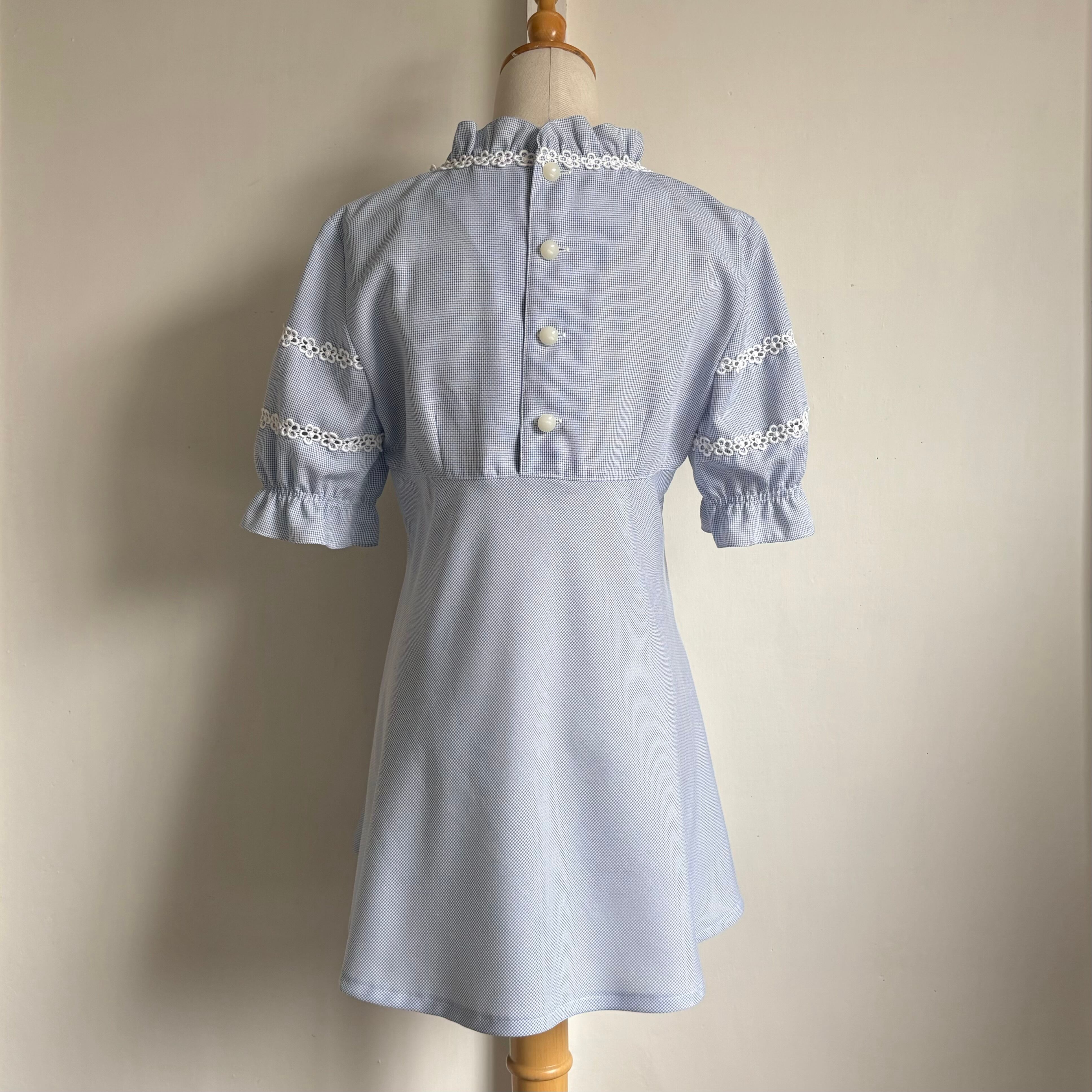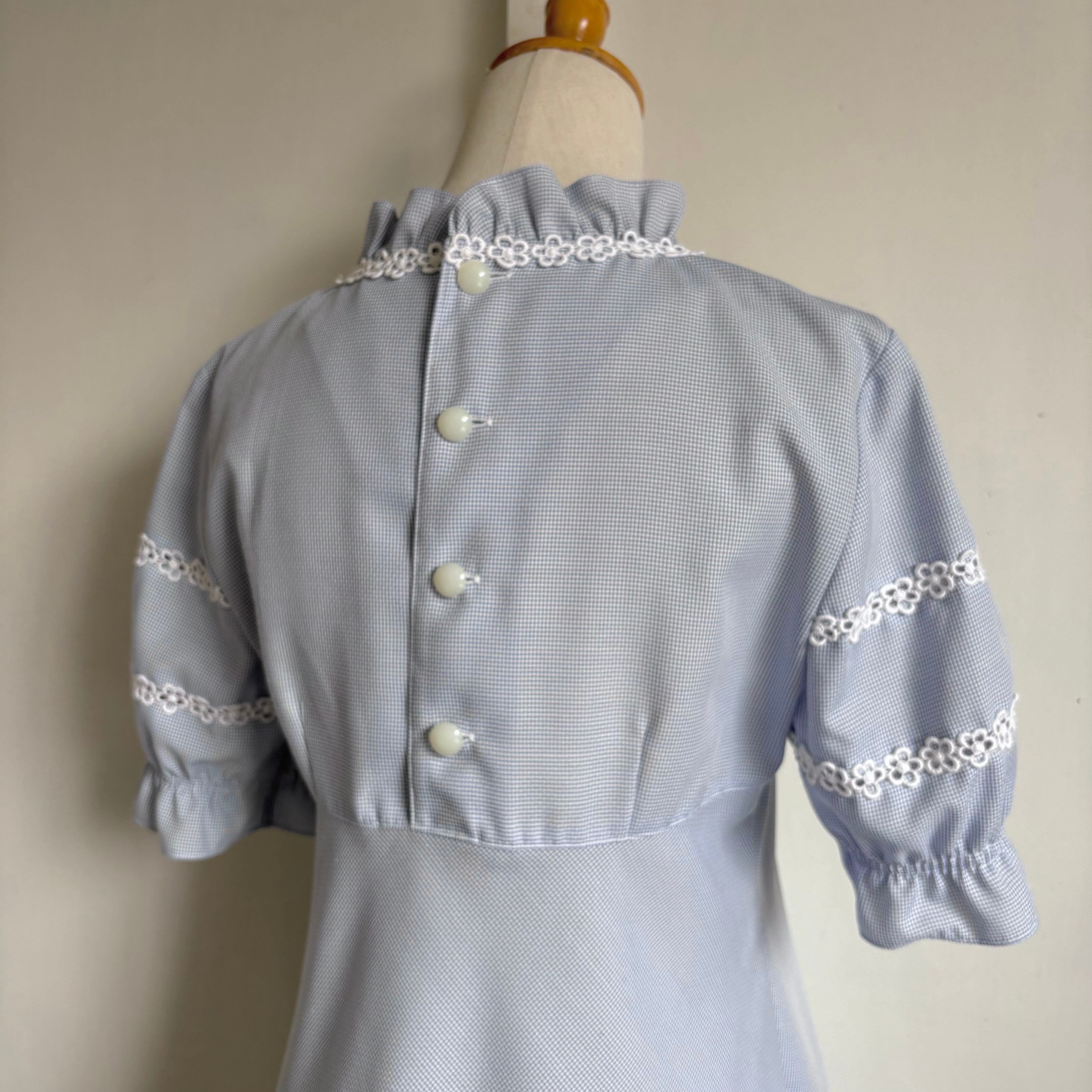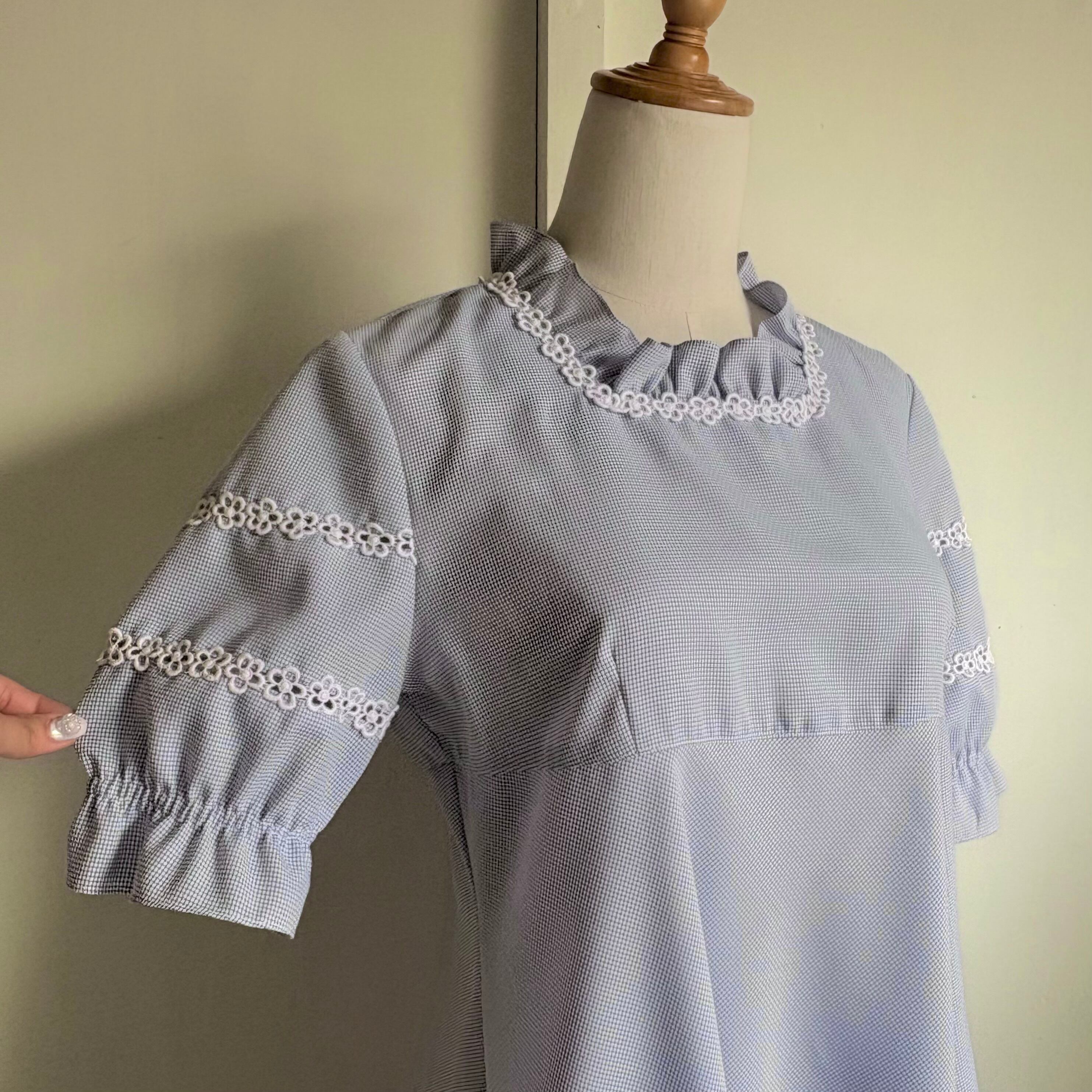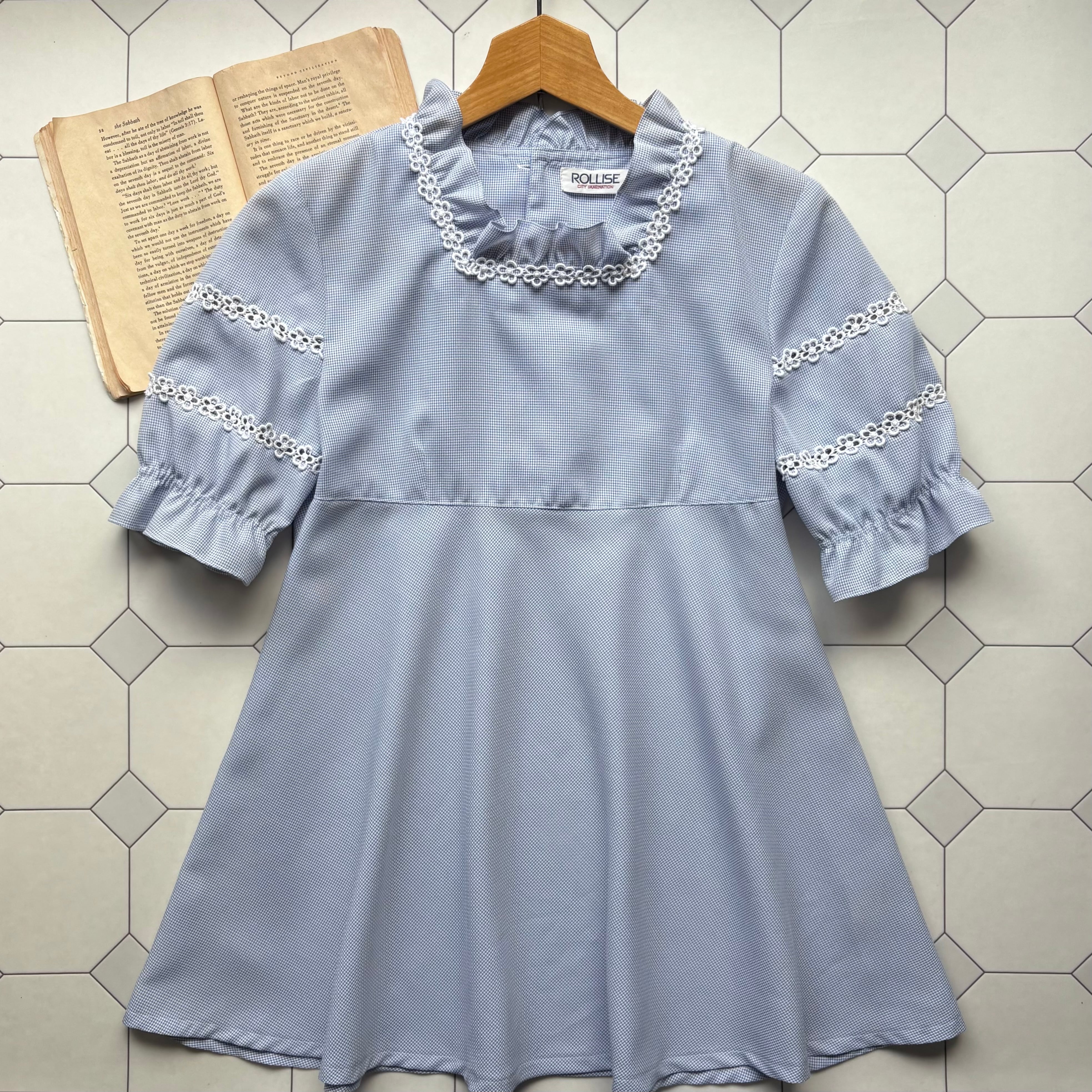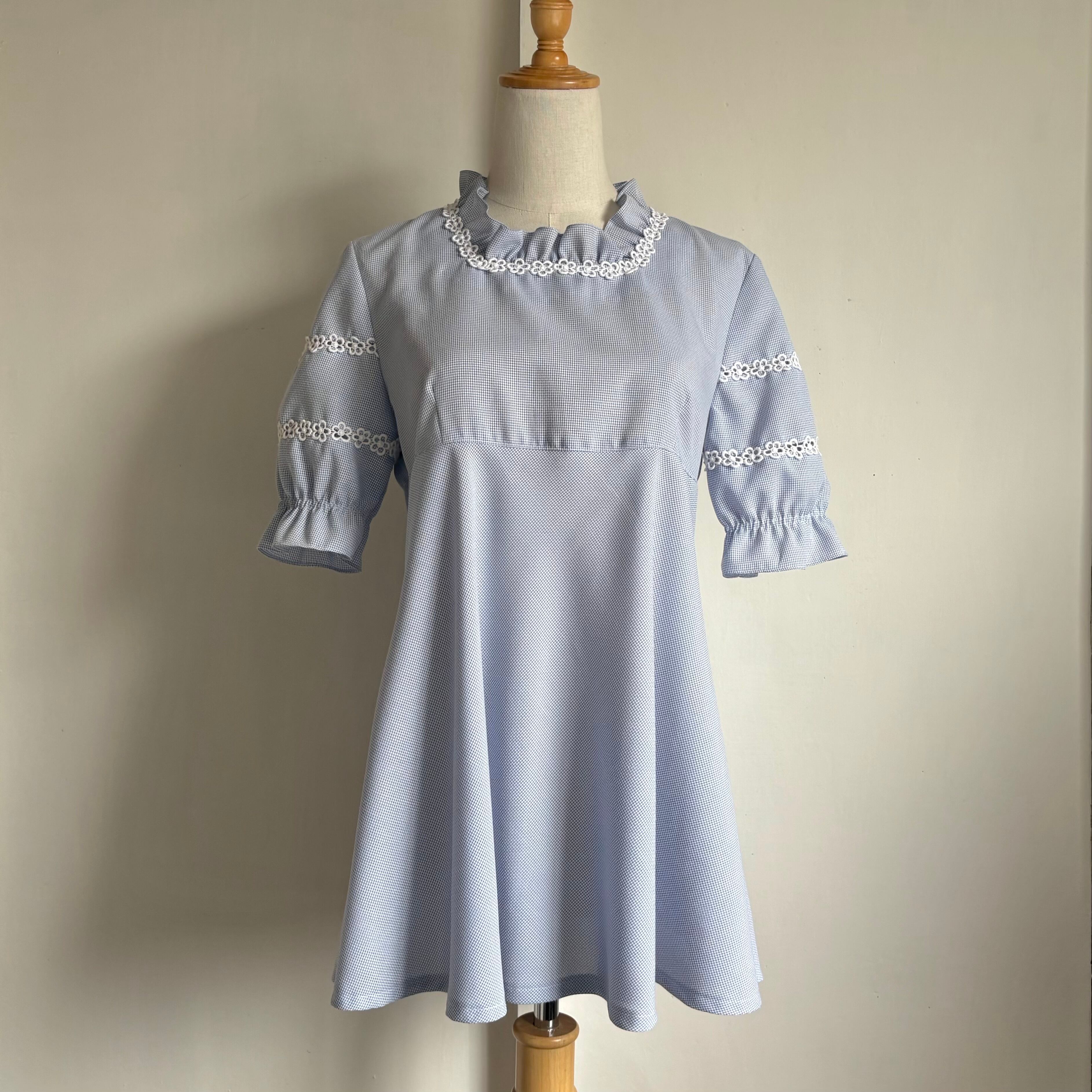 襟ぐりや袖にあしらわれたフリルとお花のレースが愛らしさたっぷりな一着