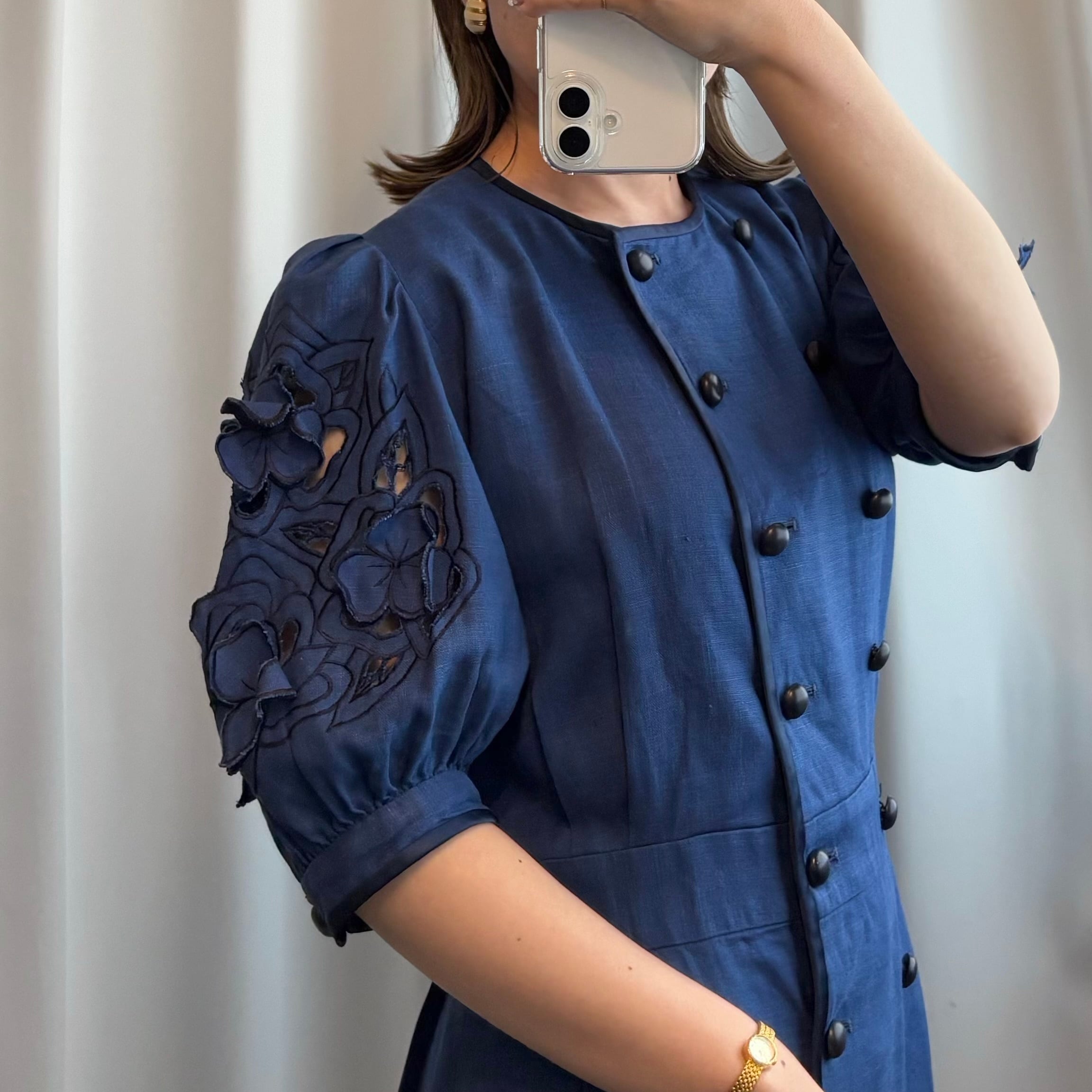 Flower Embroidered Sleeve Tight Dress〈レトロ古着 フラワー刺繍袖 タイトワンピース ジャパンヴィンテージ Japan Vintage〉
