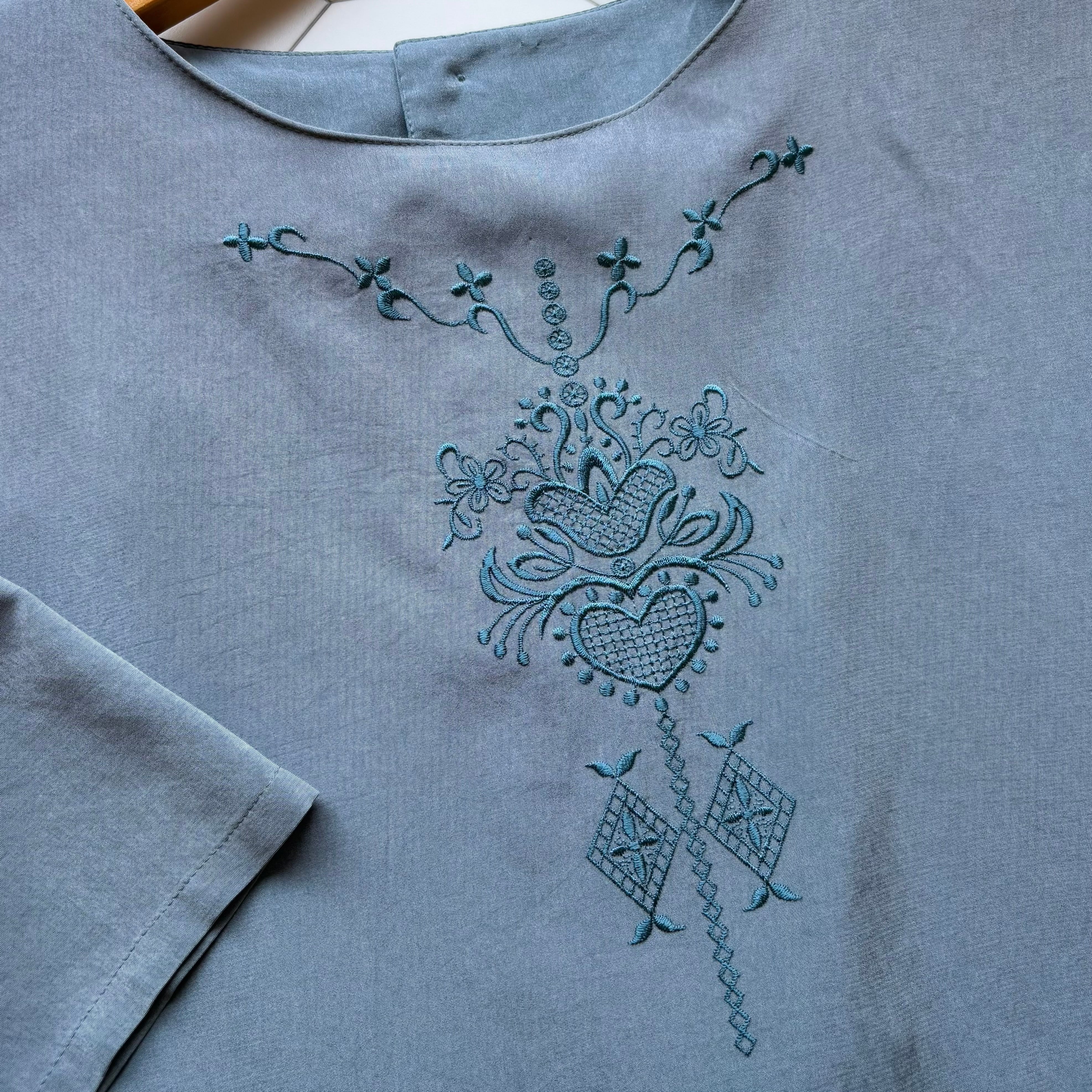 Classical Embroidered Crew Neck Blouse 〈レトロ古着 クラシカル刺繍 クルーネック ブラウス 日本製 ジャパンヴィンテージ Japan Vintage〉