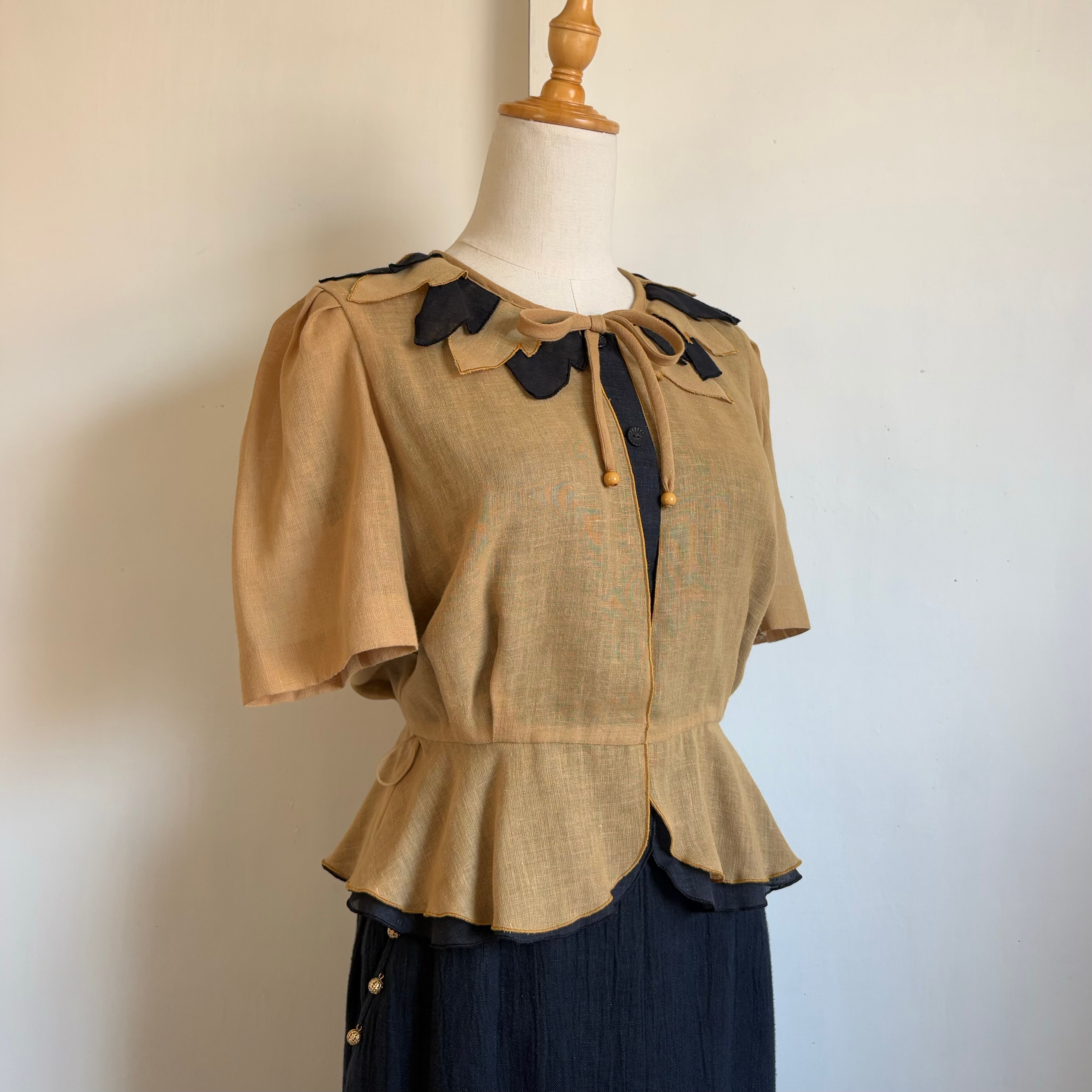 Leaf Motif Peplum Blouse 〈レトロ古着 リーフモチーフ ペプラムブラウス ジャパンヴィンテージ Japan Vintage〉