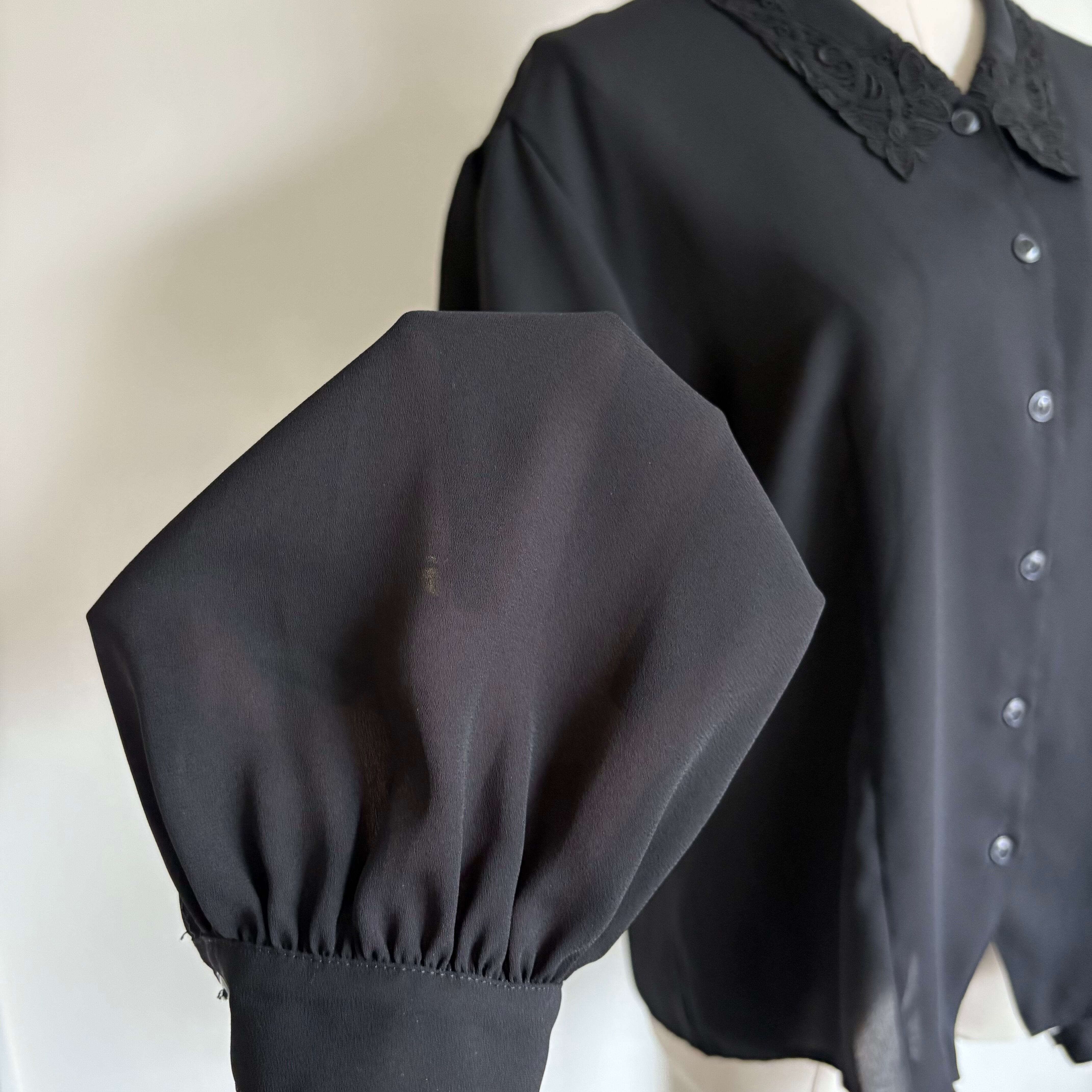 Lace Collar Sheer Black Blouse 〈レトロ古着 レース襟 シアーブラック ブラウス ジャパンヴィンテージ 日本製 Japan Vintage〉