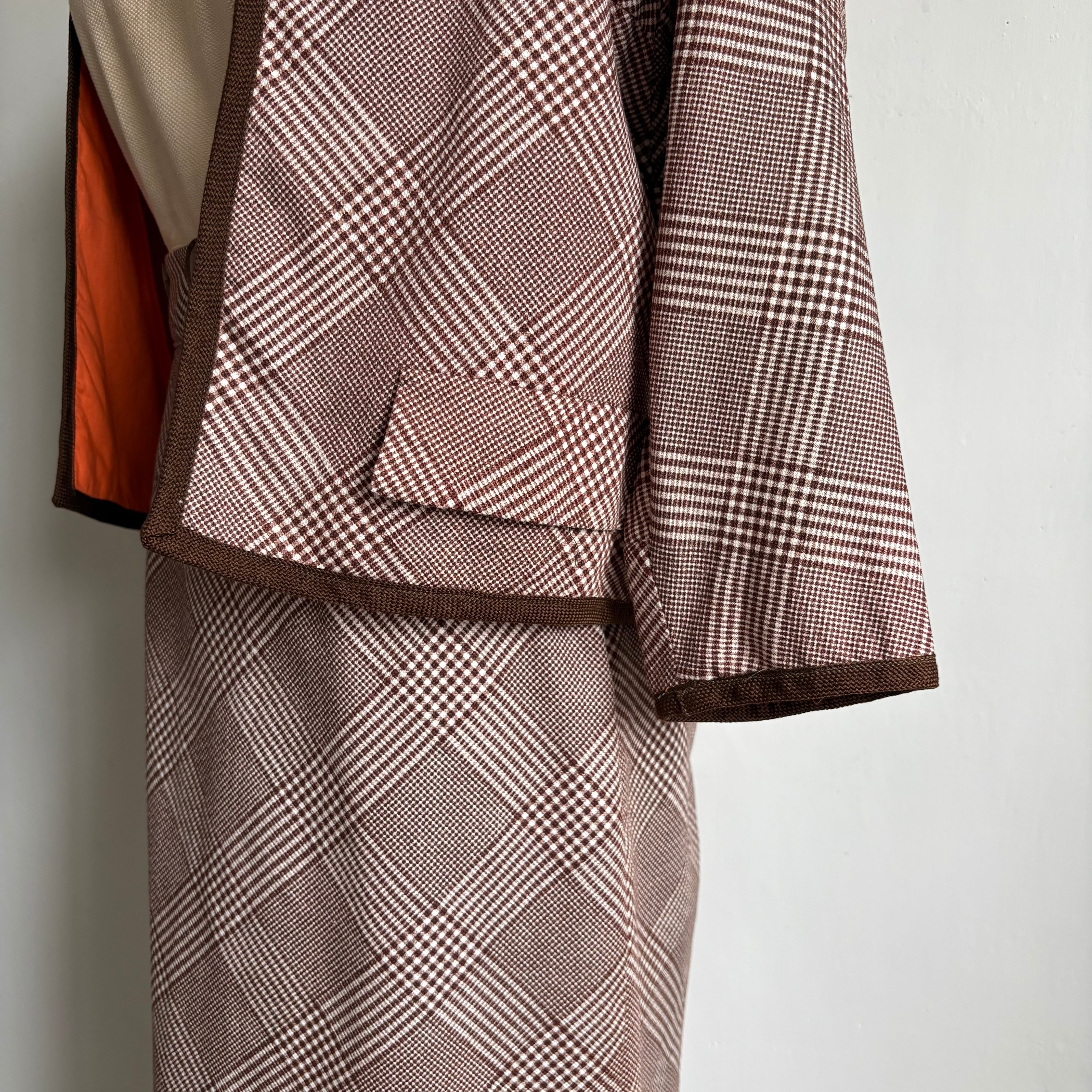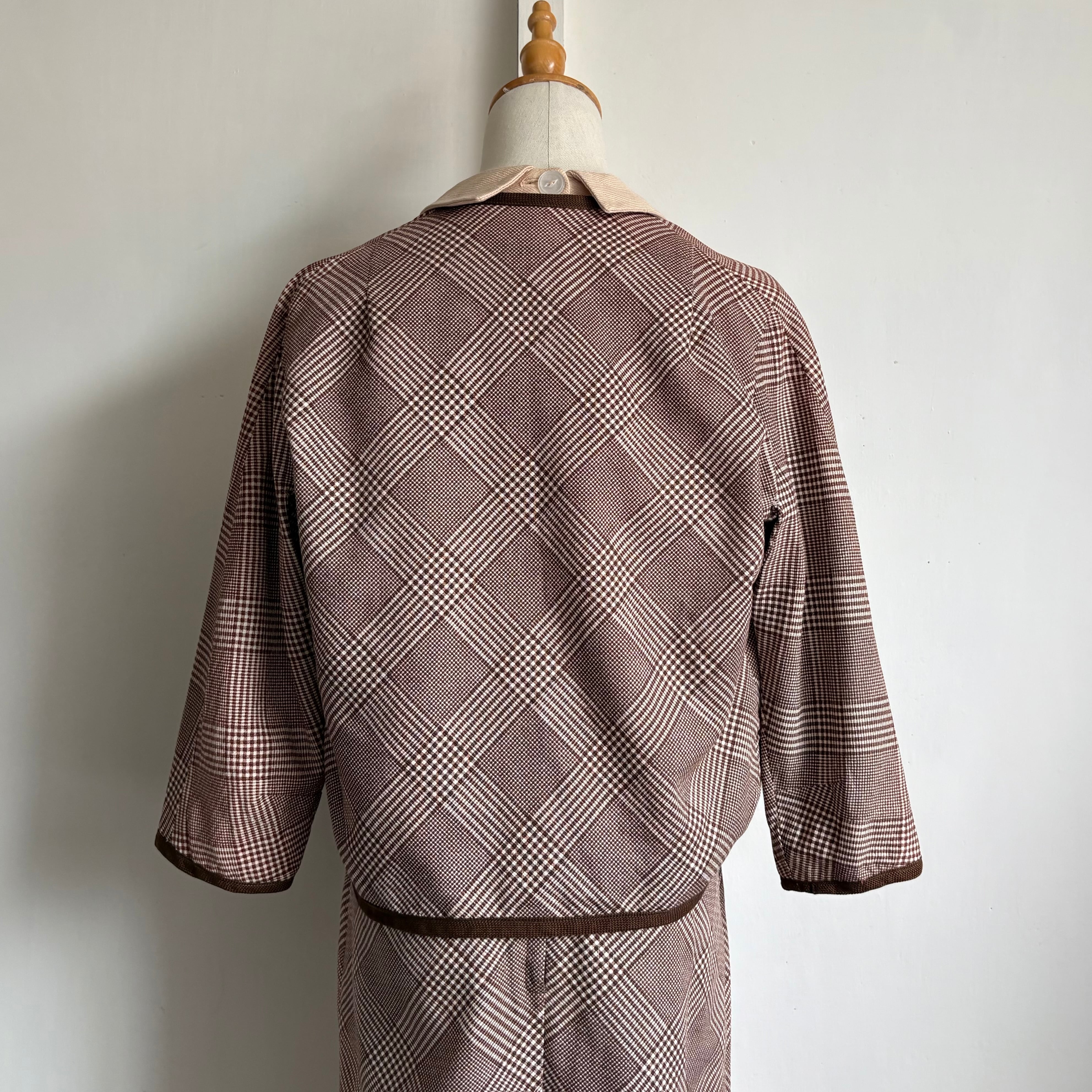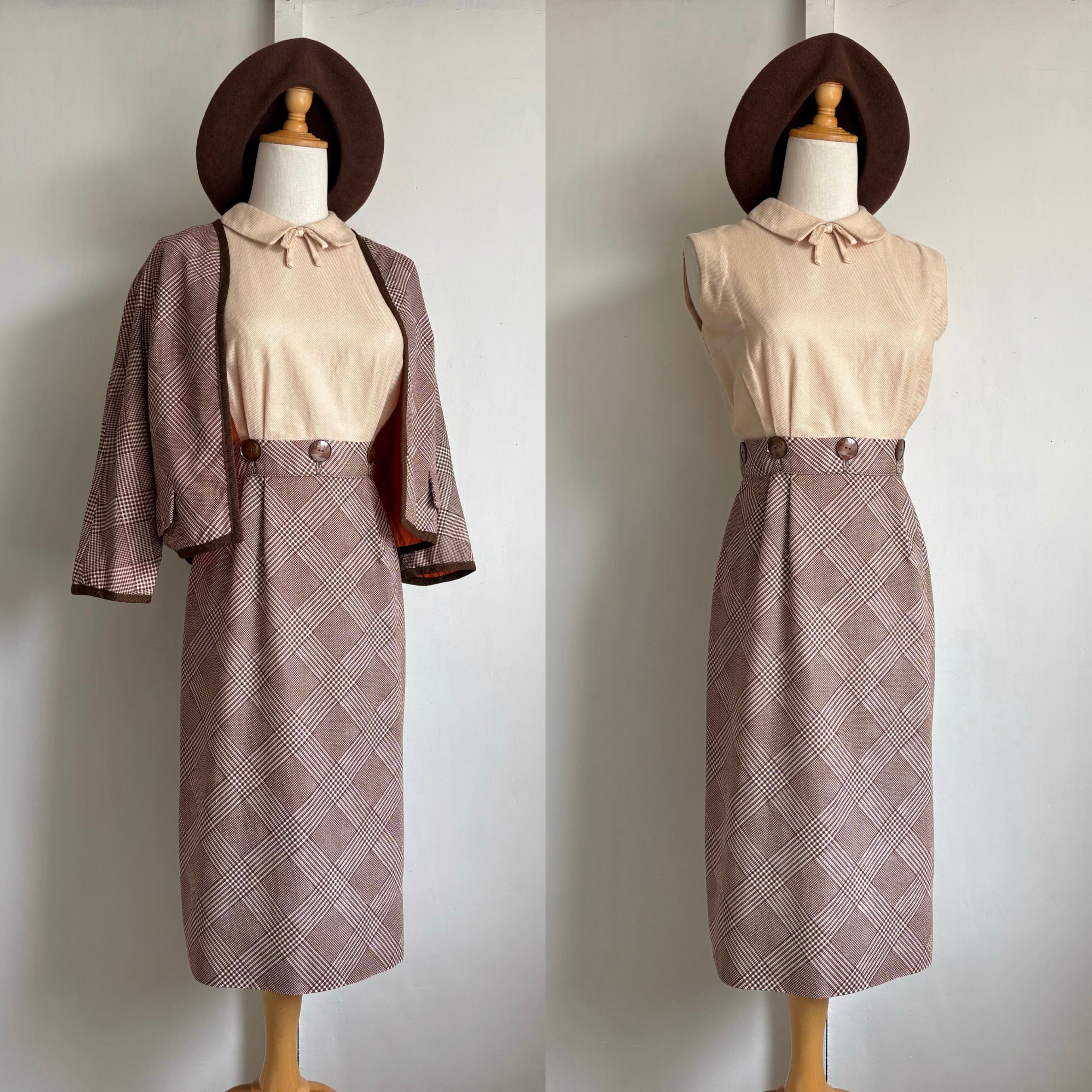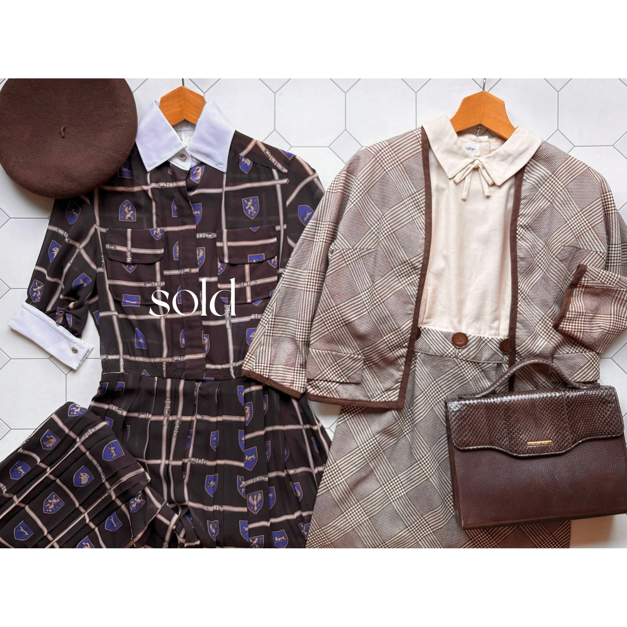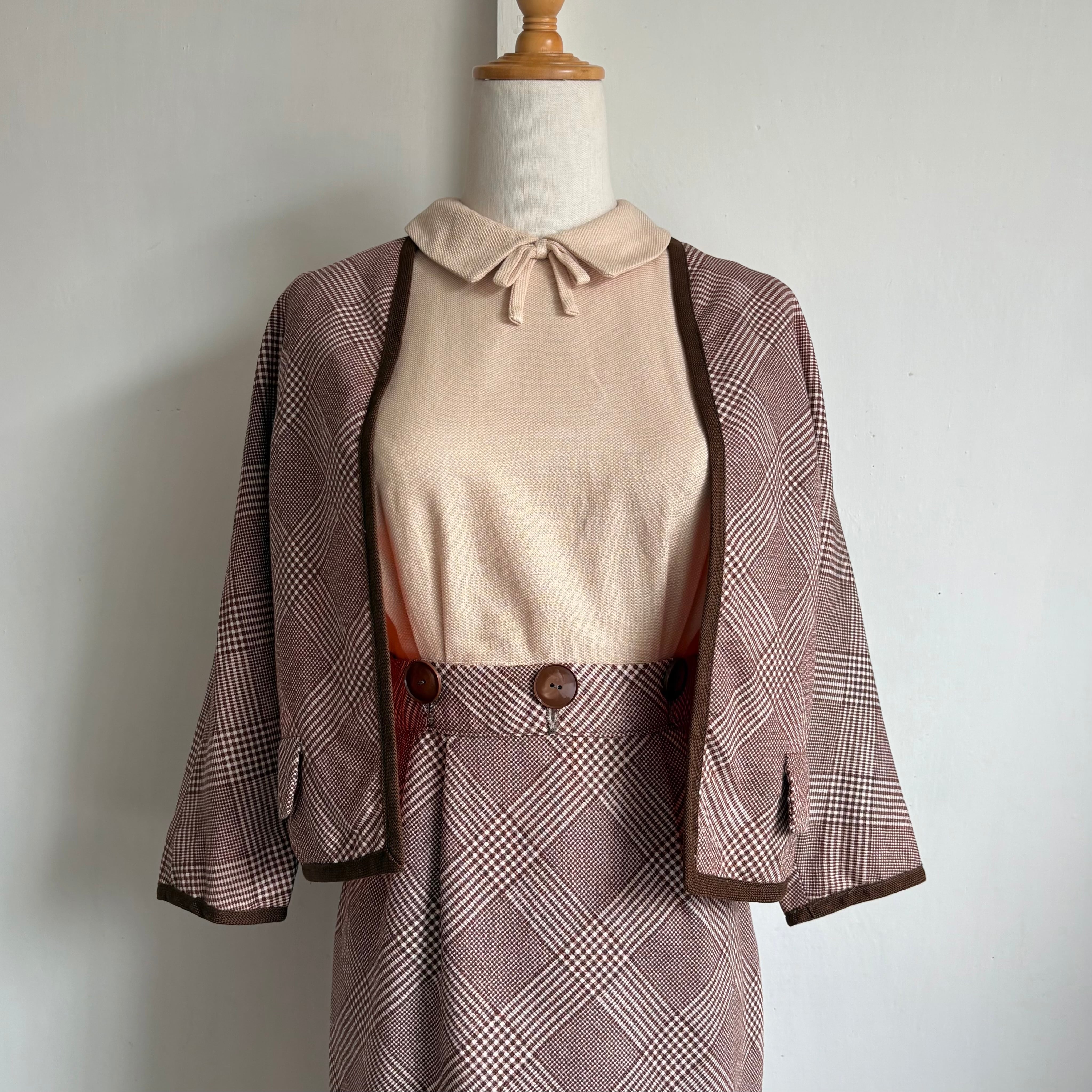 レトロクラシカルなムード漂うブラウンチェックのワンピース&ジャケット