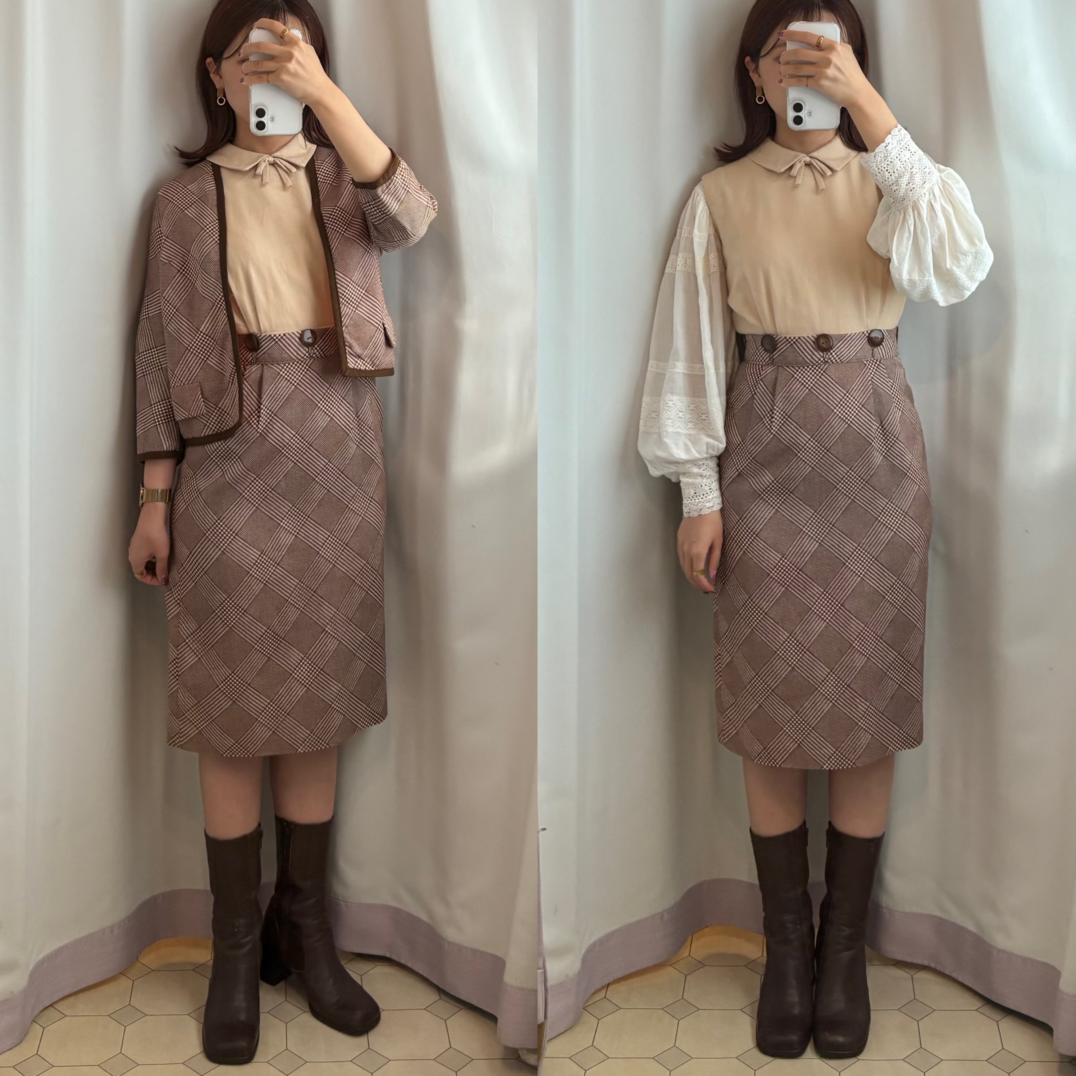 Multiway Plaid Ensemble〈レトロ古着 マルチウェイ チェック柄 アンサンブル セットアップ〉