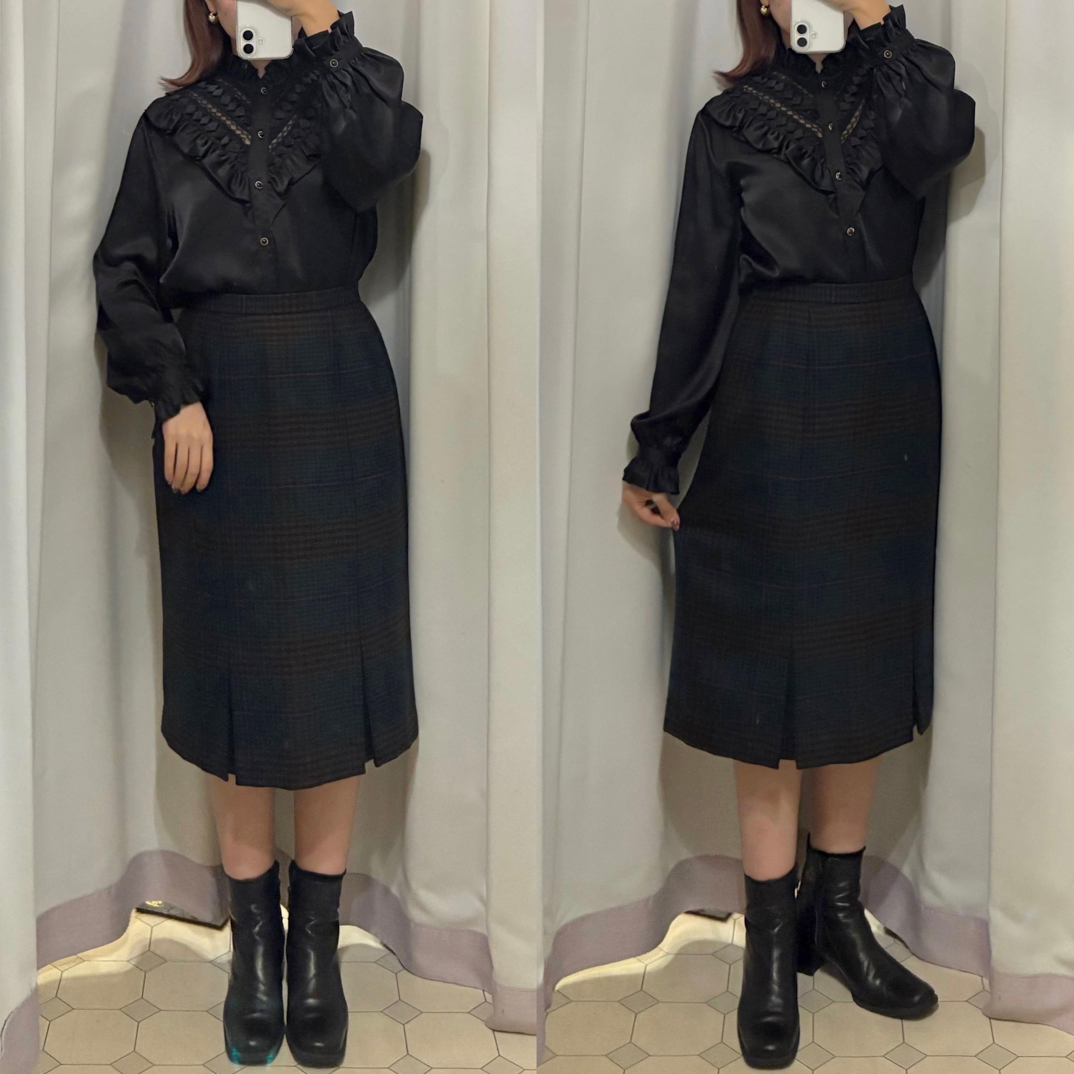 Dark Green Tartan Tight Skirt 〈レトロ古着 ダークグリーン タータンチェック柄 タイトスカート ジャパンヴィンテージ Japan Vintage〉