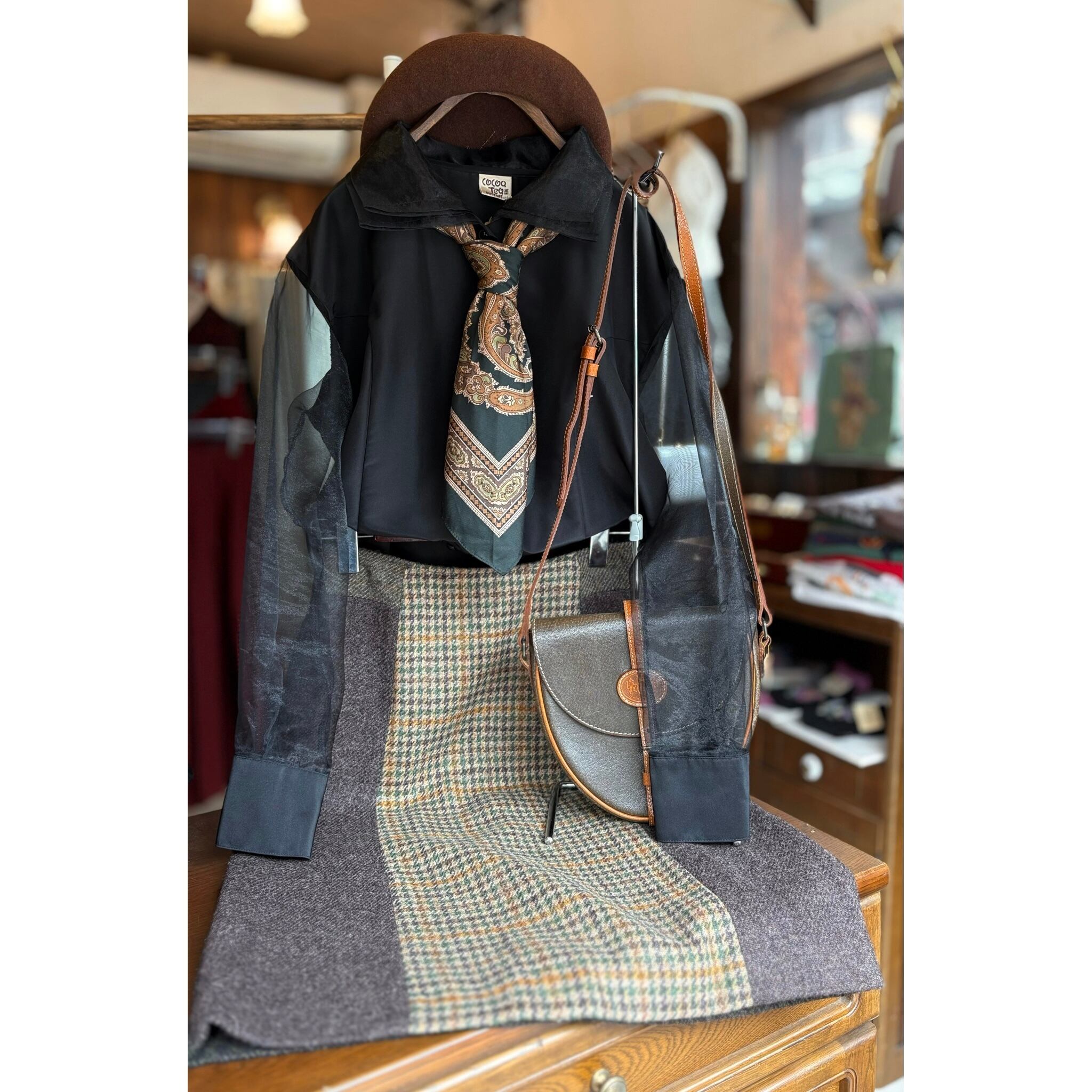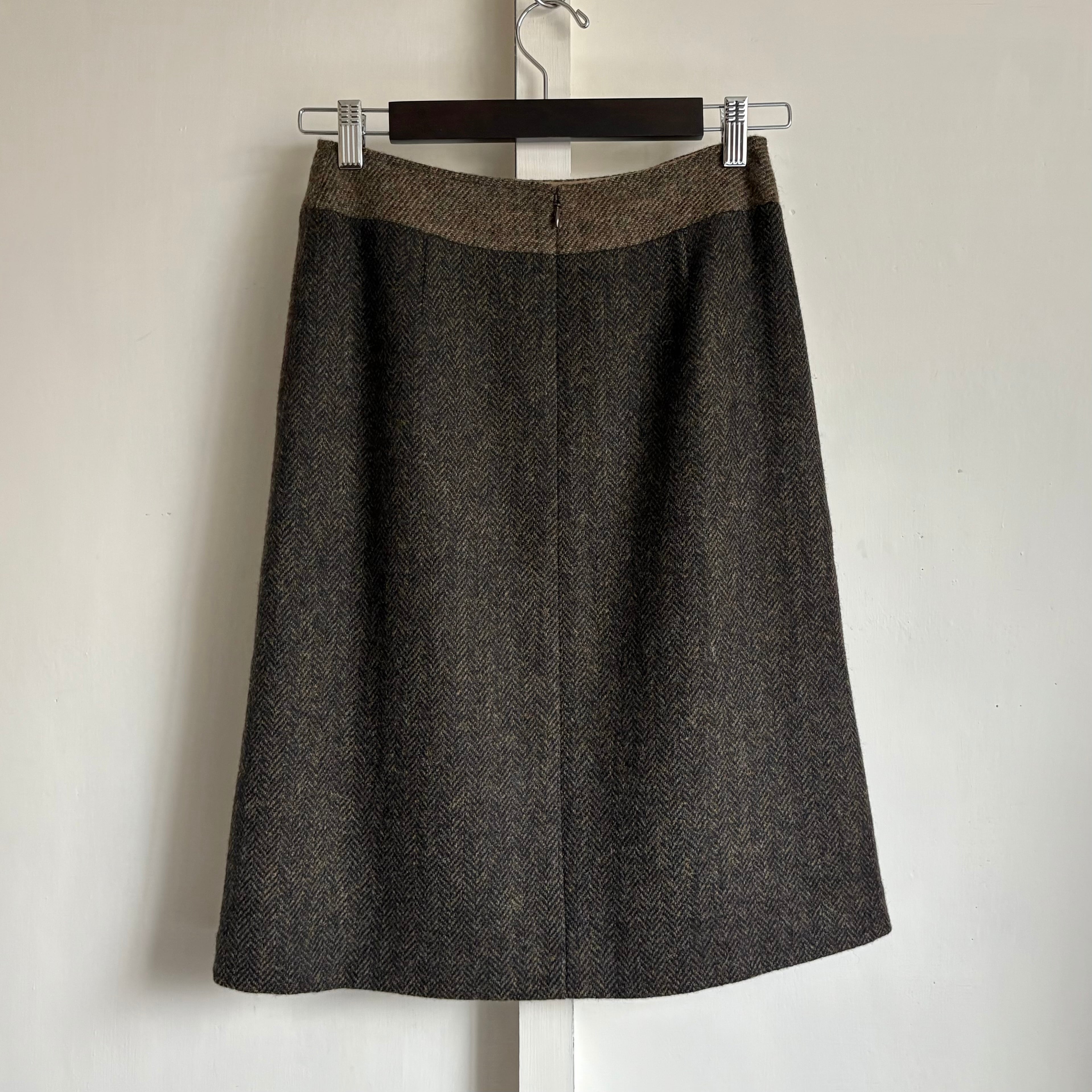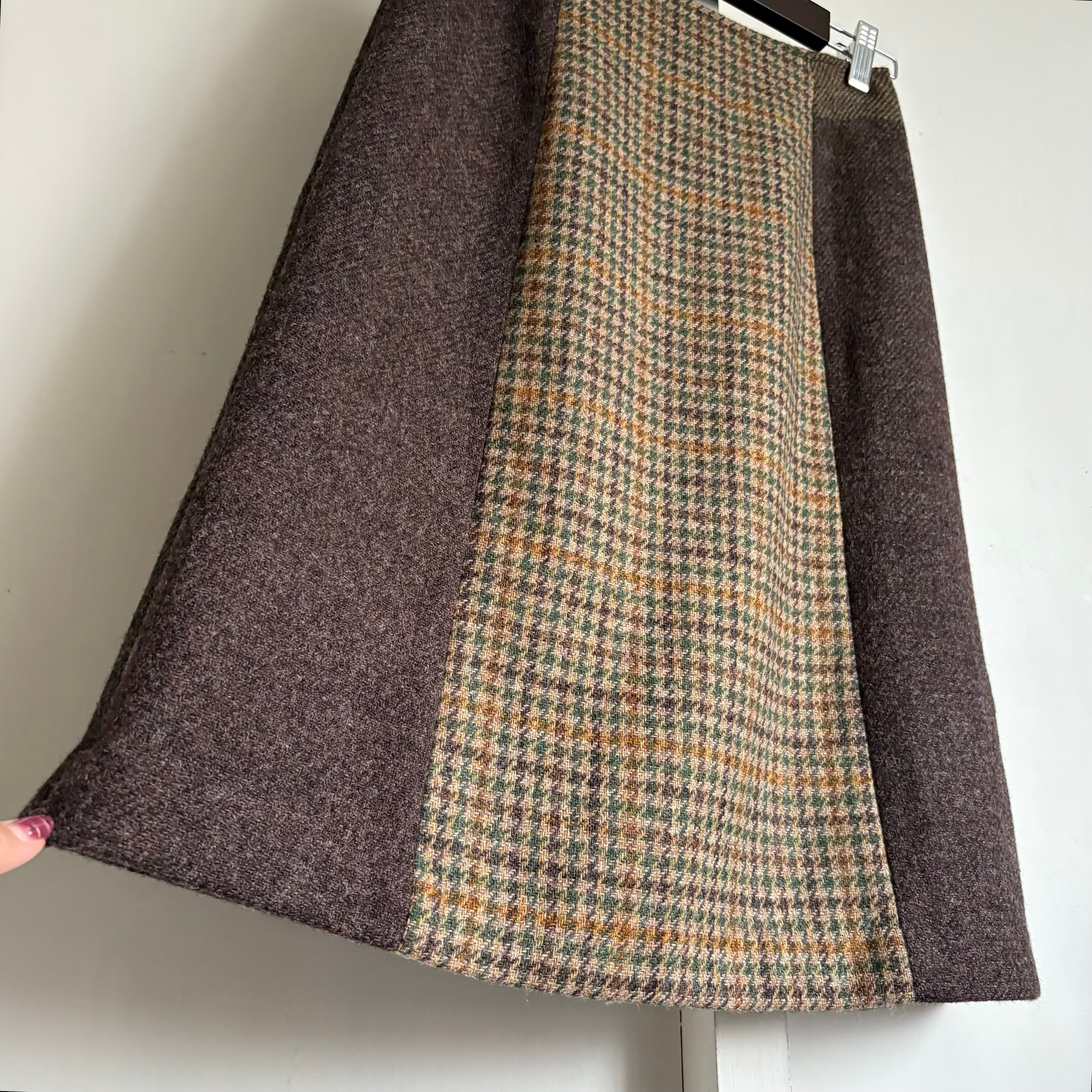 Panelled Tweed Check A-Line Skirt 〈レトロ古着 切り替え ツイードチェック柄 Aラインスカート ジャパンヴィンテージ Japan Vintage〉