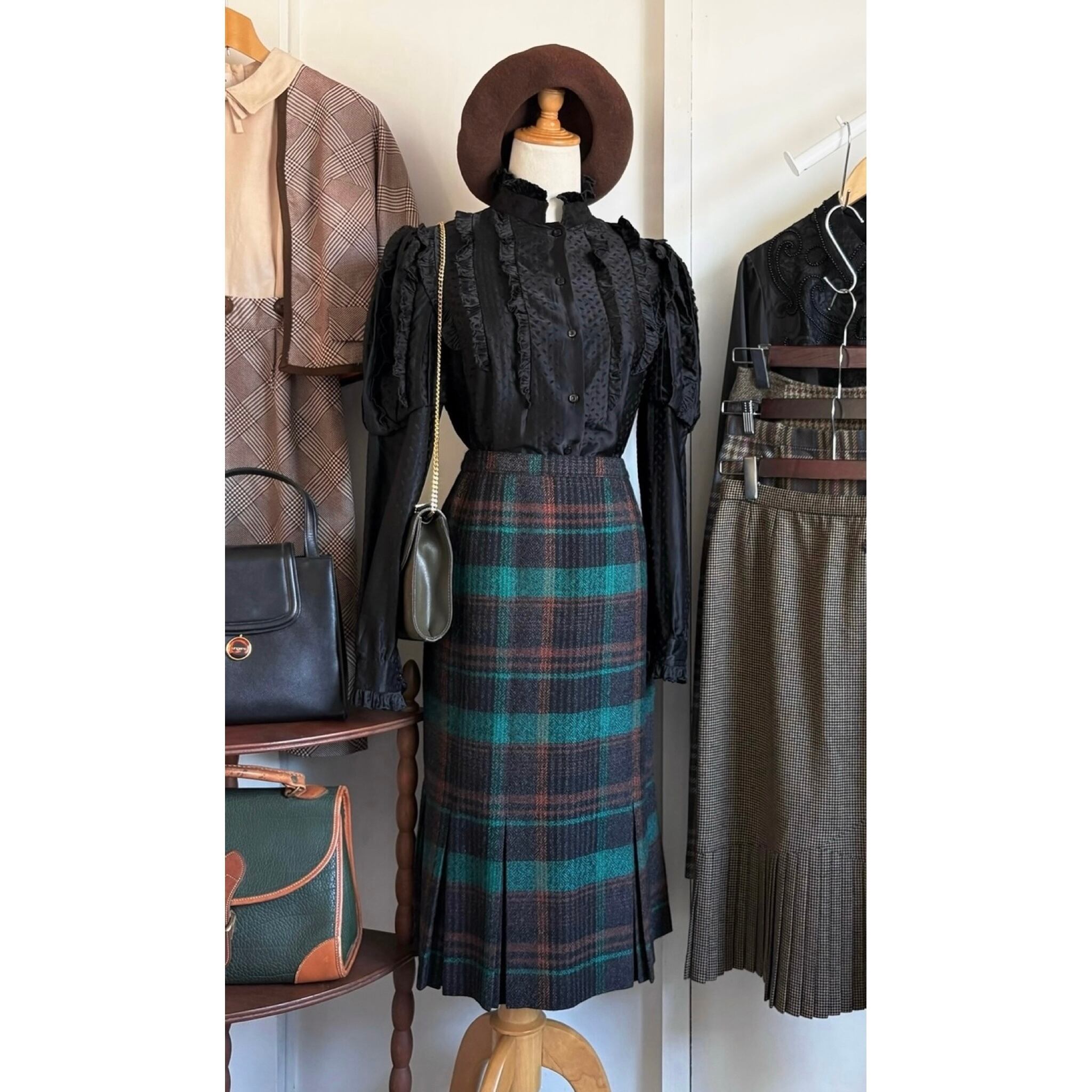 Emerald Green Tartan Pleated Skirt〈レトロ古着 エメラルドグリーン タータンチェック柄 プリーツスカート ジャパンヴィンテージ Japan Vintage〉