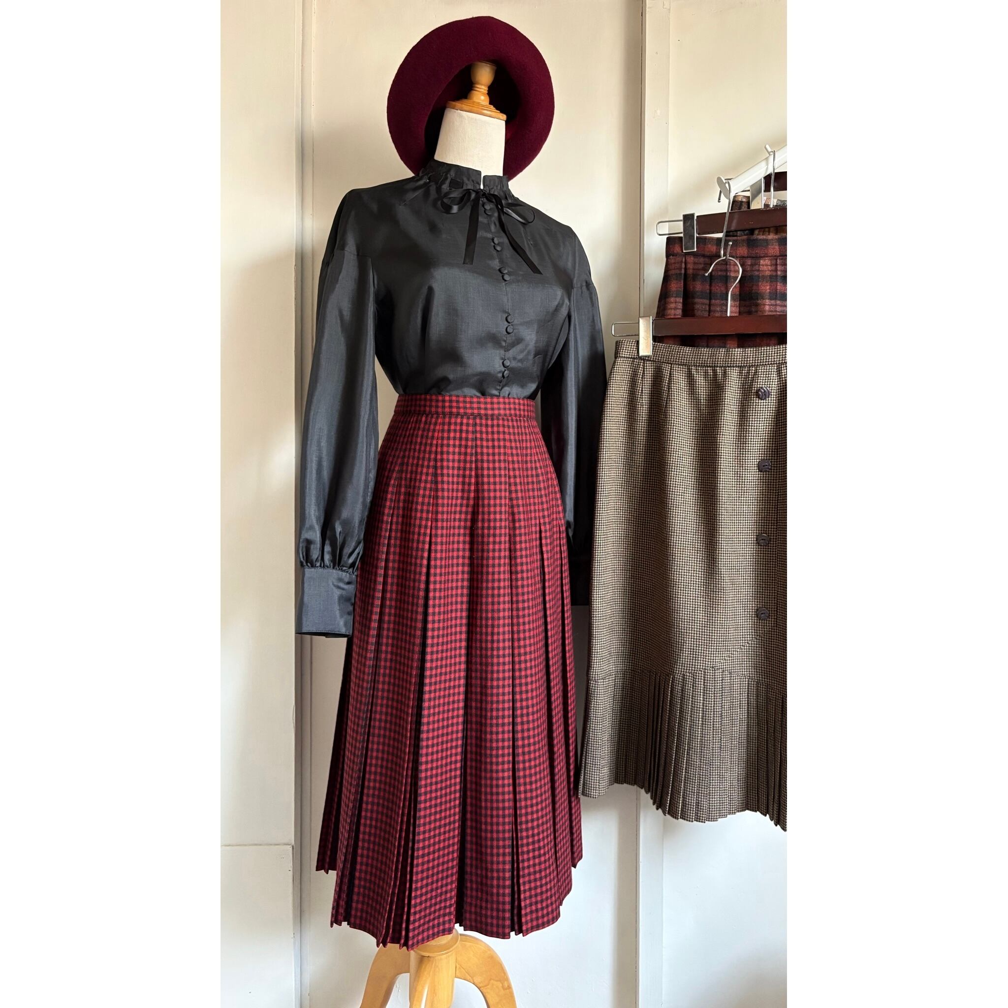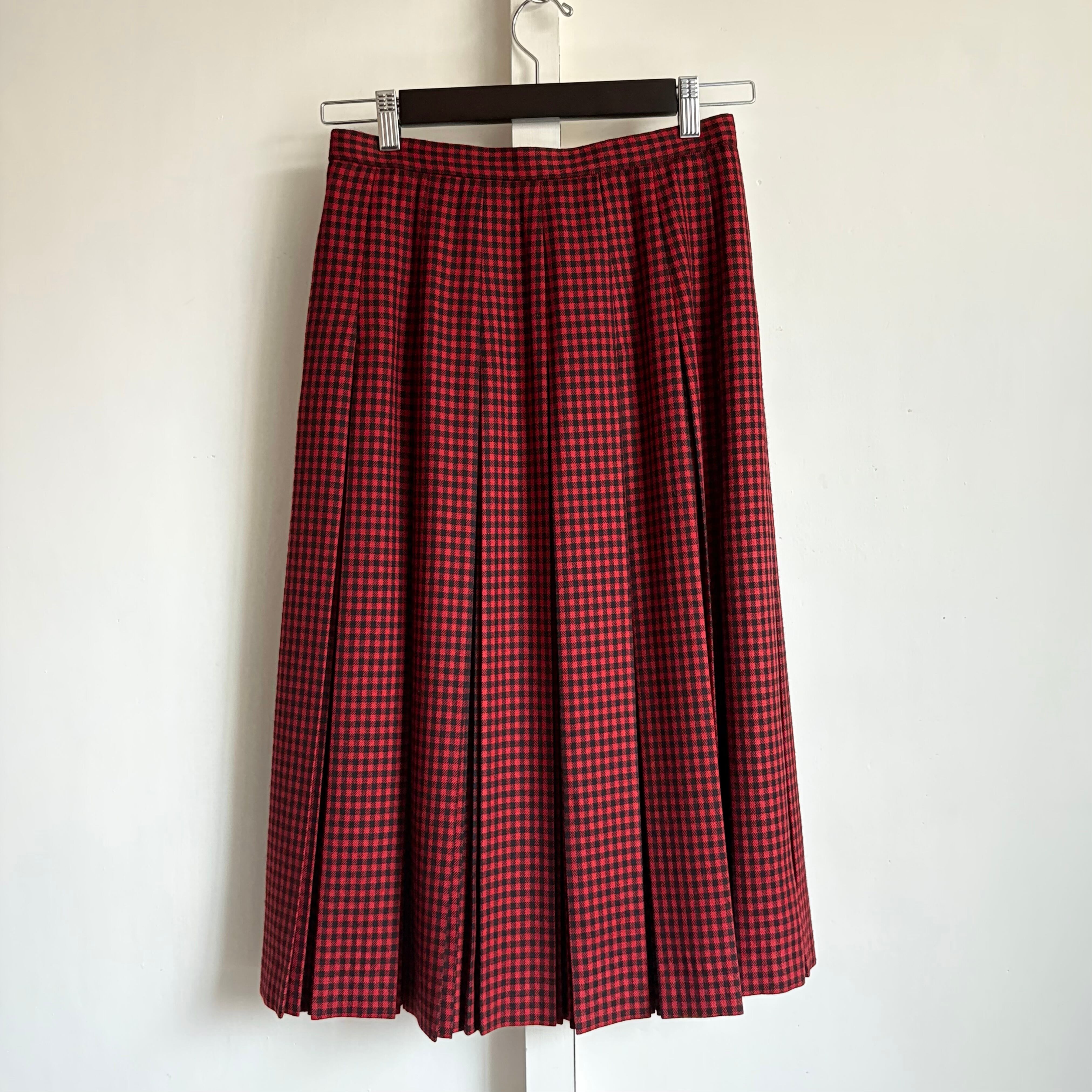 Red Shepherd Check Pleated Skirt 〈レトロ古着 レッド シェパードチェック柄 プリーツスカート ジャパンヴィンテージ Japan Vintage〉