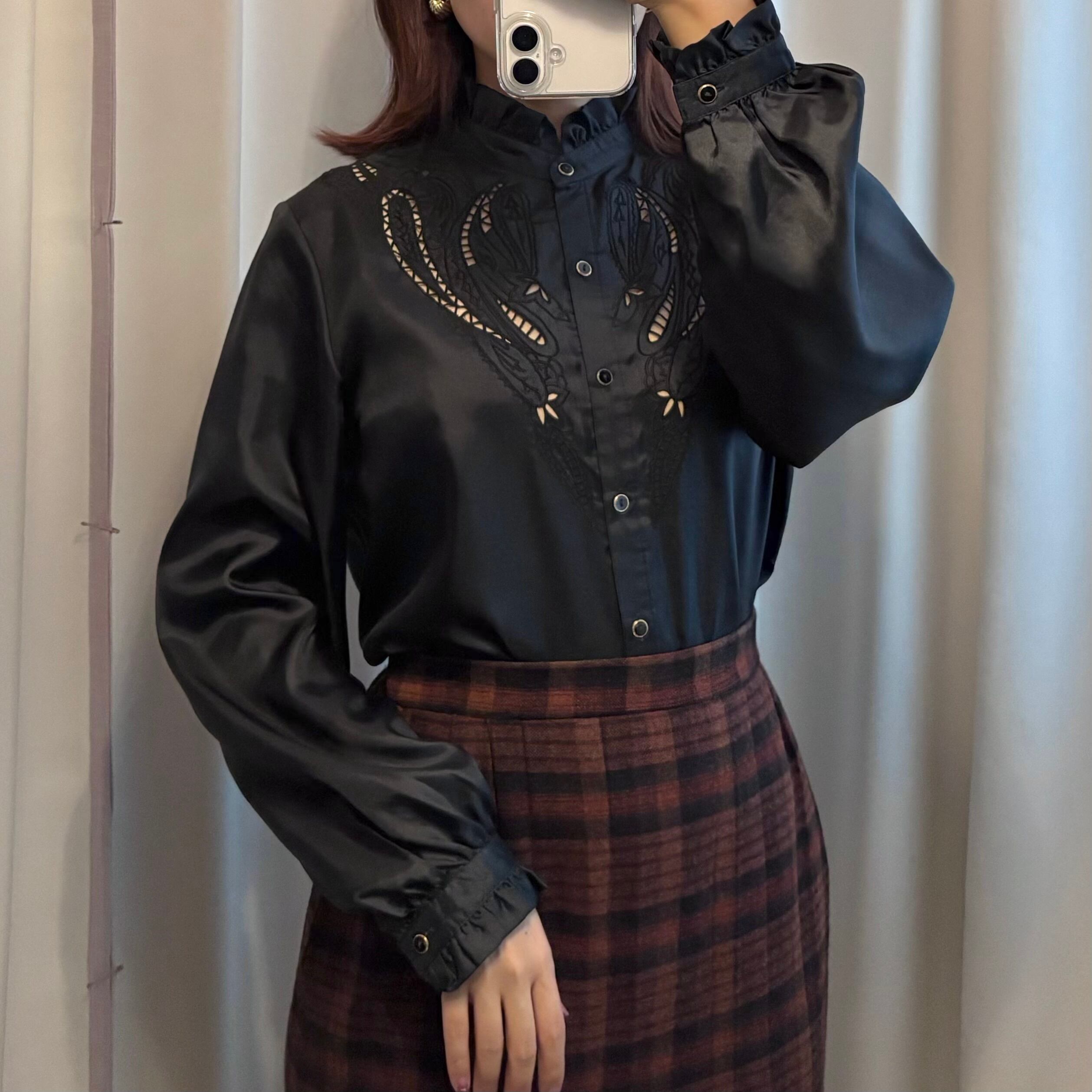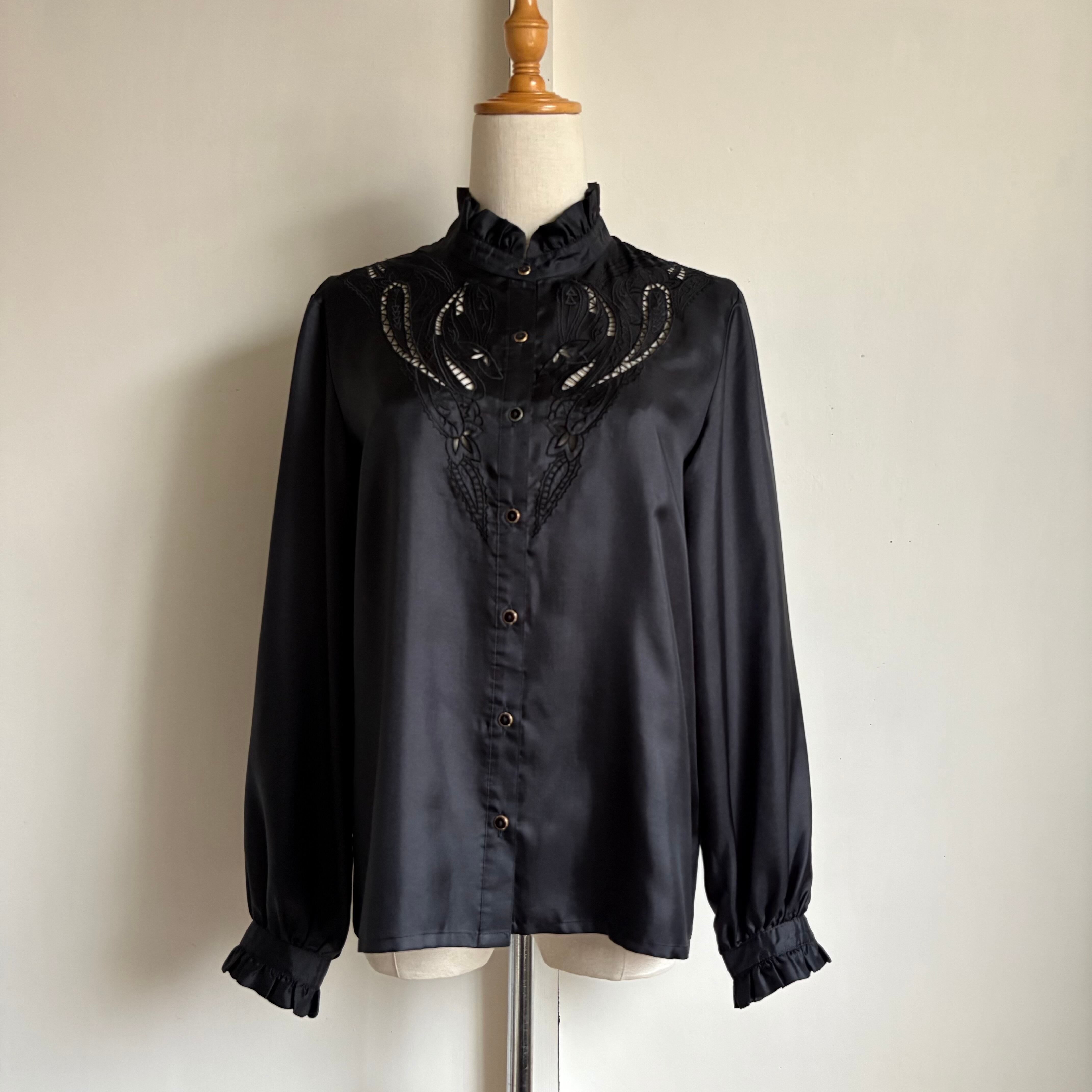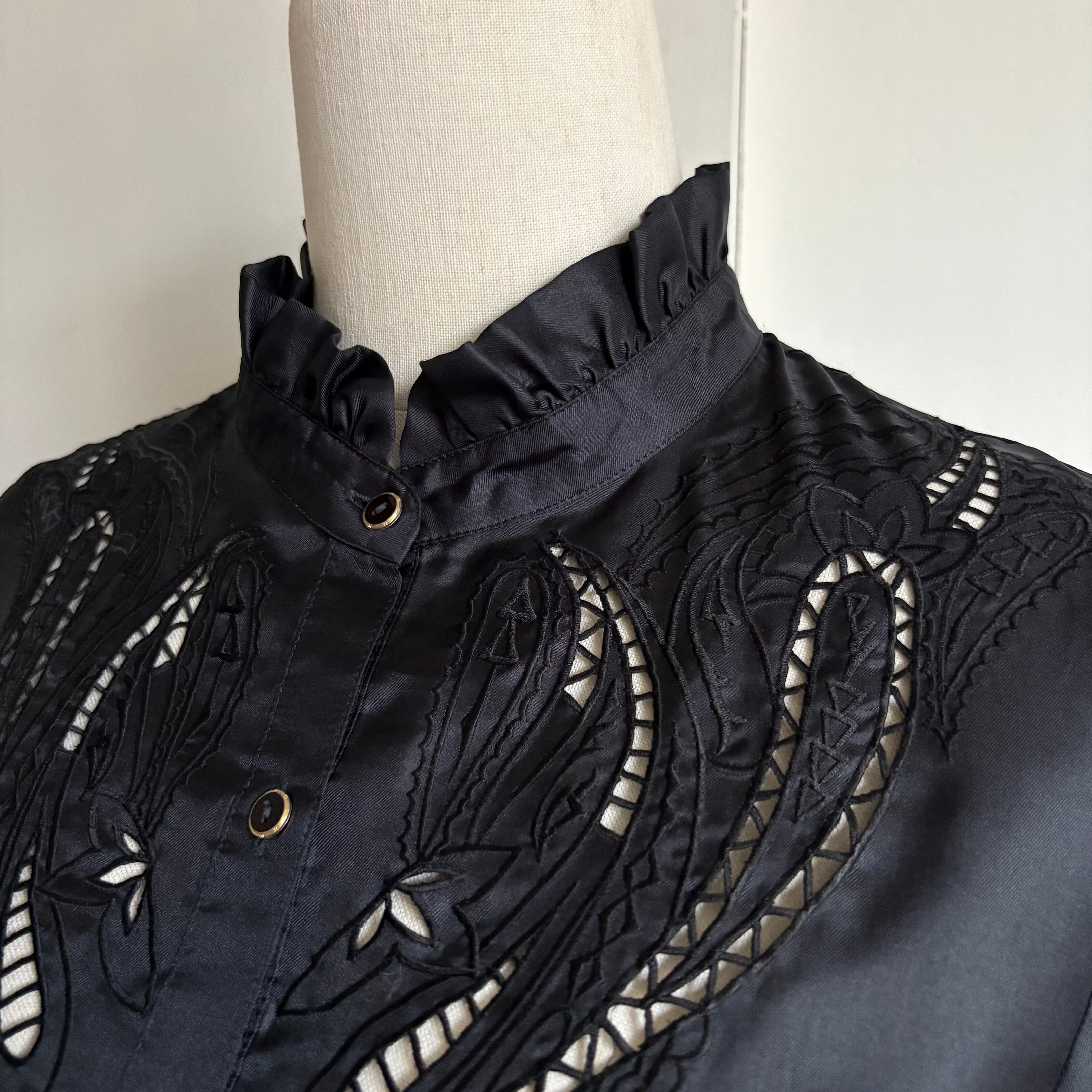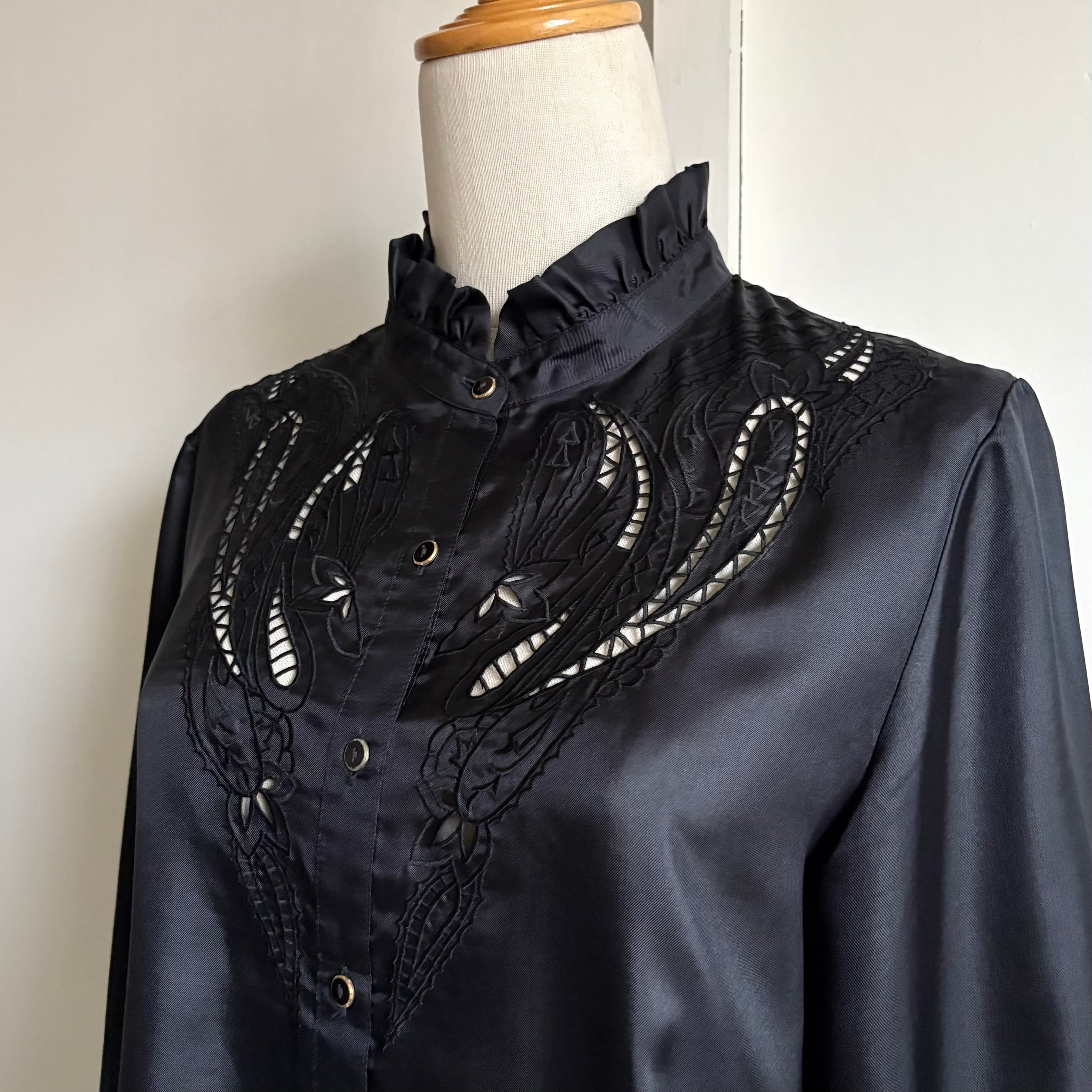 Paisley Cutwork Embroidery Black Blouse 〈レトロ古着 ペイズリー カットワーク刺繍 ブラックブラウス ジャパンヴィンテージ Japan Vintage 黒〉