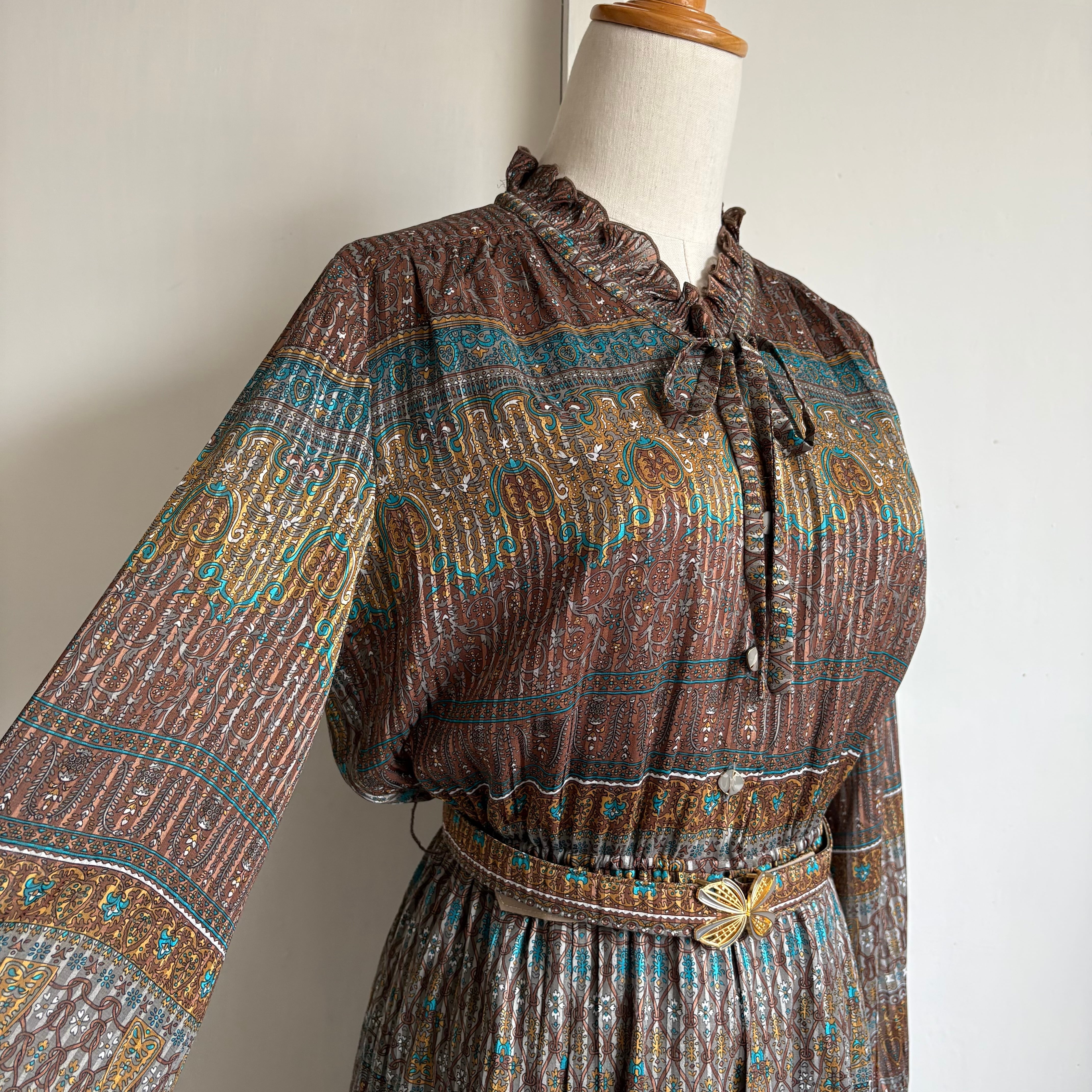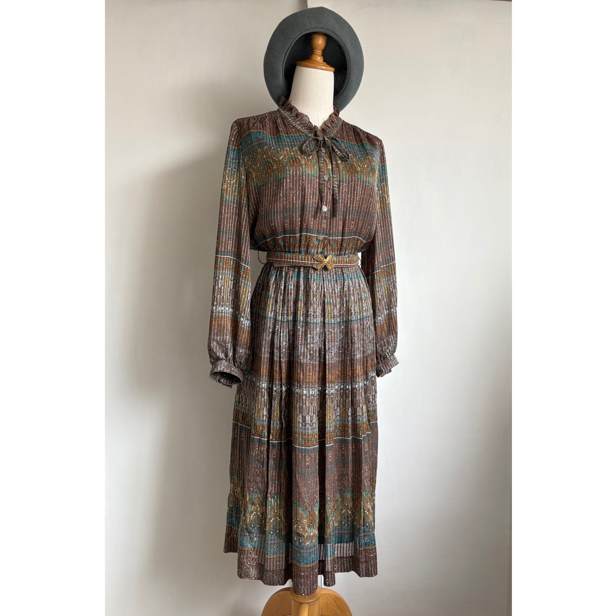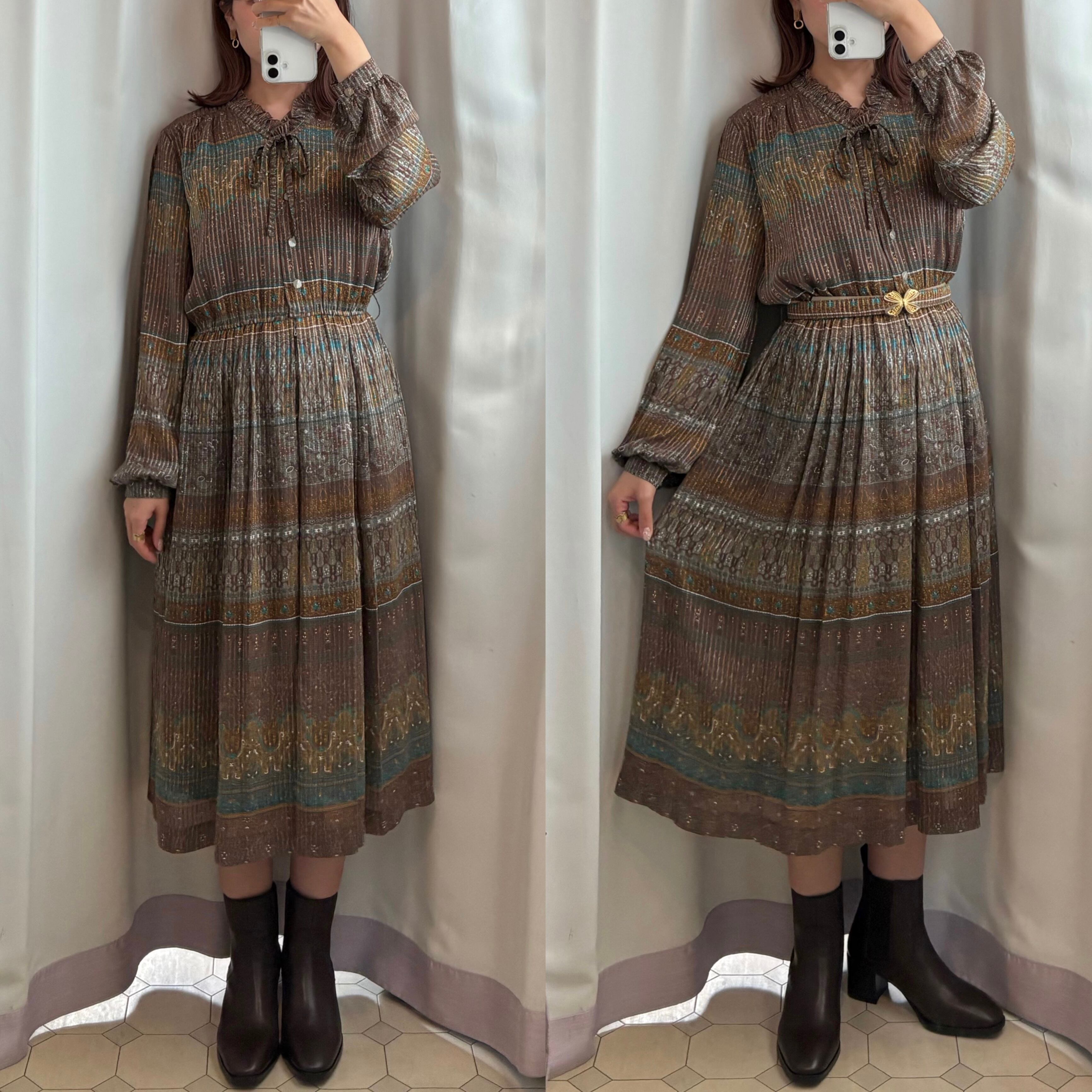Ethnic Pattern Tie-Neck Dress〈レトロ古着 日本製 ジャパンヴィンテージ Japan Vintage〉