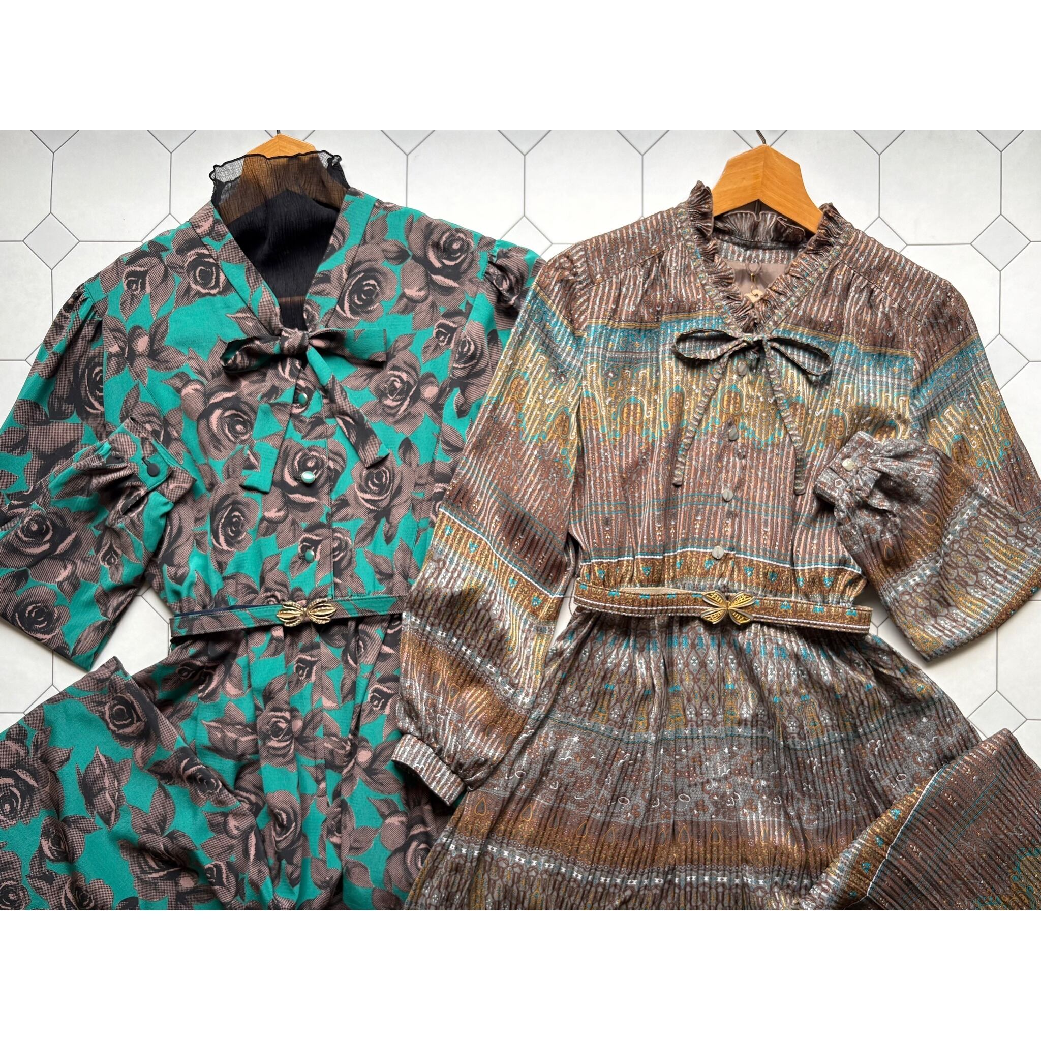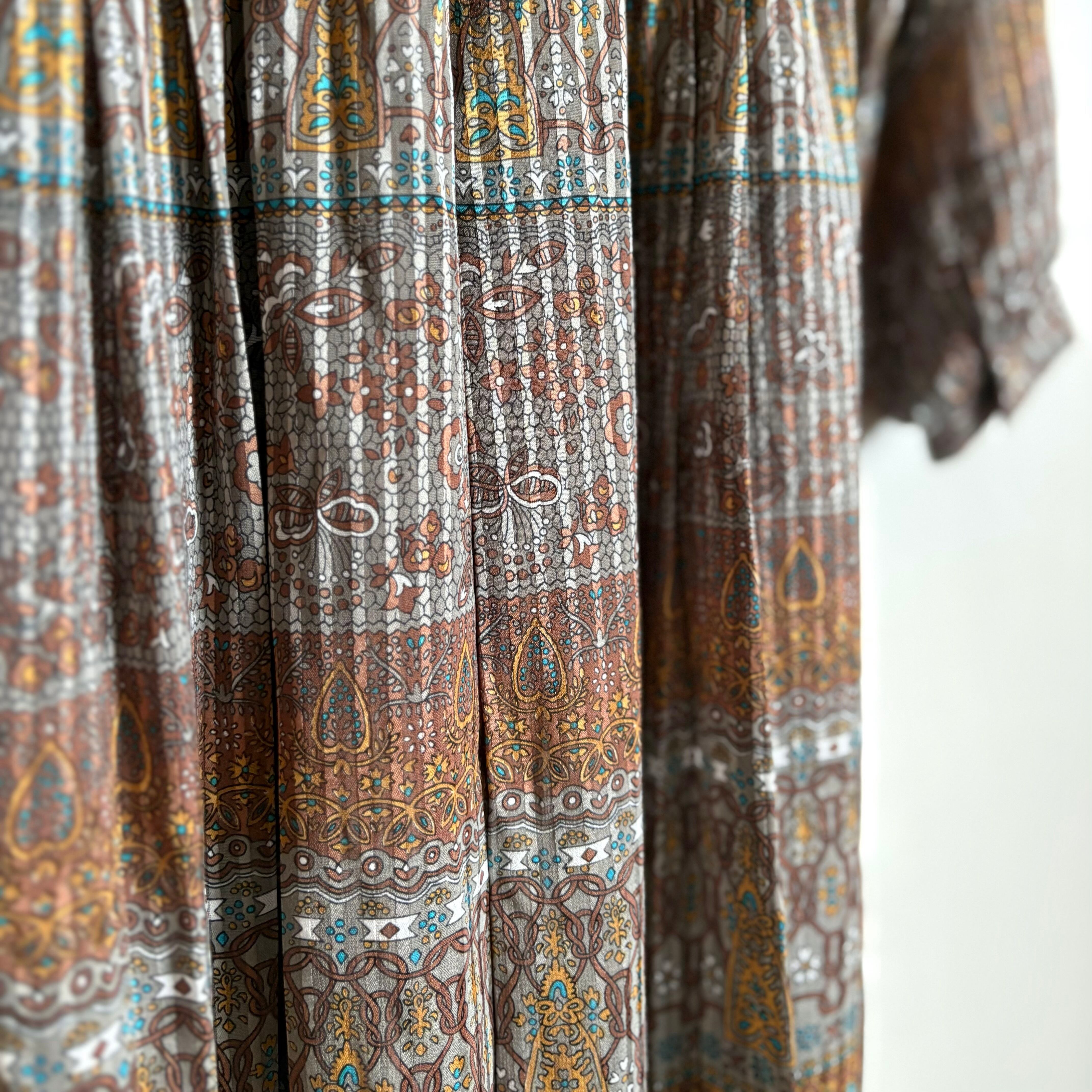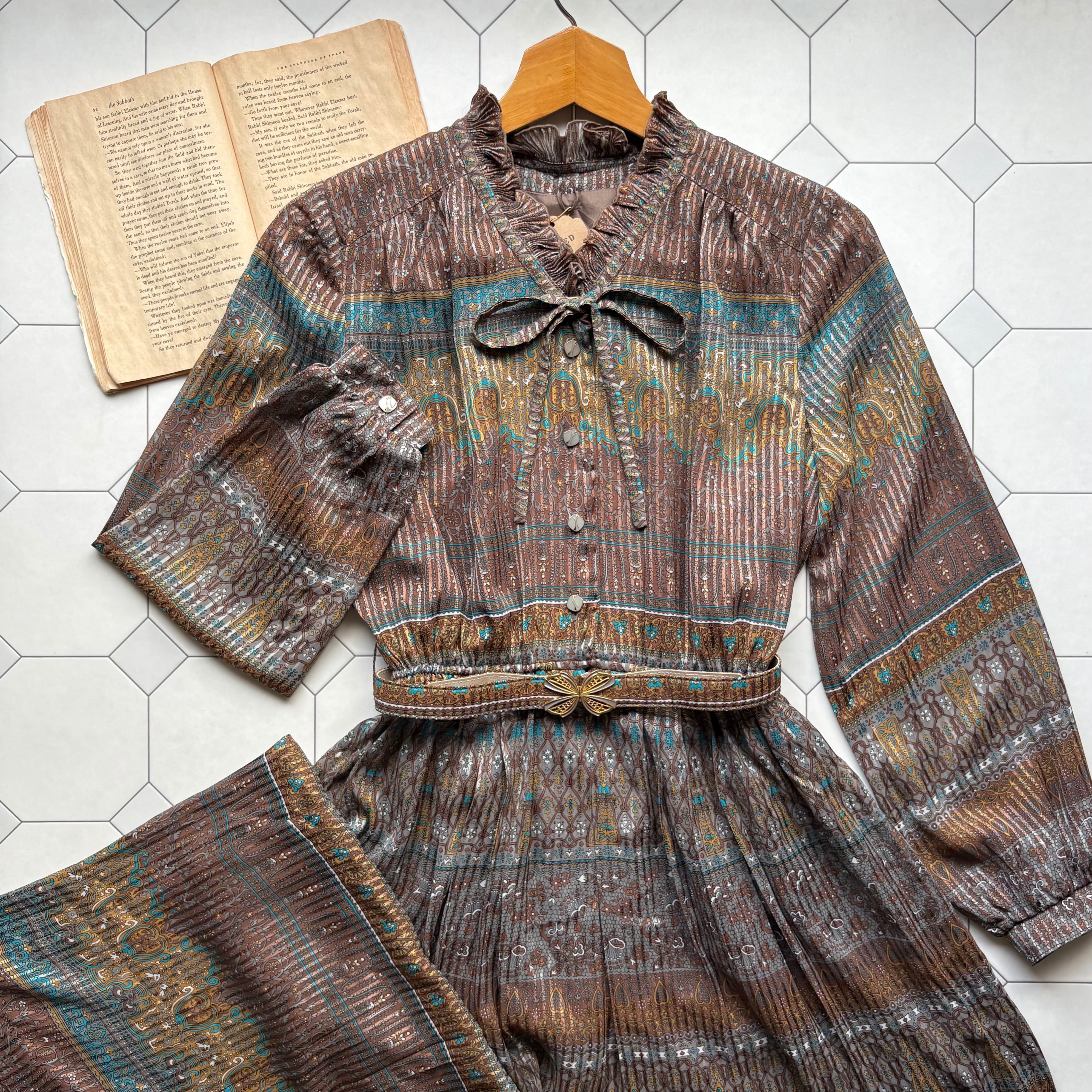Ethnic Pattern Tie-Neck Dress〈レトロ古着 日本製 ジャパンヴィンテージ Japan Vintage〉