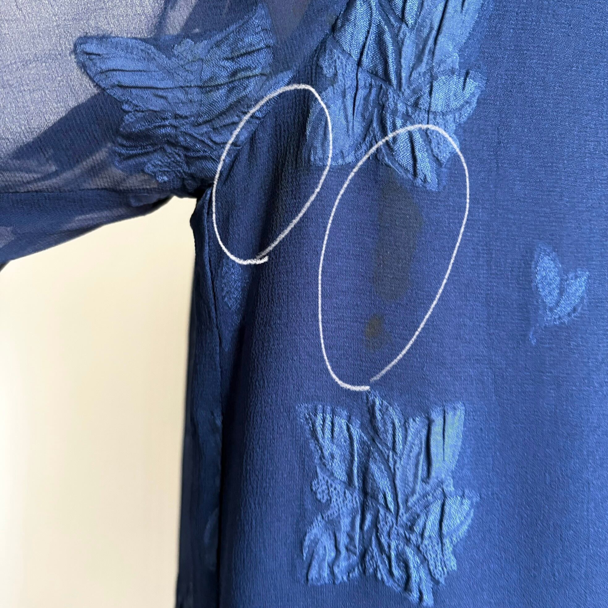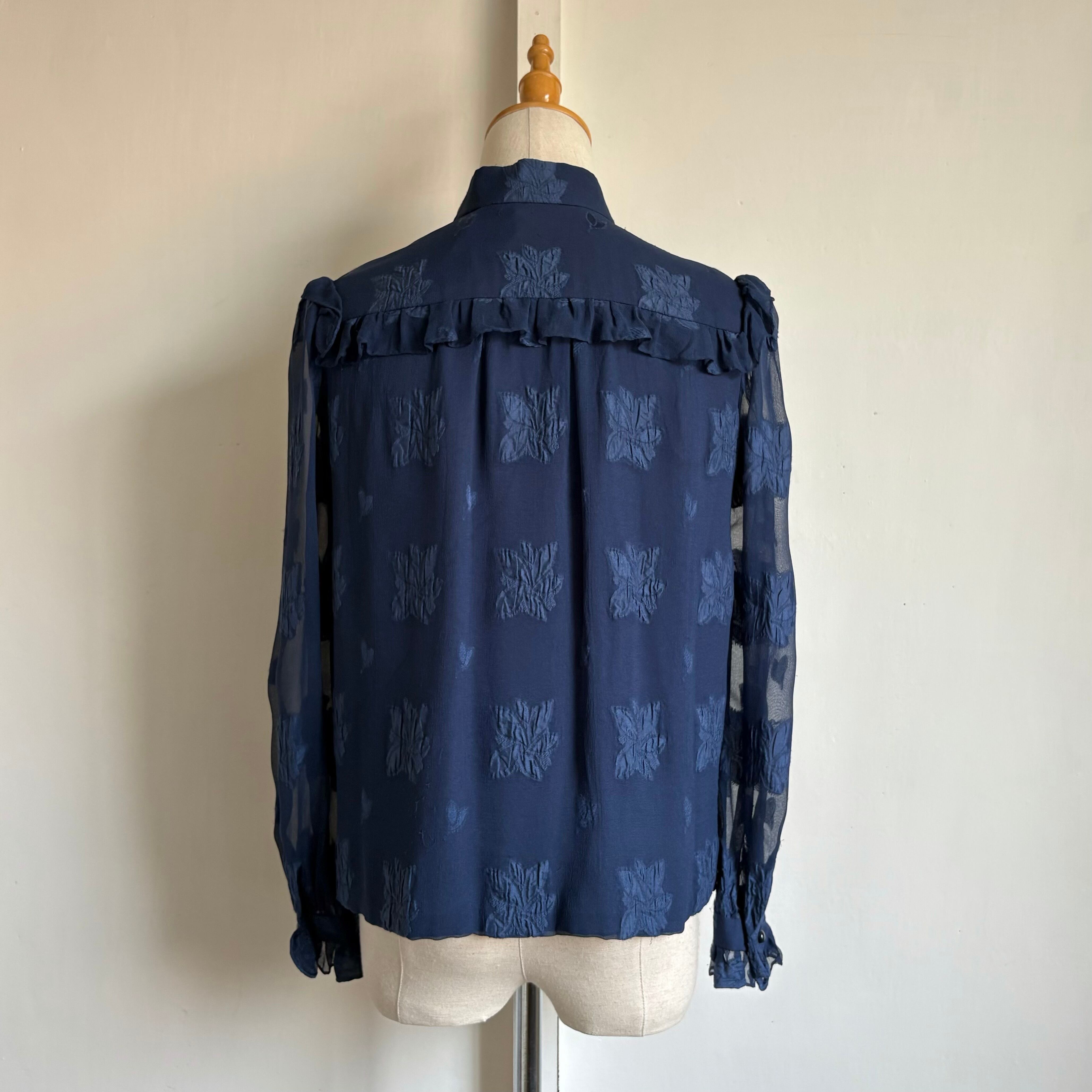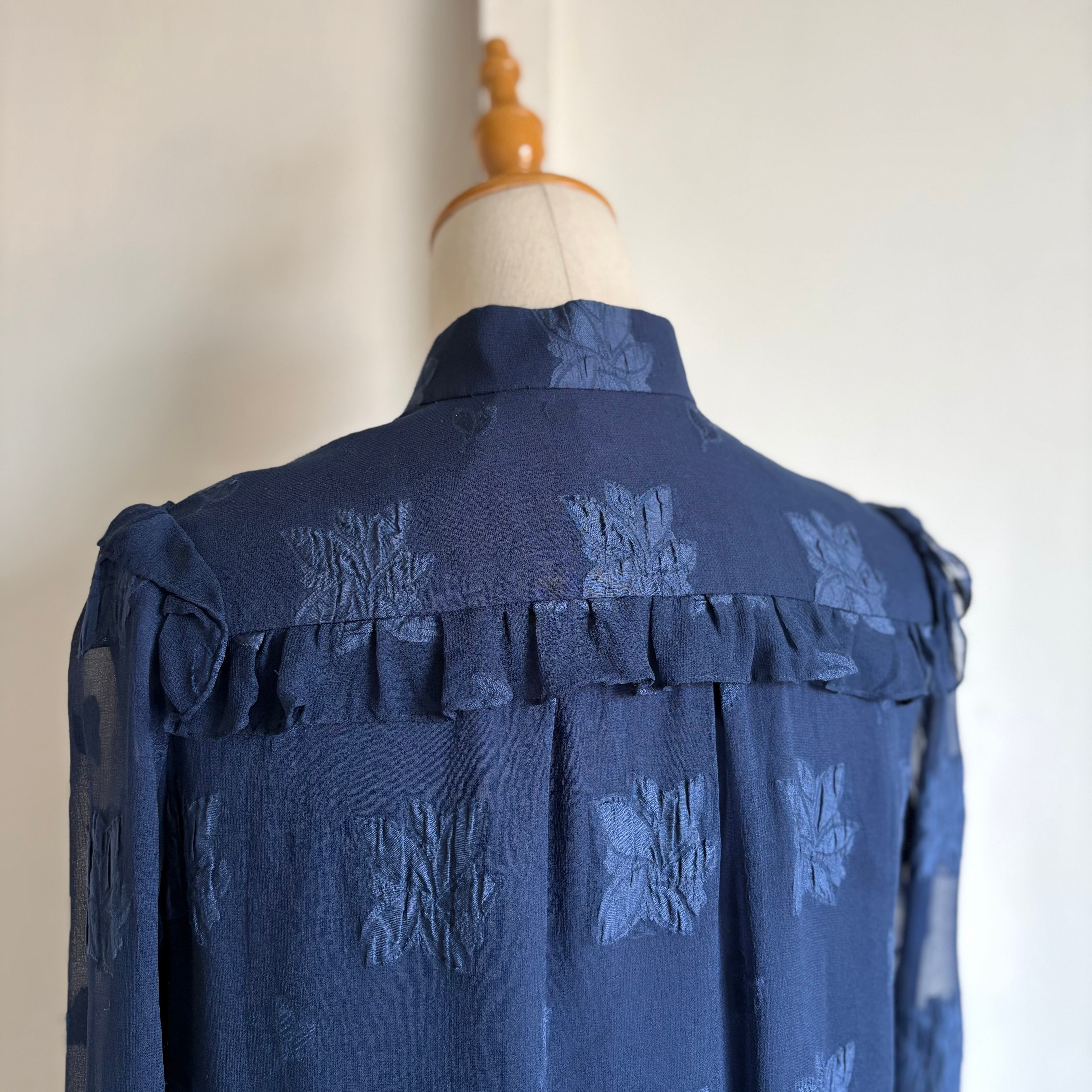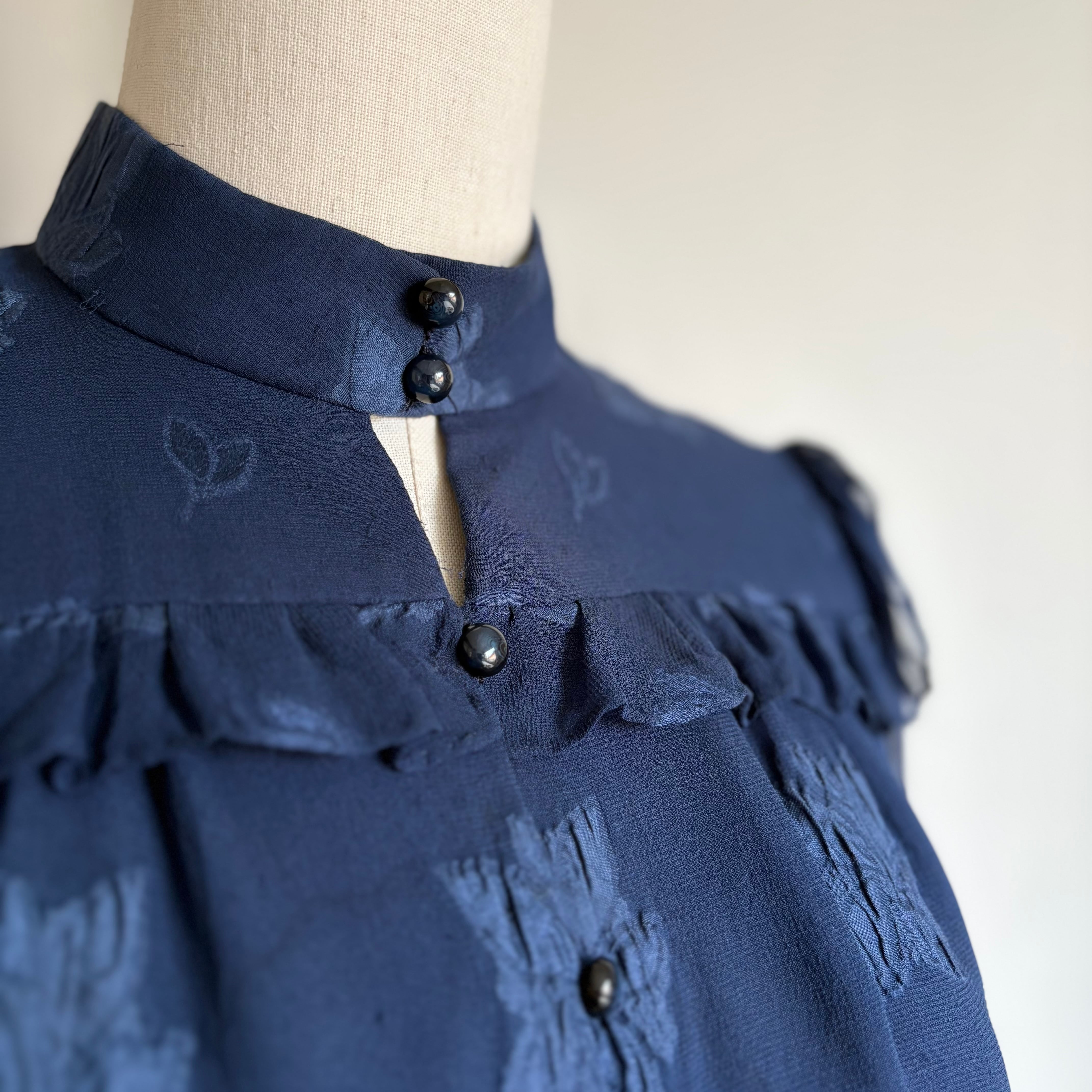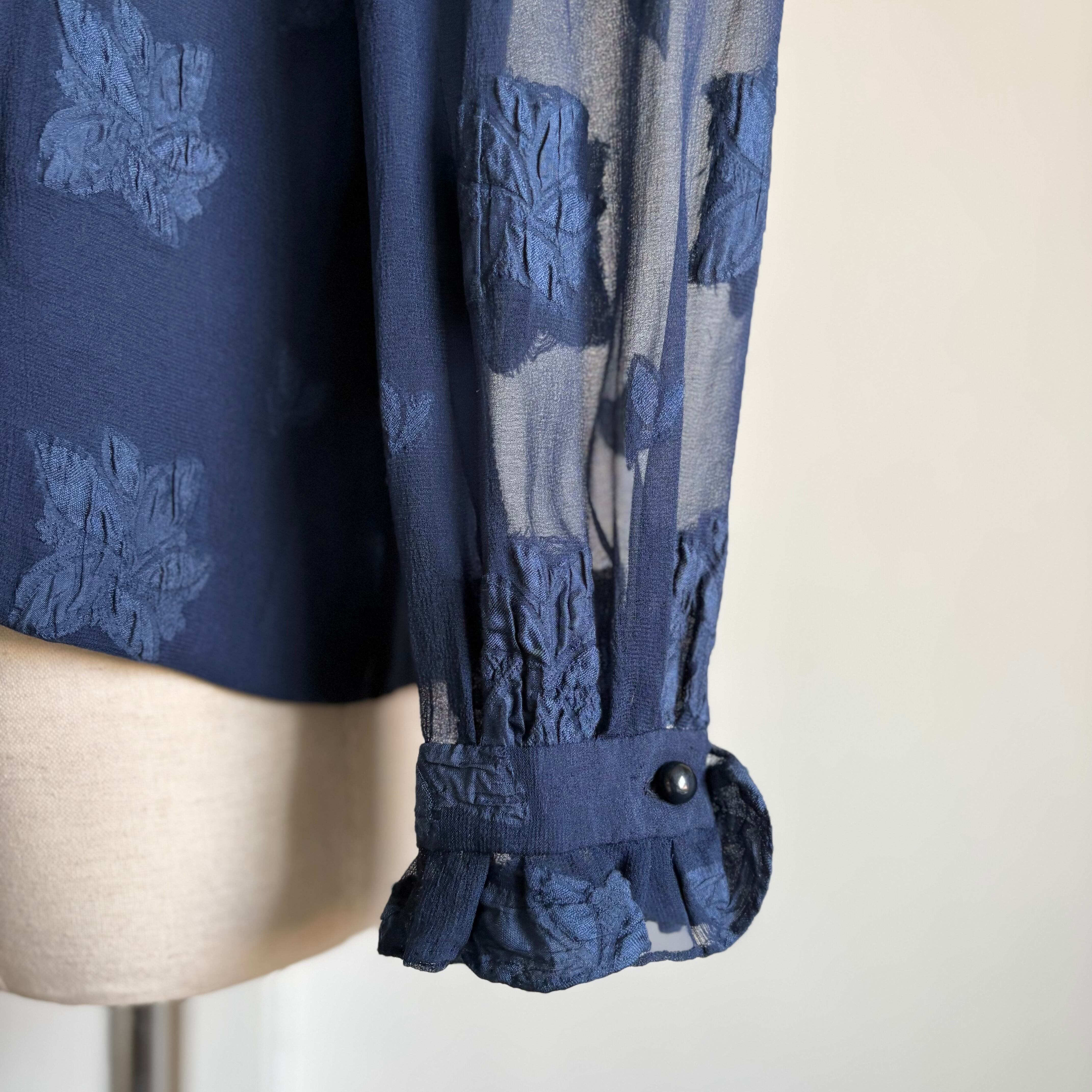 Sheer-Sleeve Floral Jacquard Blouse〈レトロ古着 シアー袖 フラワージャガード ブラウス ジャパンヴィンテージ Japan Vintage〉