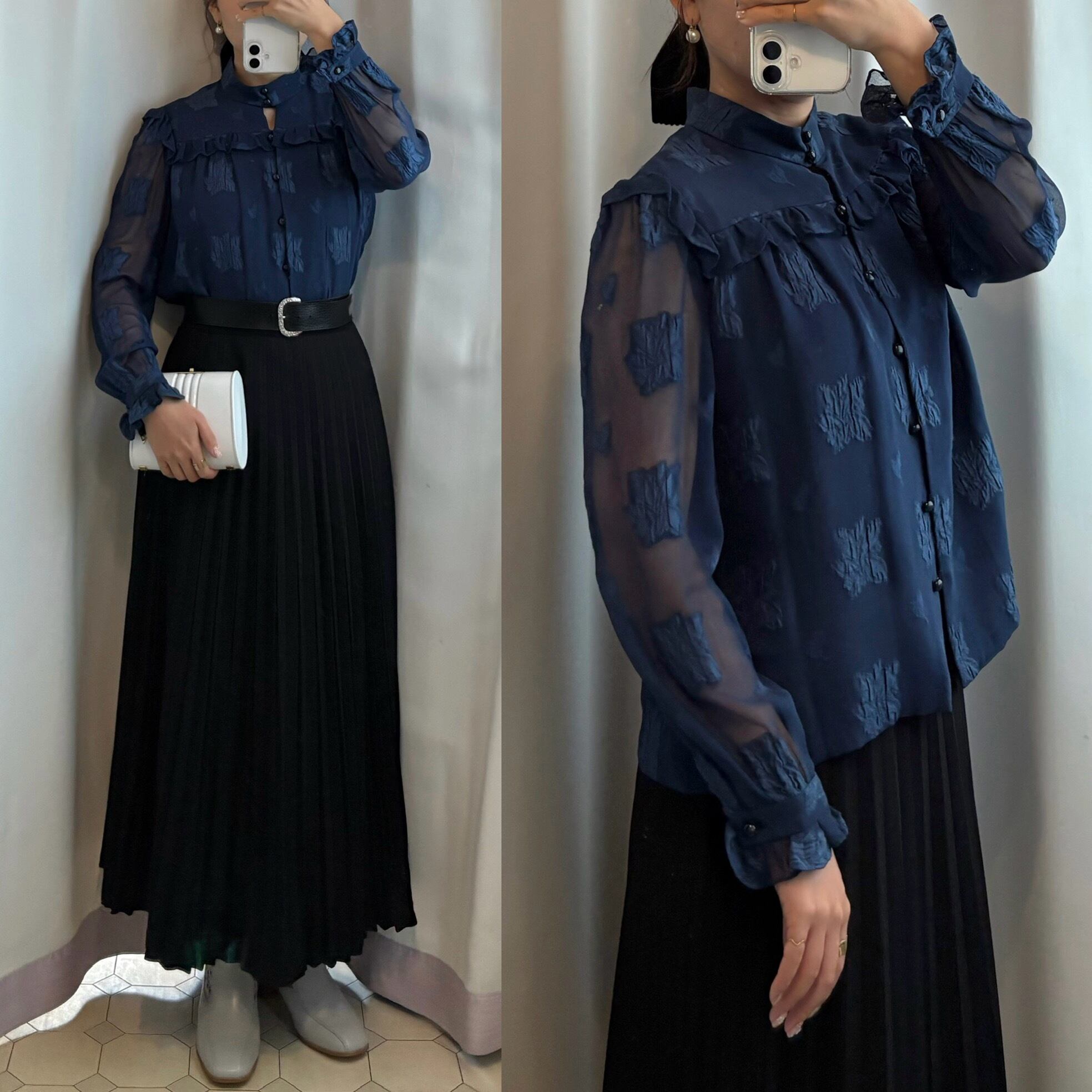 こちらはお花と葉っぱモチーフのジャガード生地ブラウス