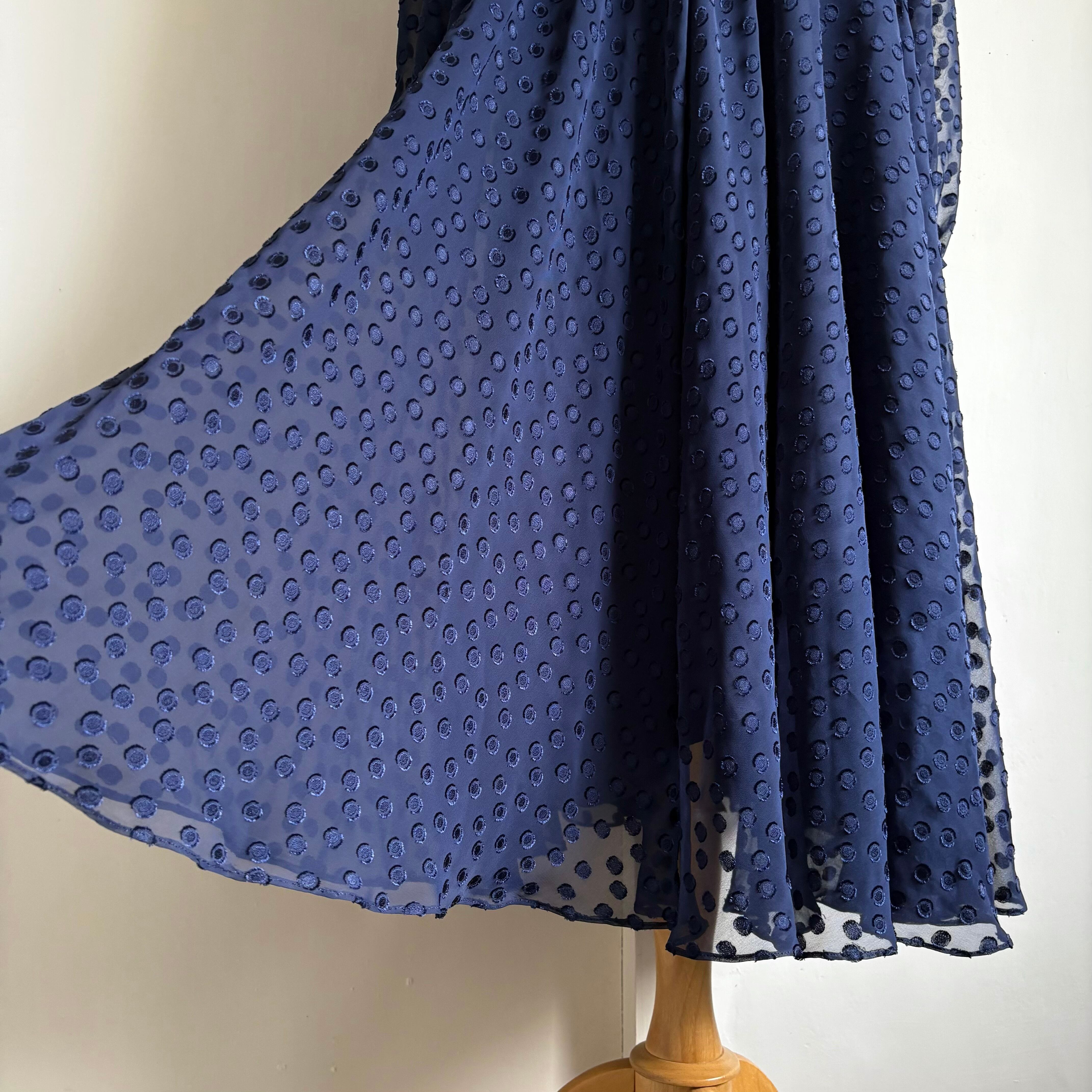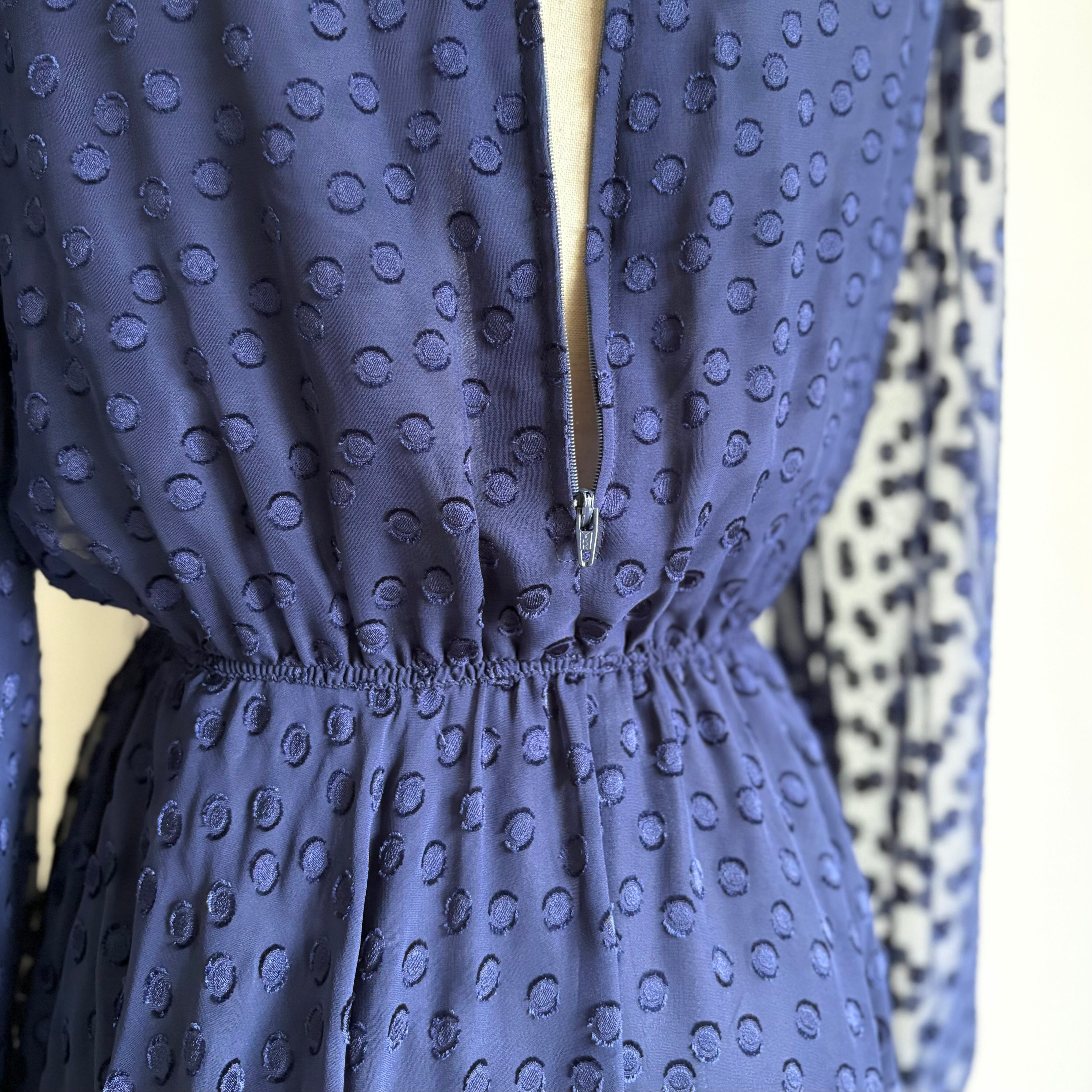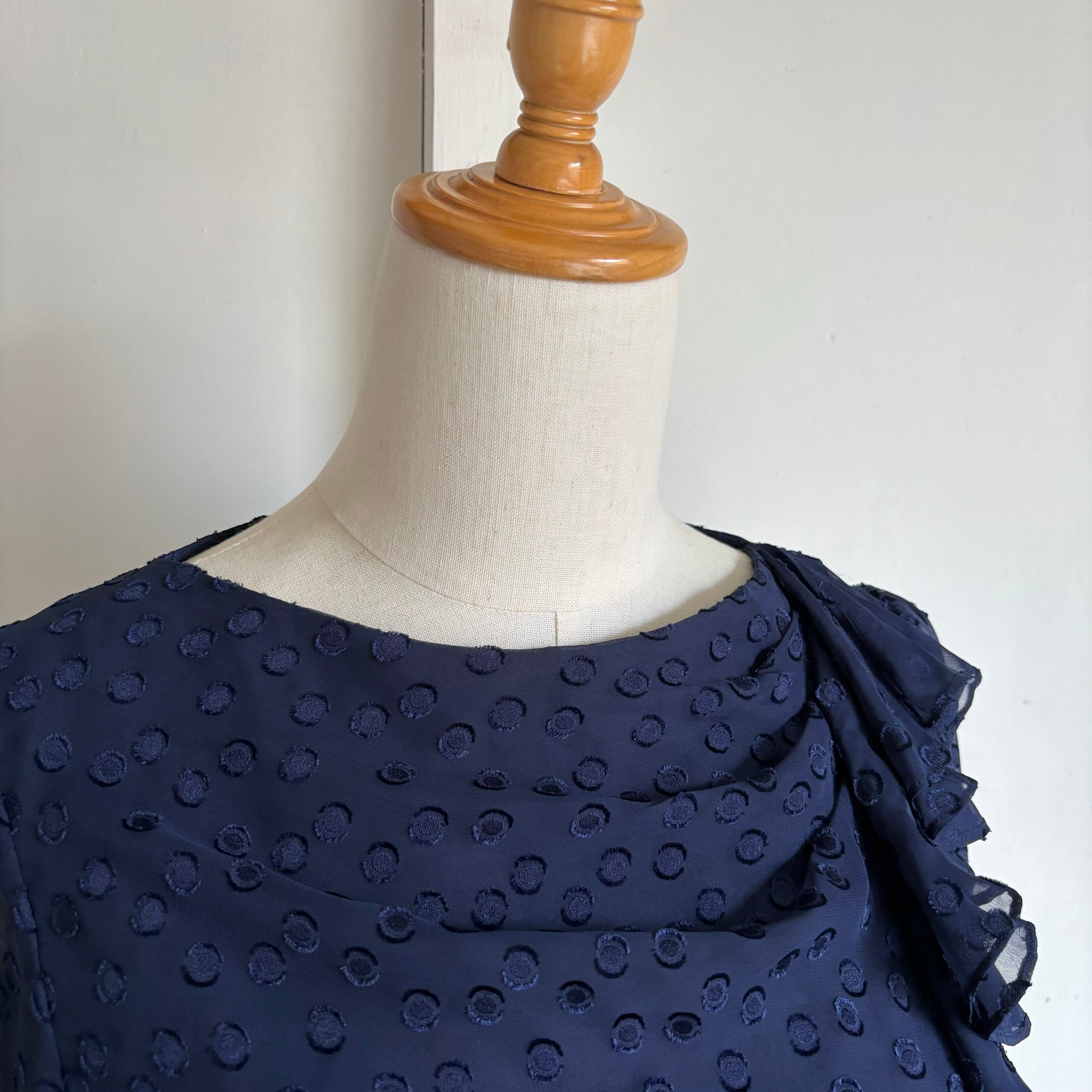 Sheer-Sleeve Dot Jacquard Dress〈レトロ古着 シアー袖 ドットジャガード ワンピース ジャパンヴィンテージ Japan Vintage〉