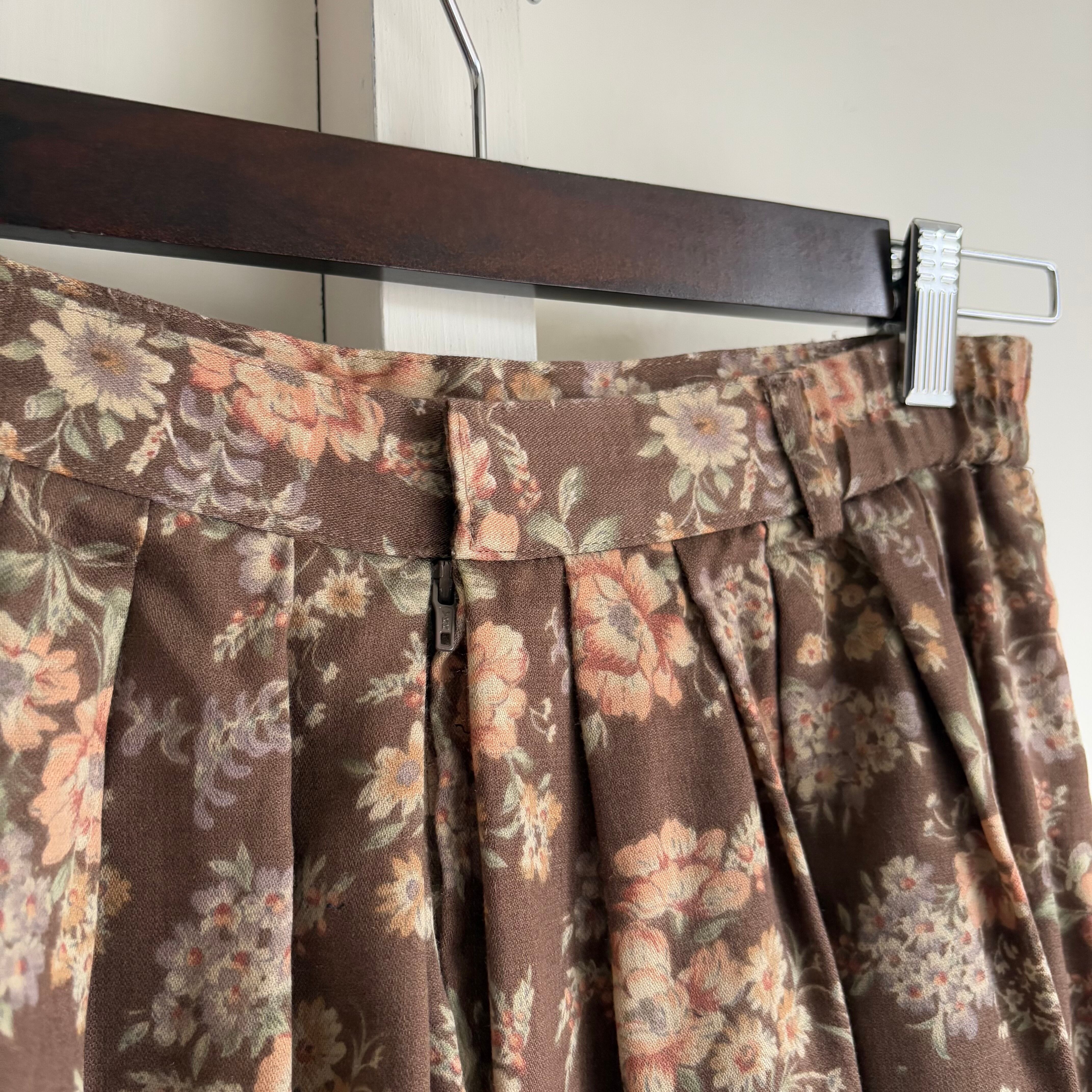 Dusky Floral Tuck Skirt 〈レトロ古着 くすみ花柄 タックスカート 日本製 ジャパンヴィンテージ Japan Vintage〉