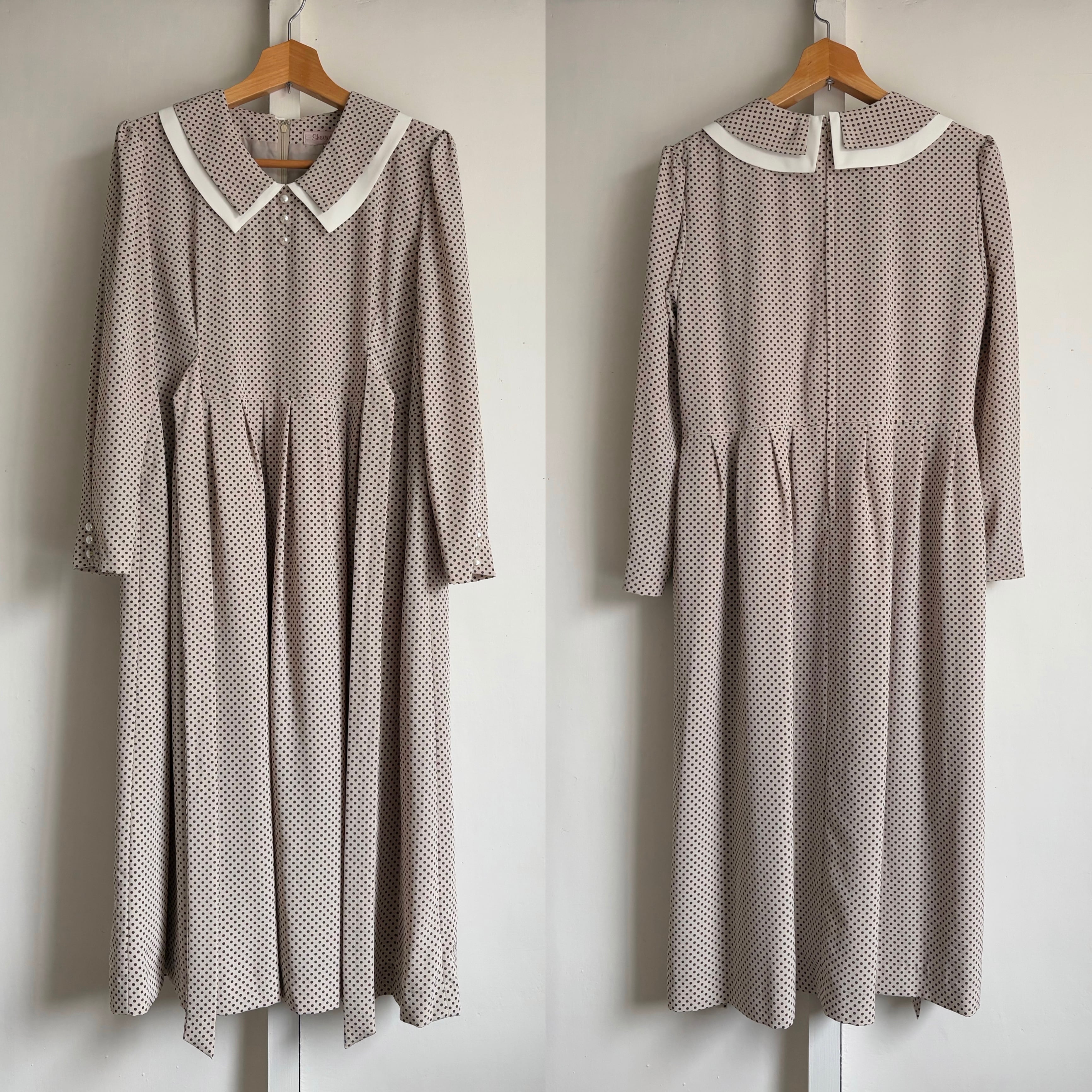 Pin Dot Big Collar Dress〈レトロ古着 ピンドット ビッグカラーワンピース 日本製 ジャパンヴィンテージ Japan Vintage〉
