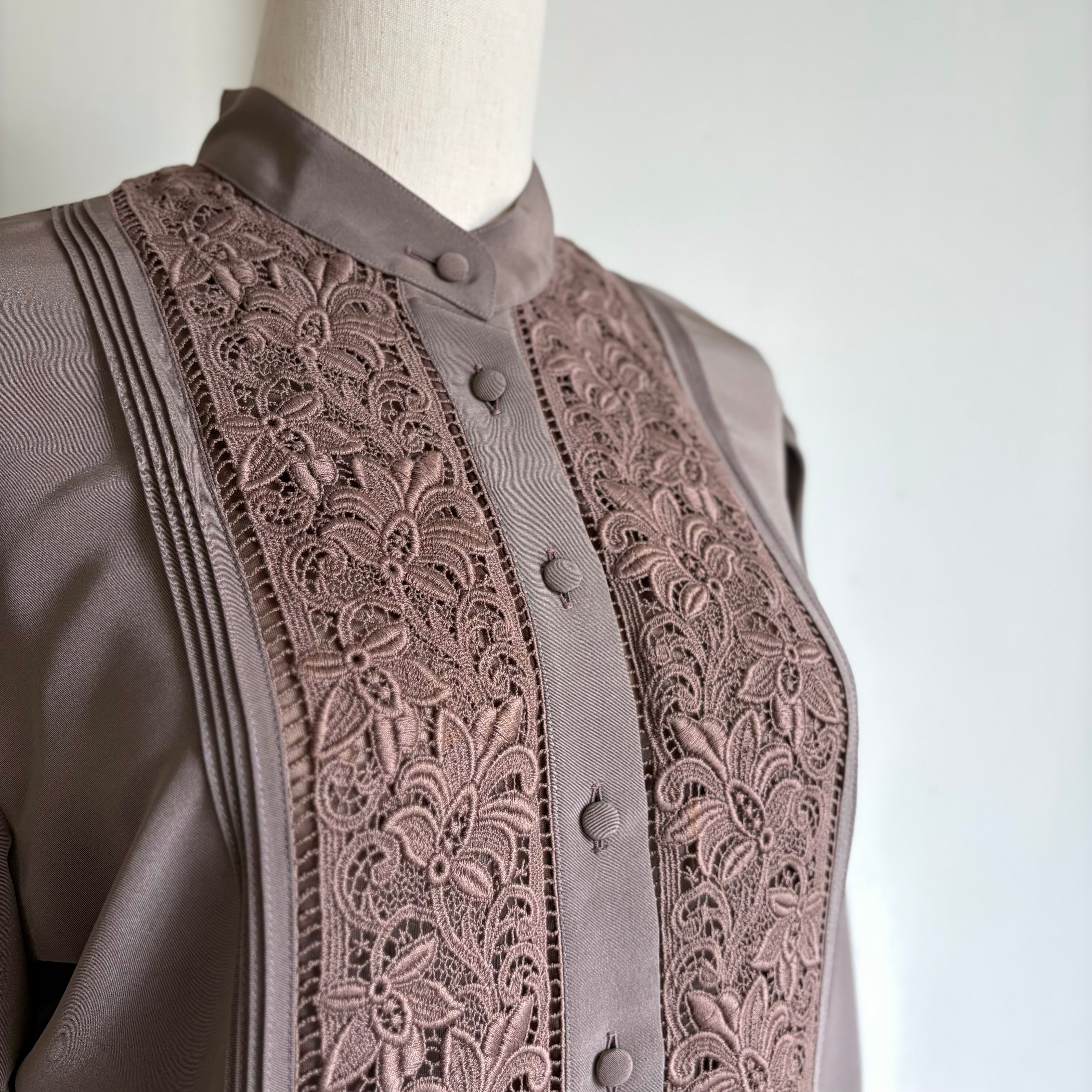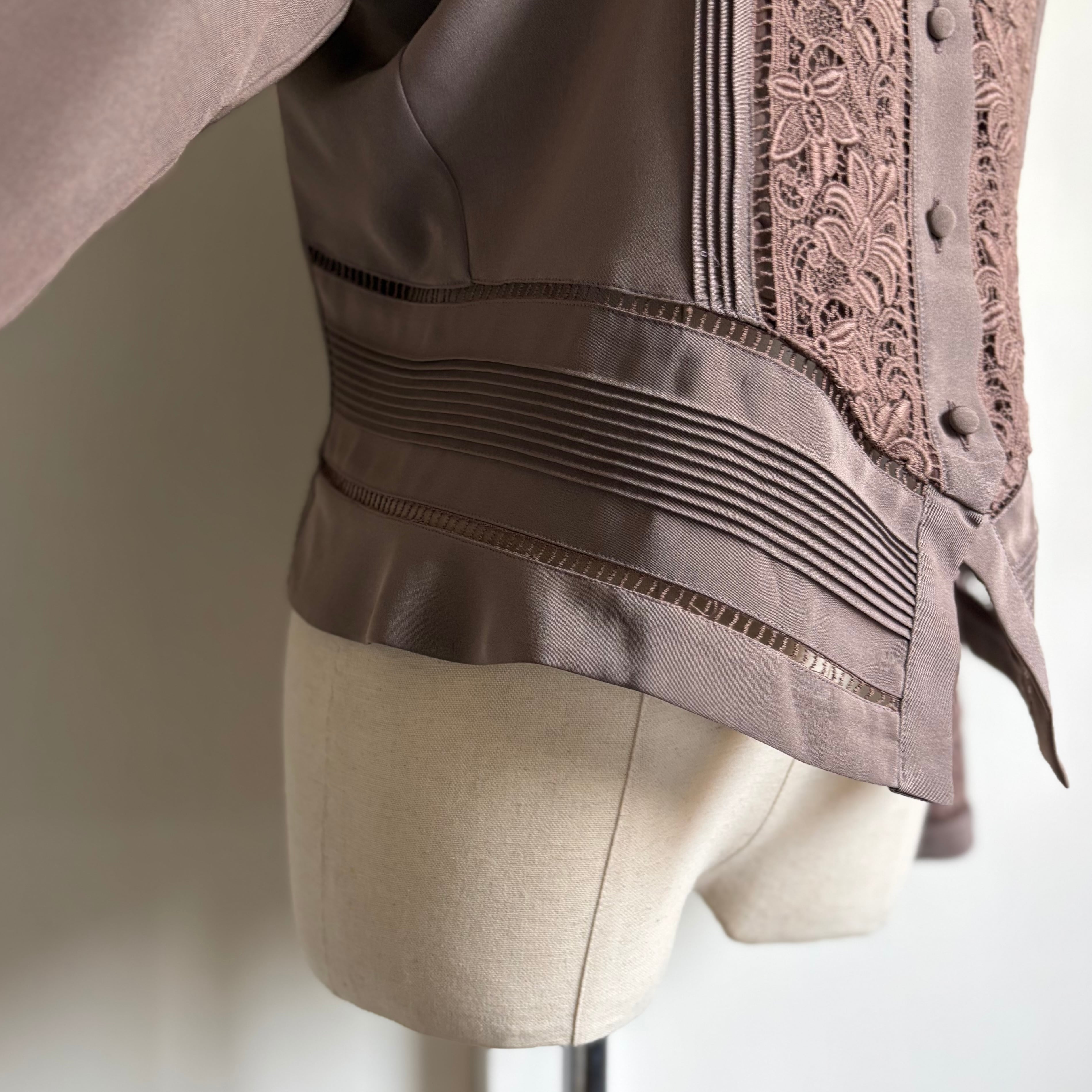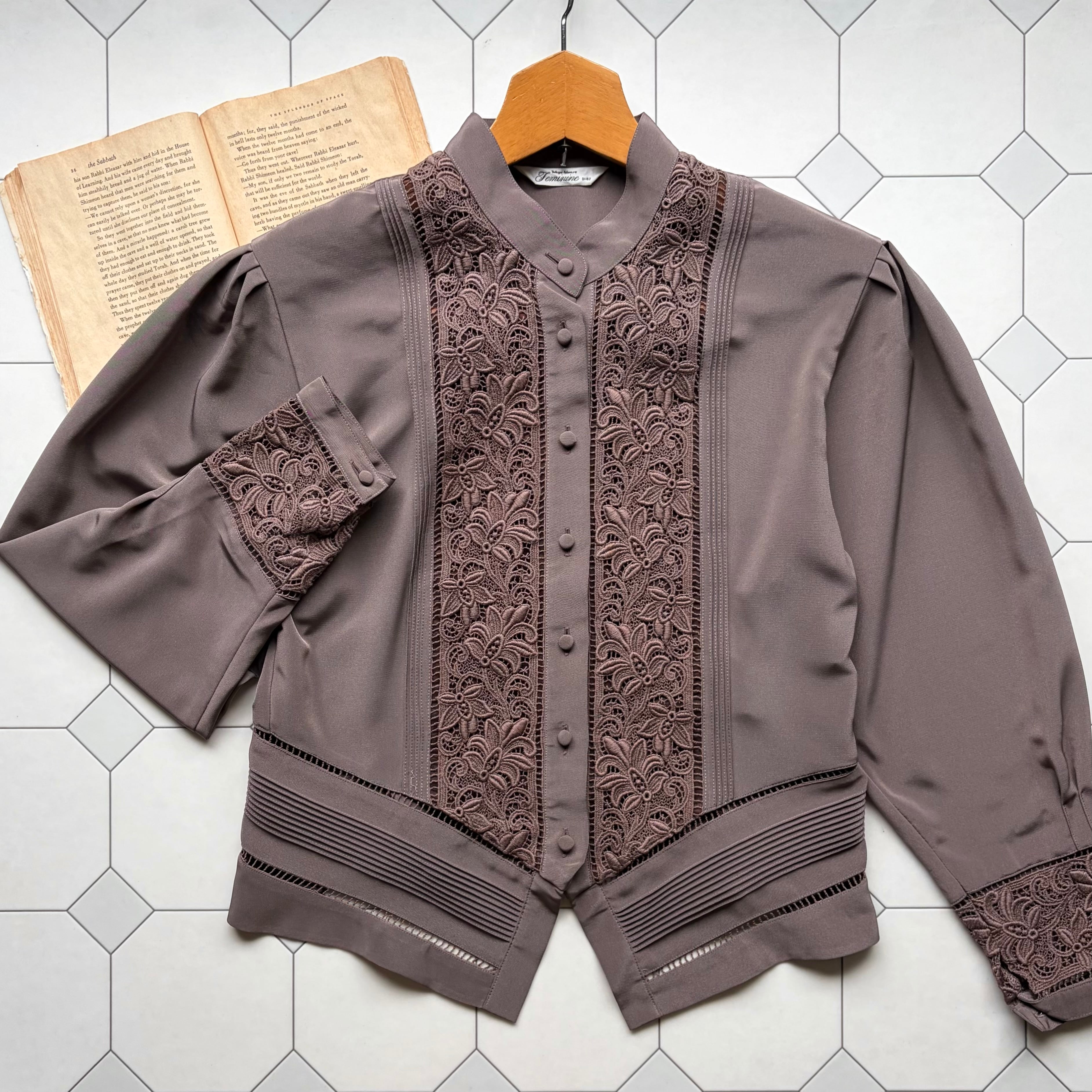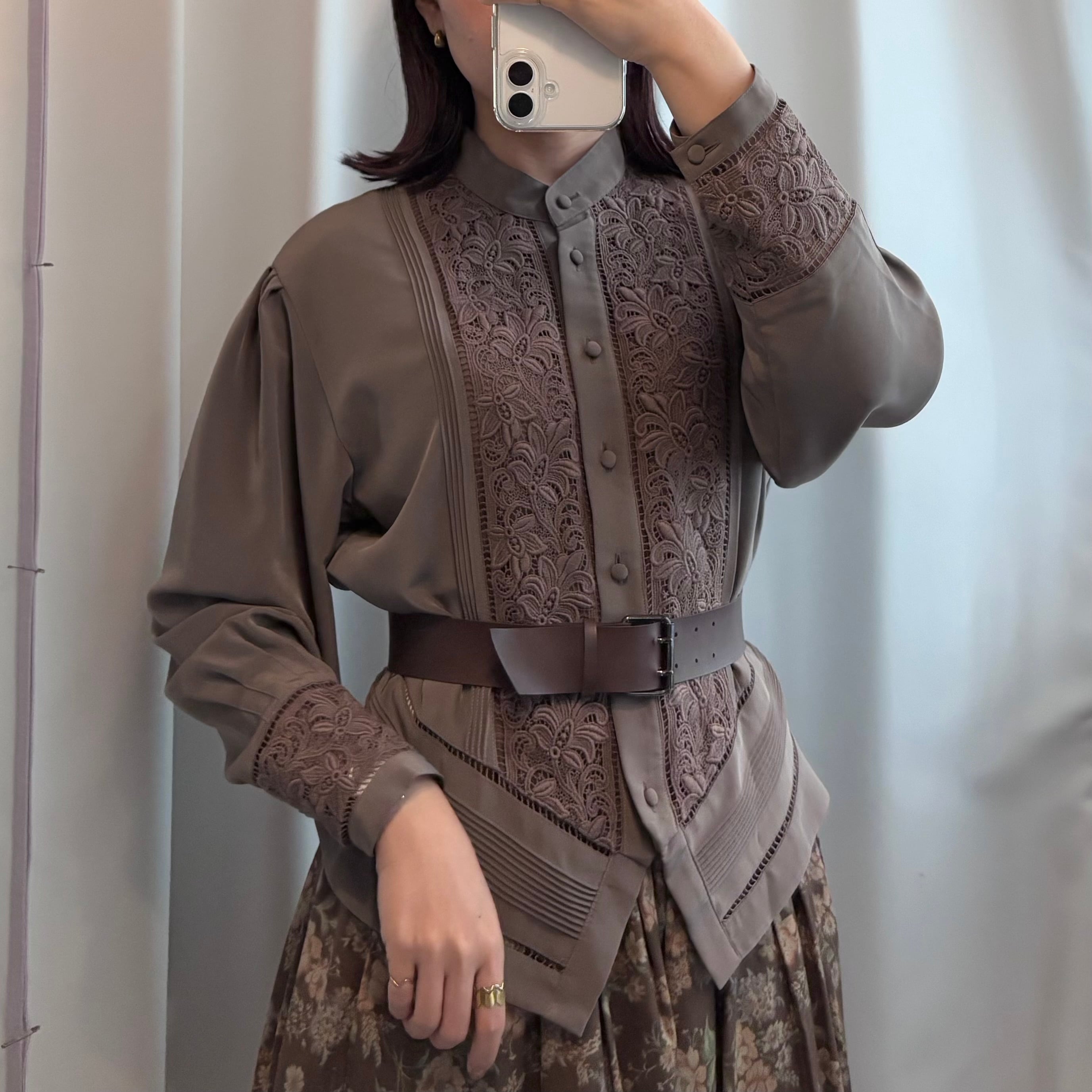 Lace & Pin Tuck Stand Collar Blouse〈レトロ古着 レース&ピンタック スタンドカラーブラウス ジャパンヴィンテージ Japan Vintage〉