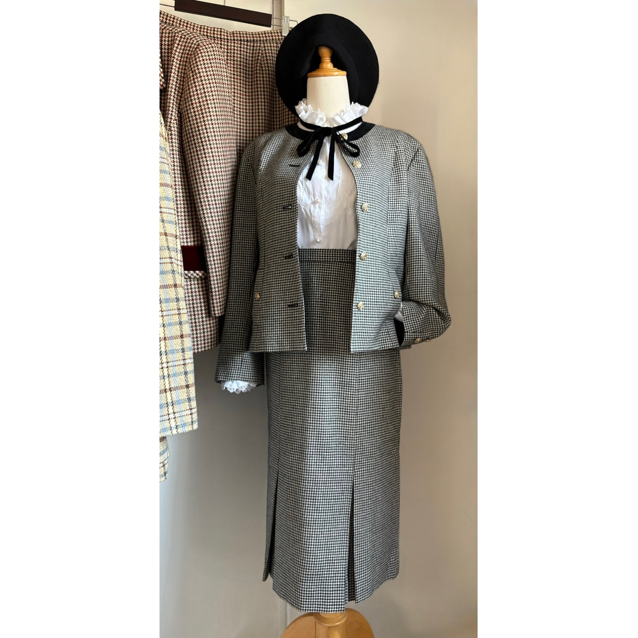 Collarless Houndstooth Set〈レトロ古着 ノーカラー 千鳥格子 セットアップ〉