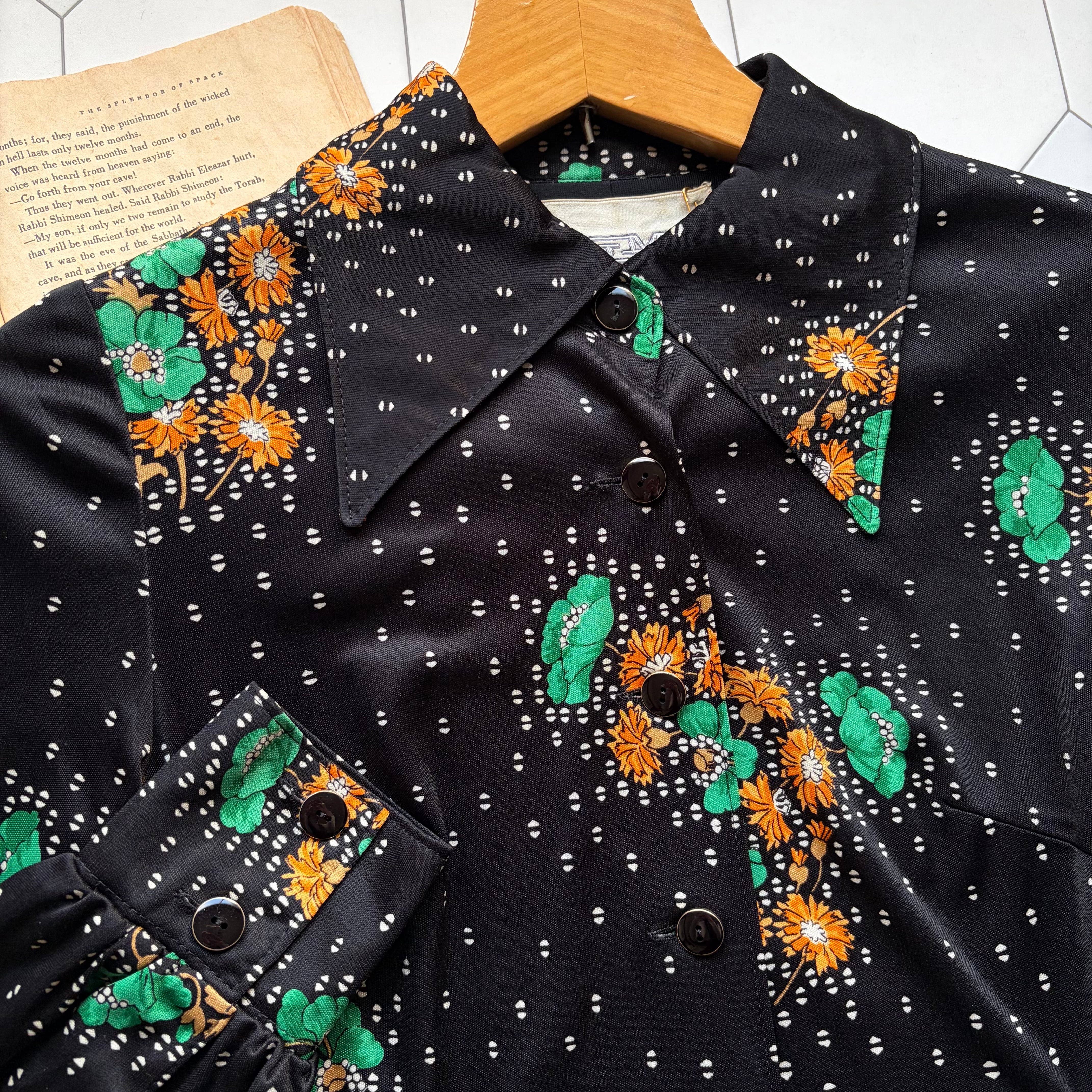 Psychedelic Flower Print Belted Dress〈レトロ古着 サイケデリック 花柄 ベルト付き ワンピース ジャパンヴィンテージ Japan Vintage〉