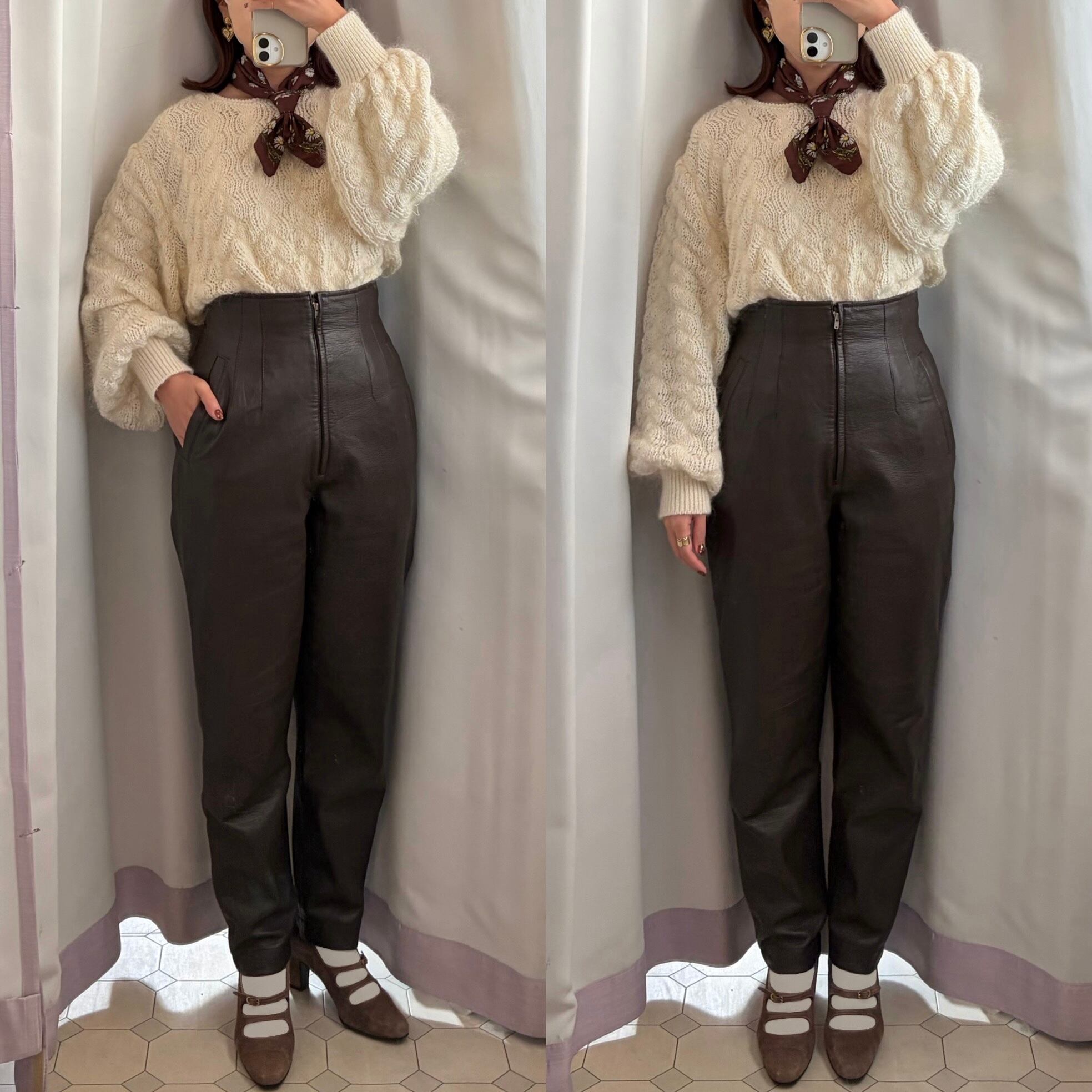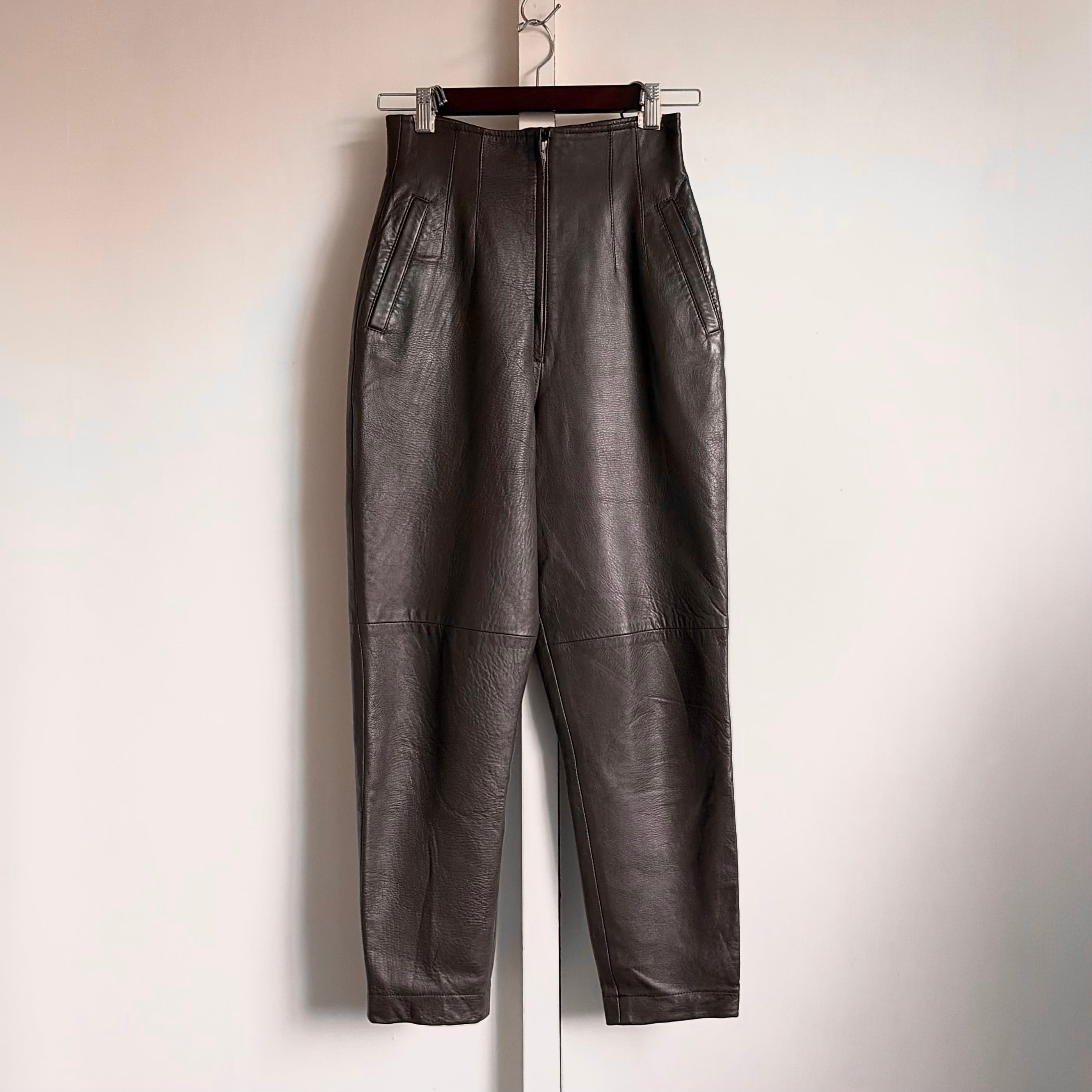 Sheepskin Leather Tapered Pants〈レトロ古着 シープレザー テーパードパンツ 本革 日本製 ジャパンヴィンテージ Japan Vintage〉
