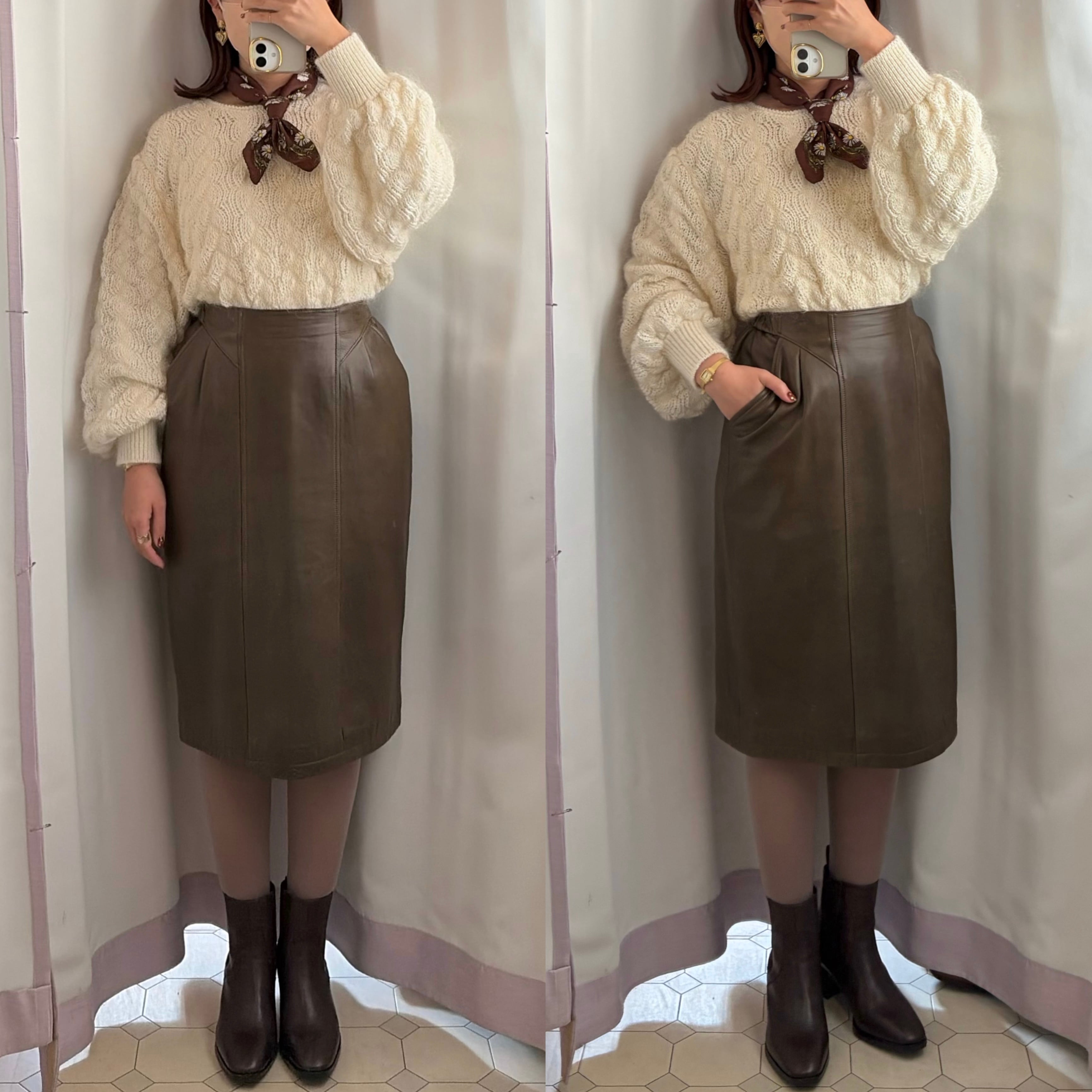 DAKS Real Leather Tight Skirt 〈レトロ古着 ダックス リアルレザー タイトスカート 本革 ジャパンヴィンテージ Japan Vintage〉