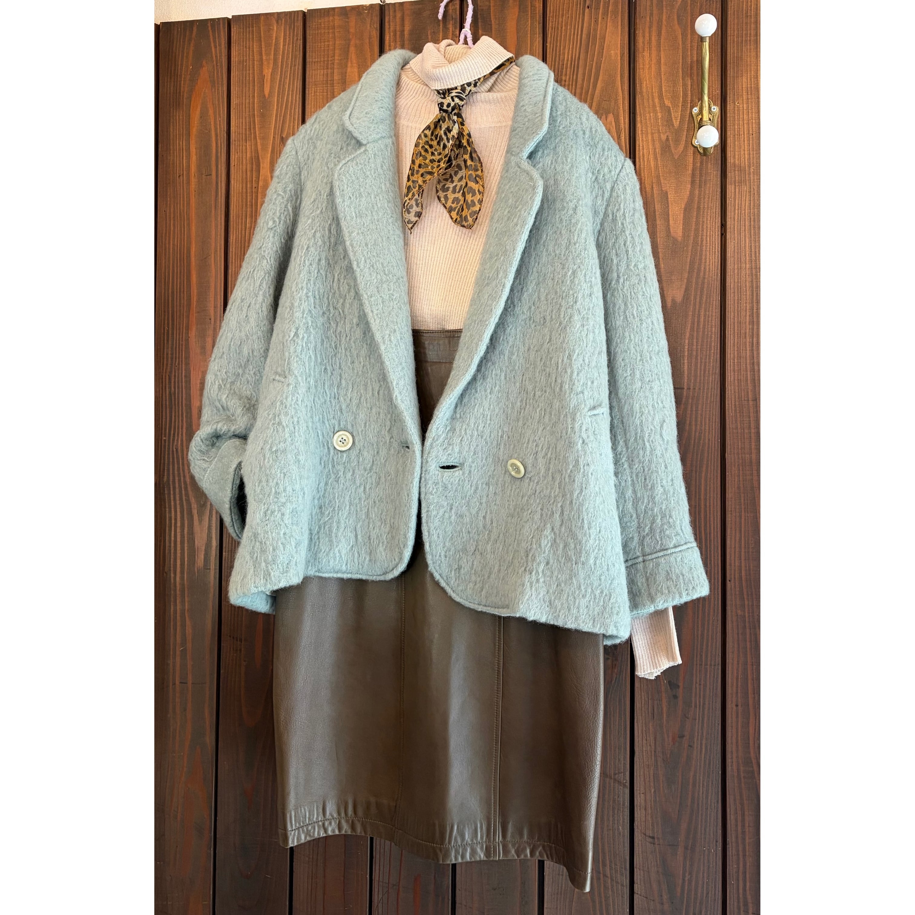 ふわふわのニットや甘めのブラウスと合わせて質感のギャップを楽しむのもおすすめです✴︎