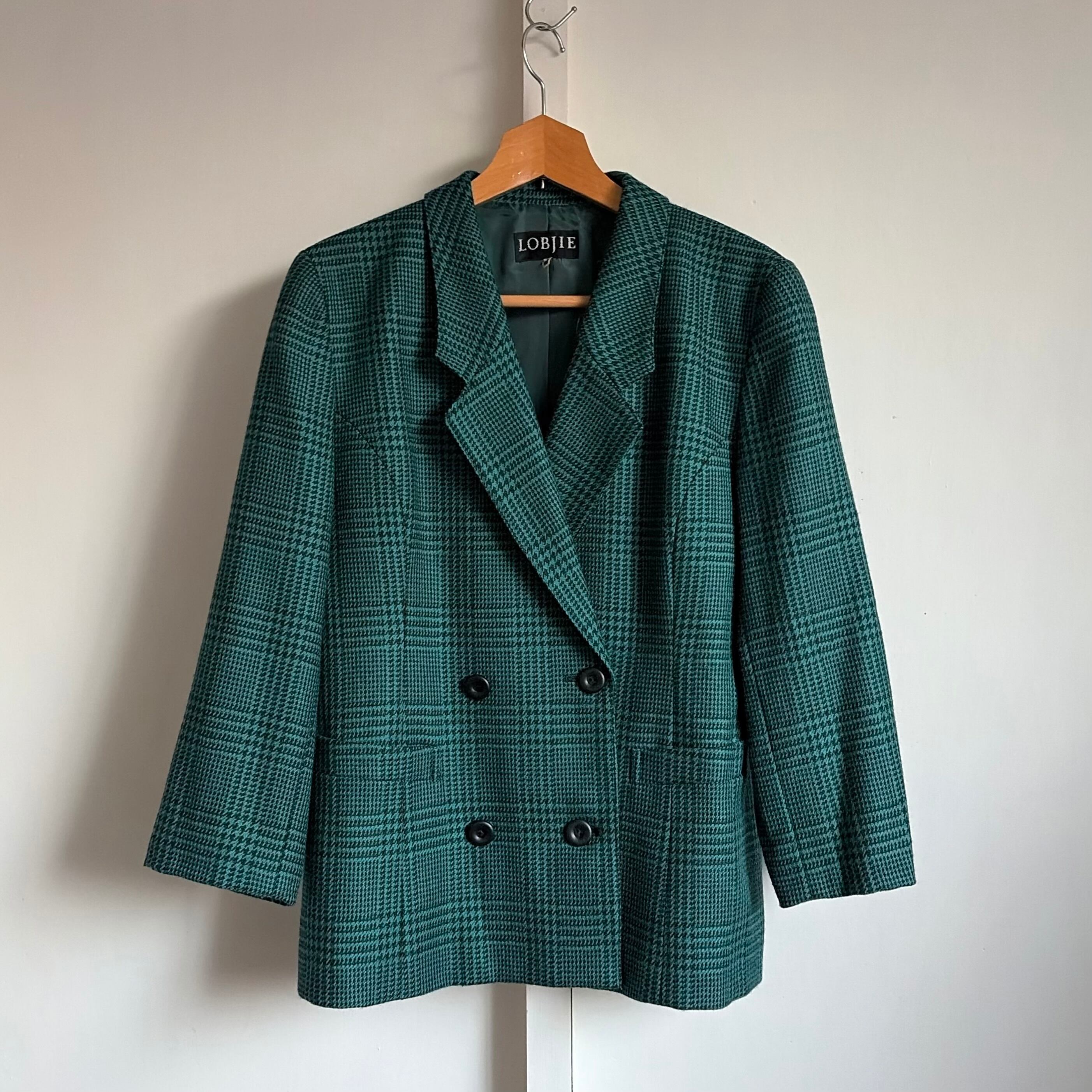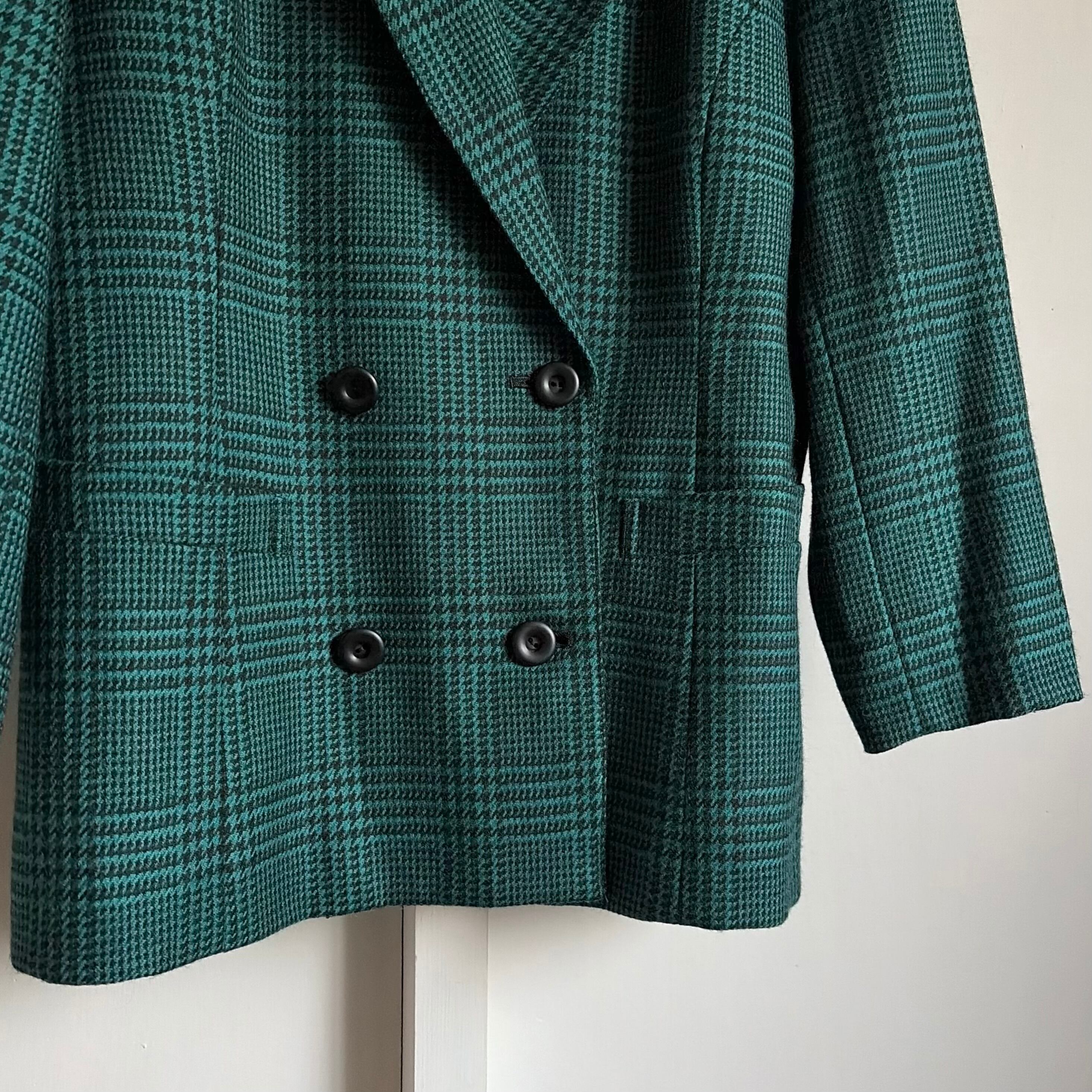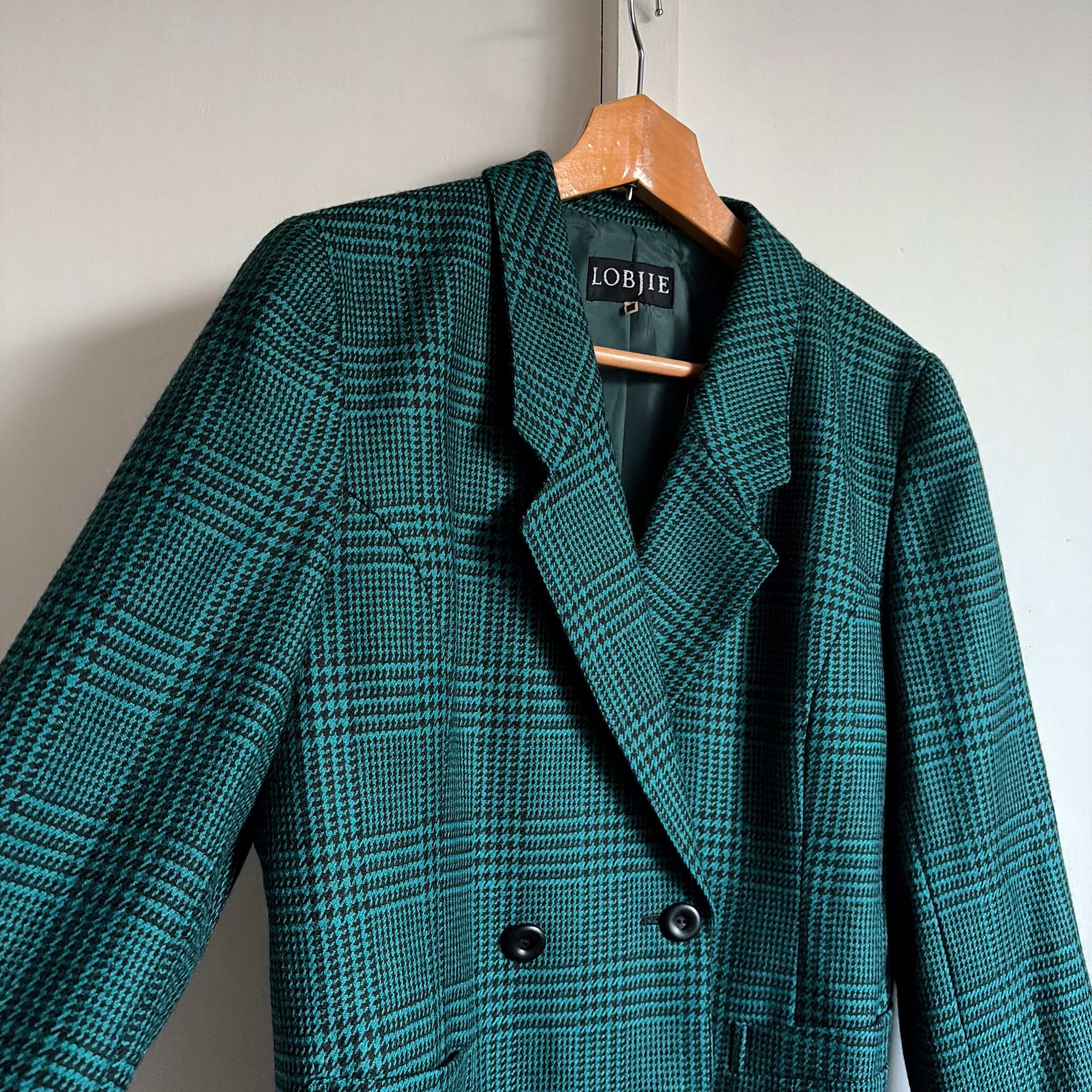 こちらはエメラルドグリーンとブラックのグレンチェックのテーラードジャケット