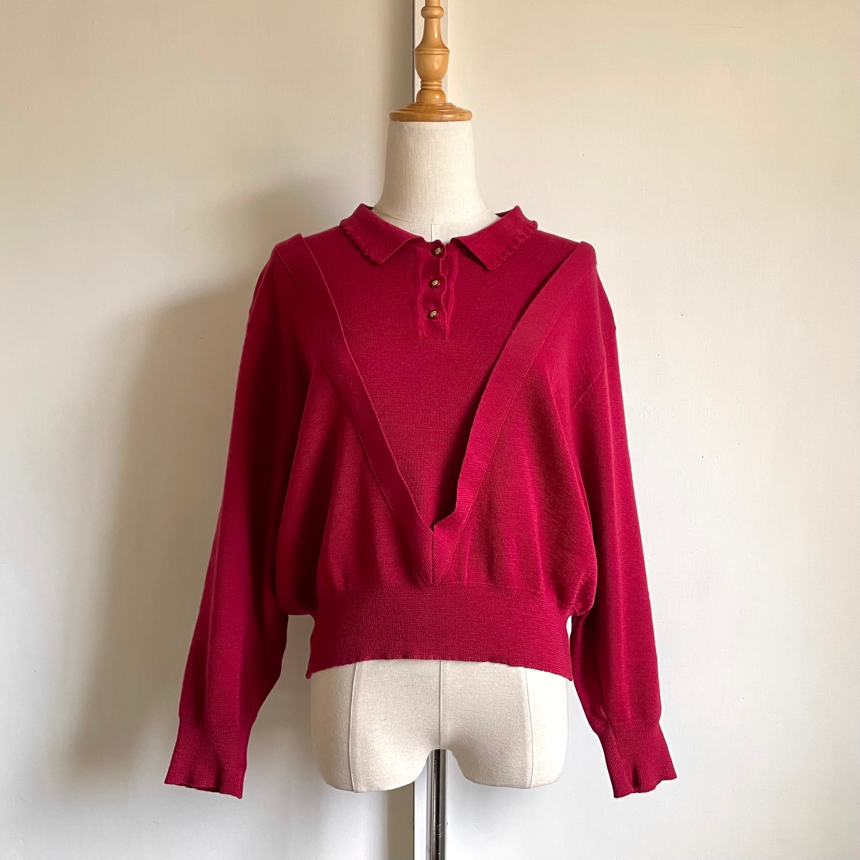 Deep Red Knit Polo 〈レトロ古着 ディープレッド ニットポロ ジャパンヴィンテージ Japan Vintage〉