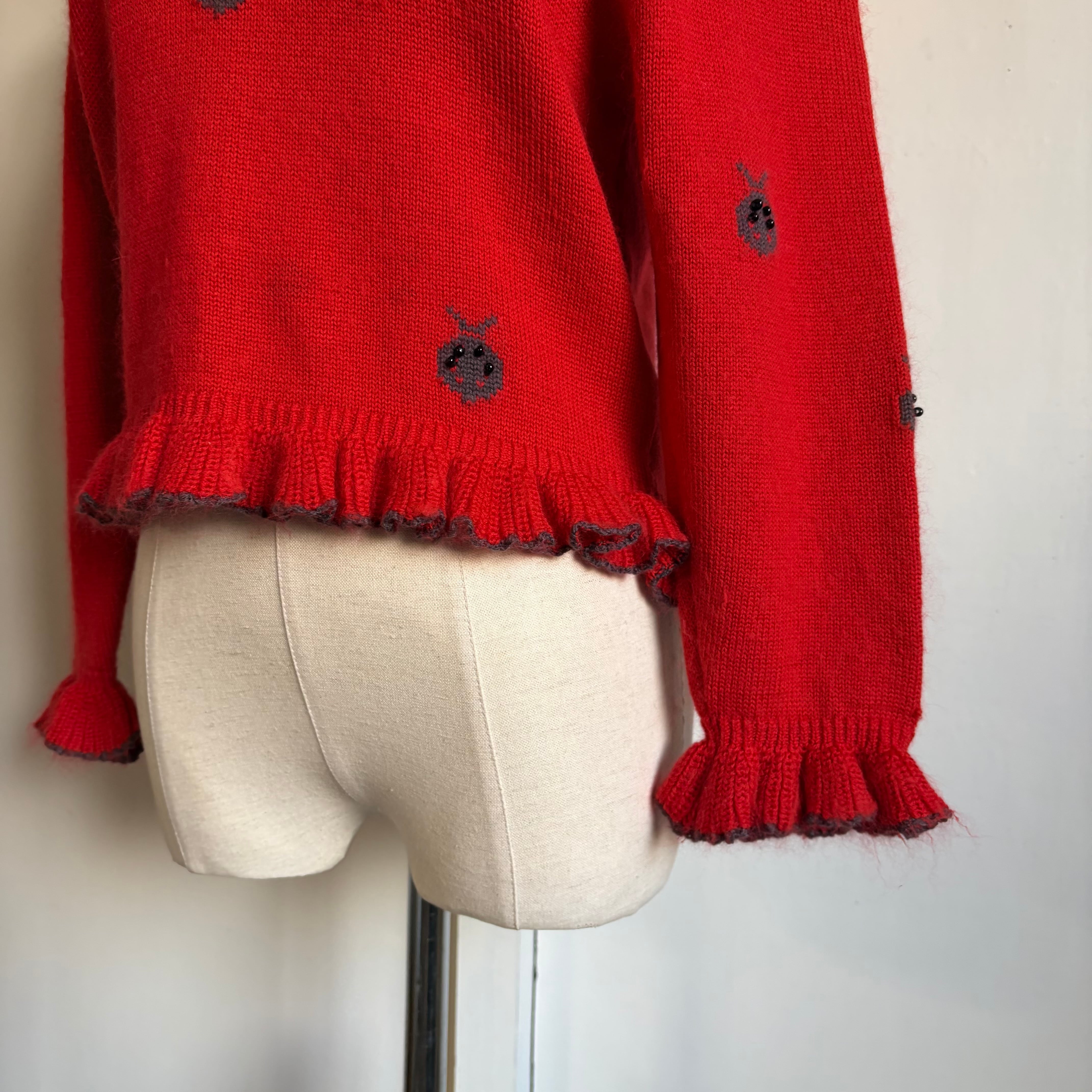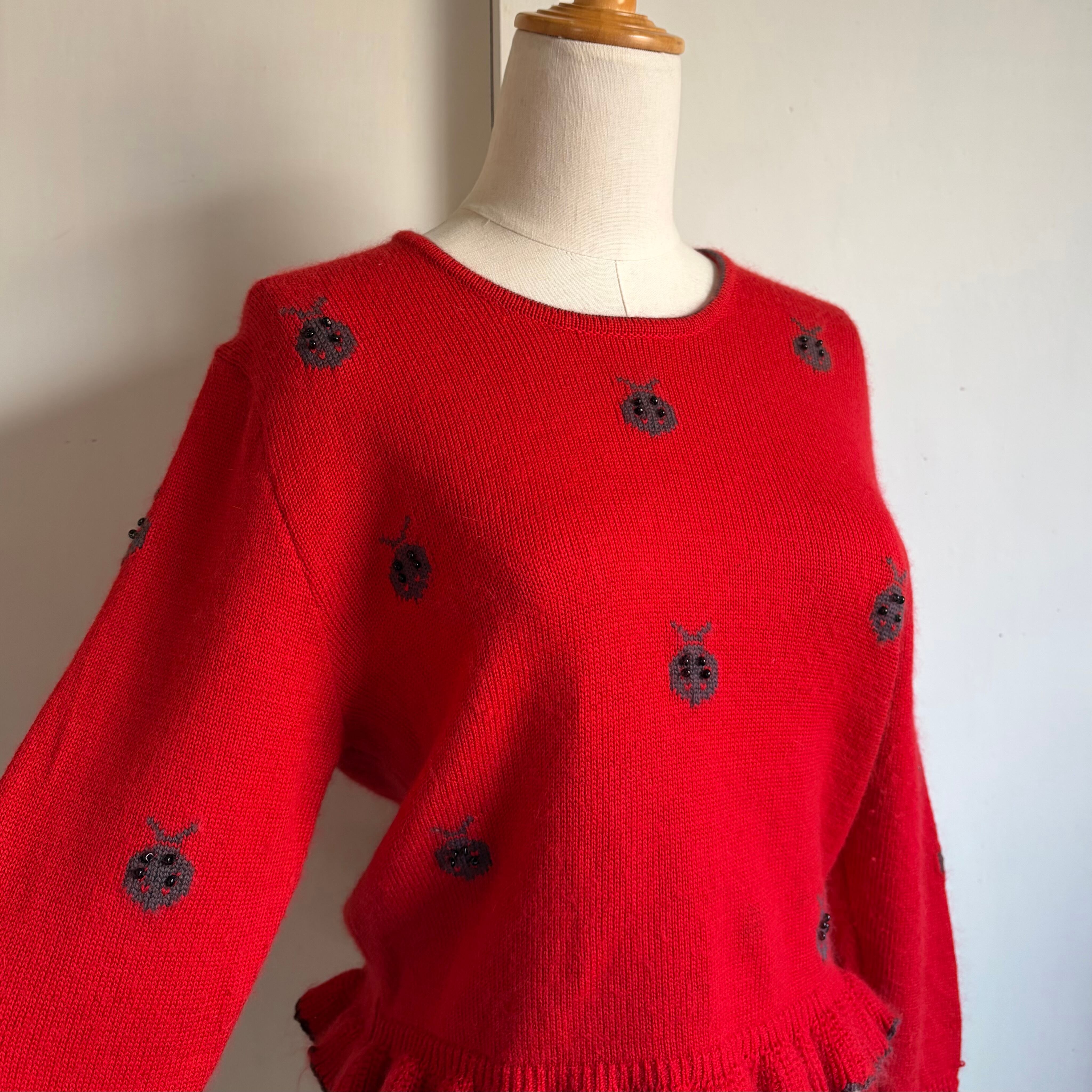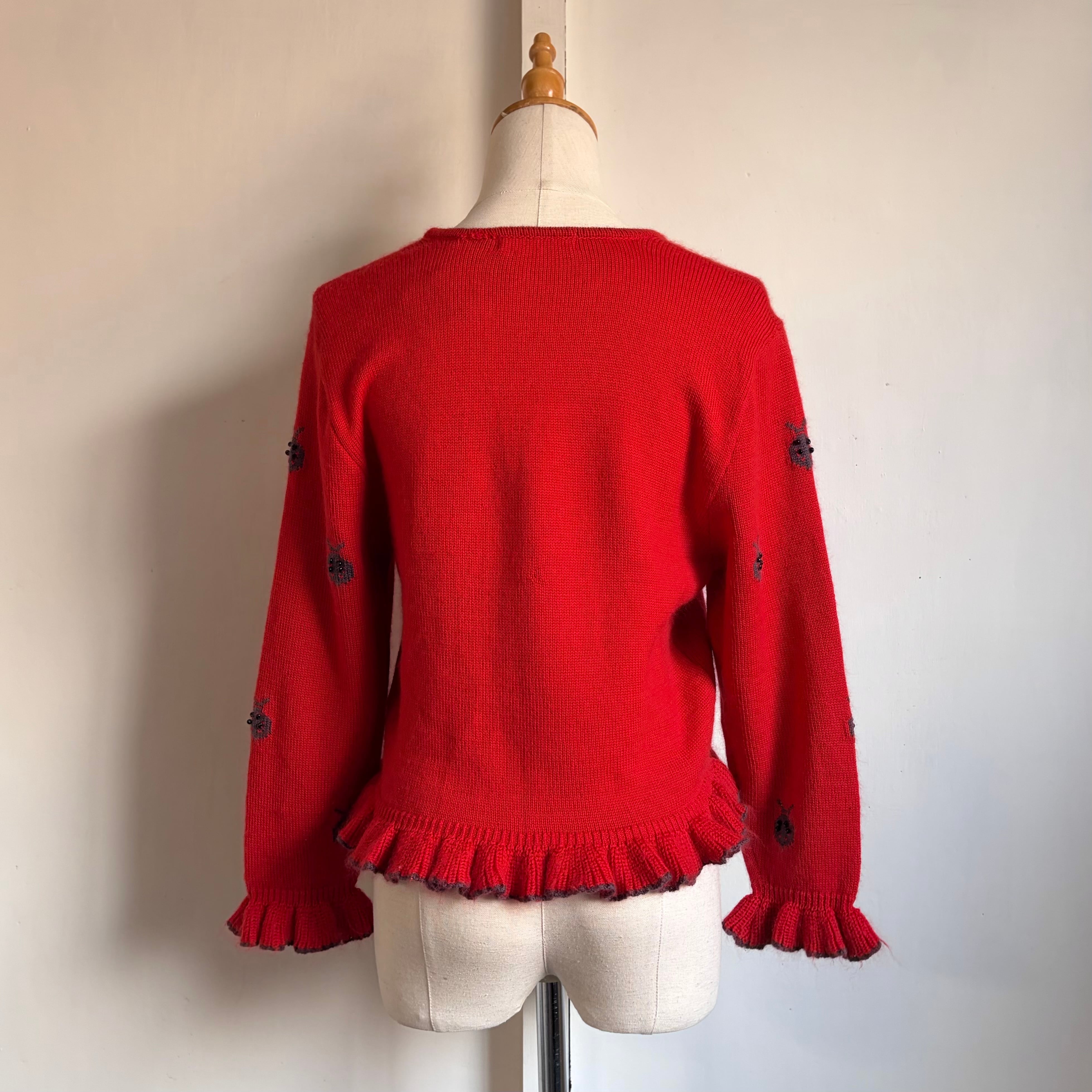 Ladybug Motif Ruffled Knit 〈レトロ古着 てんとう虫モチーフ フリルセーター ジャパンヴィンテージ Japan Vintage〉
