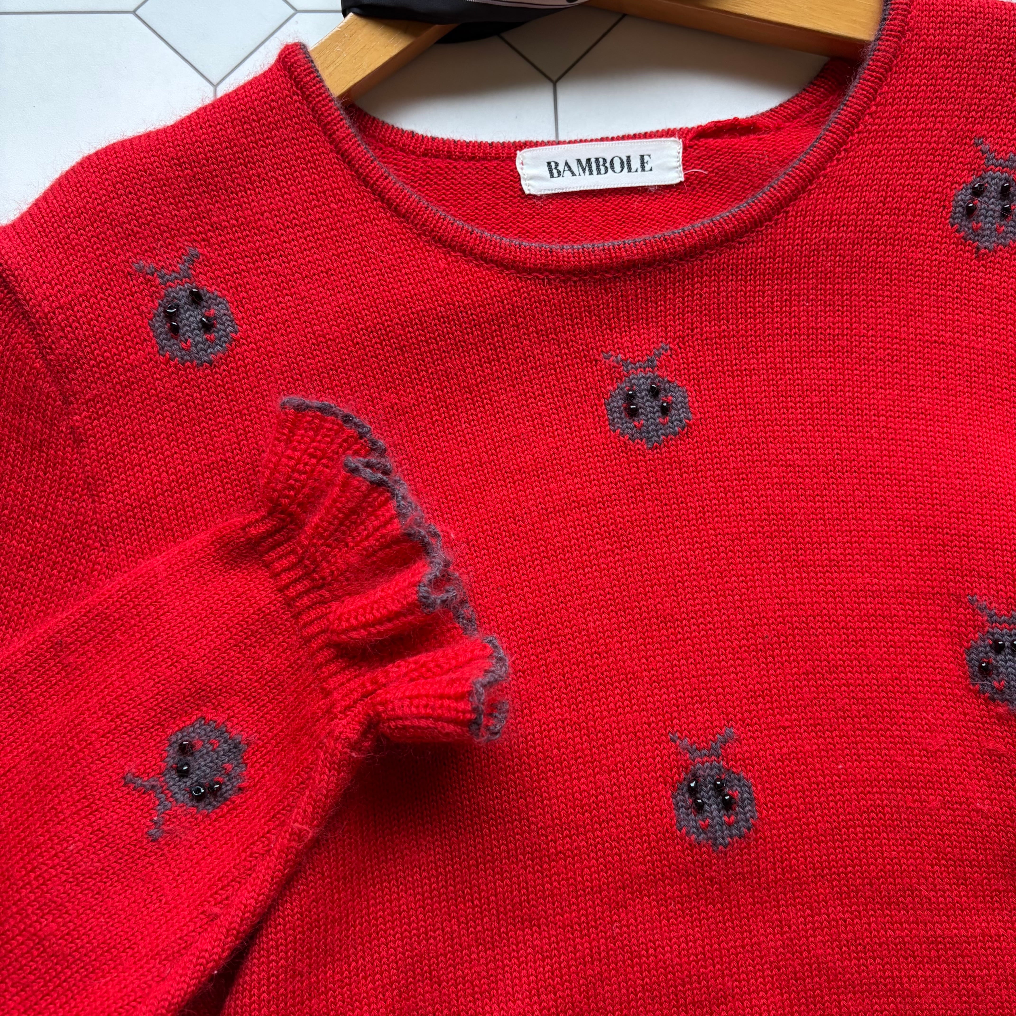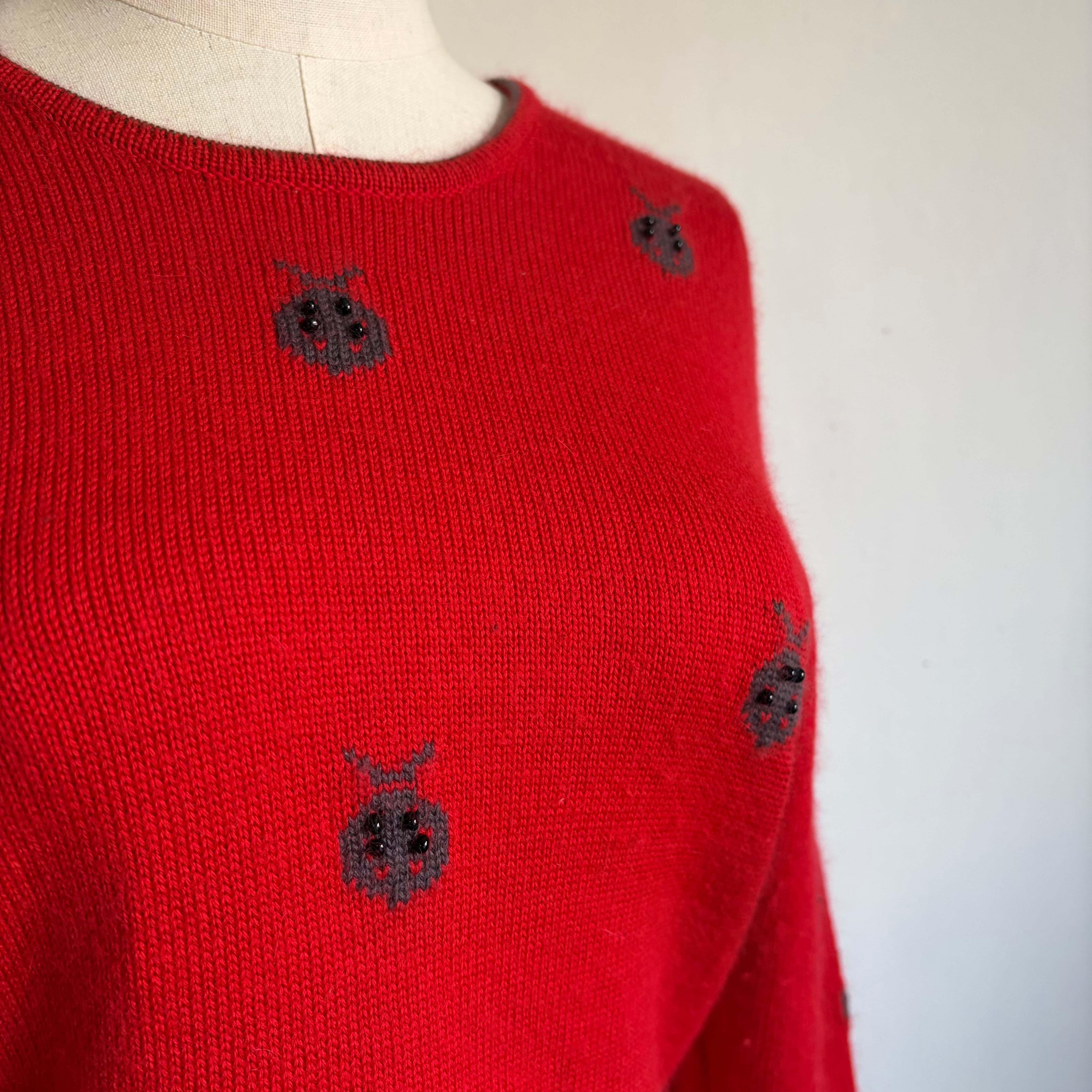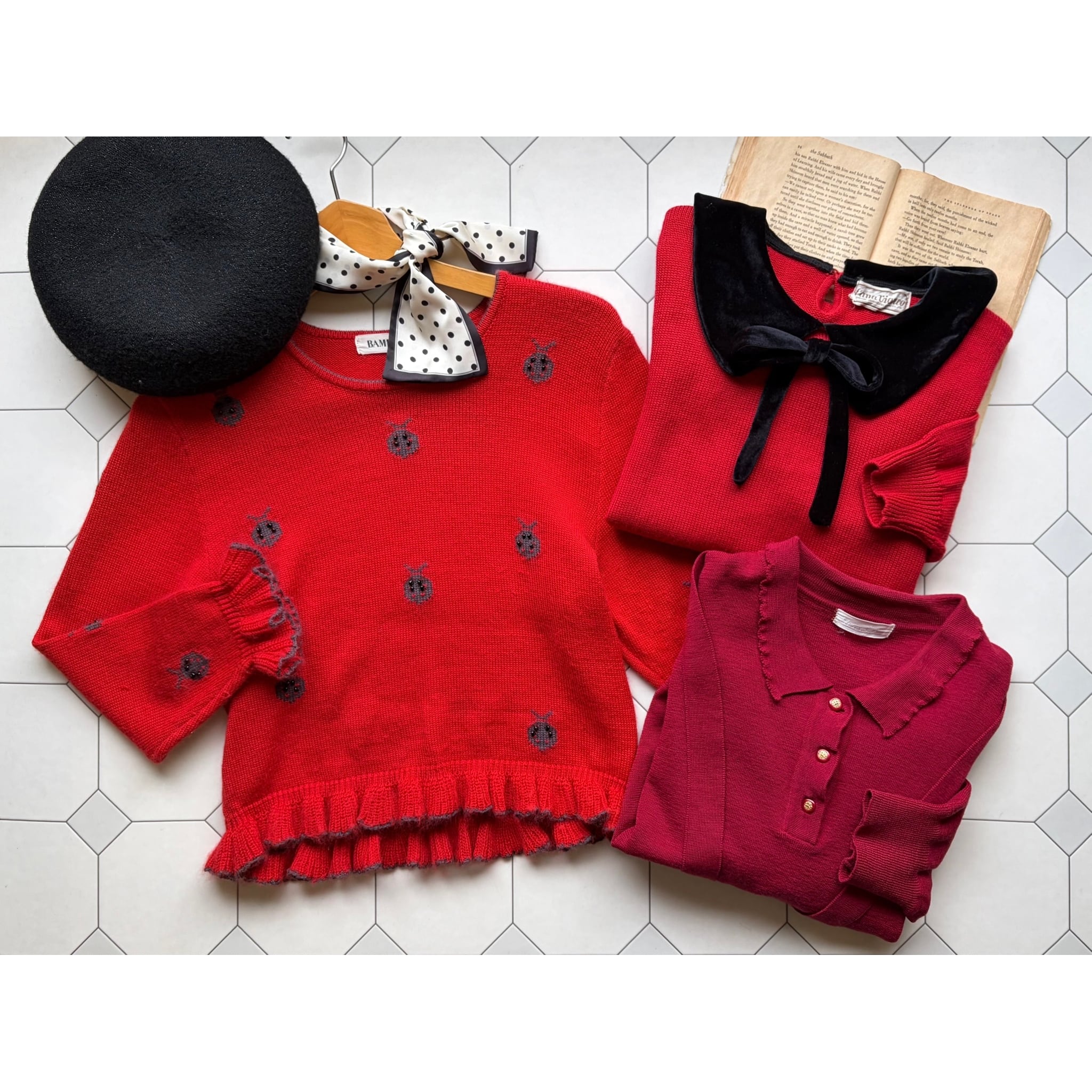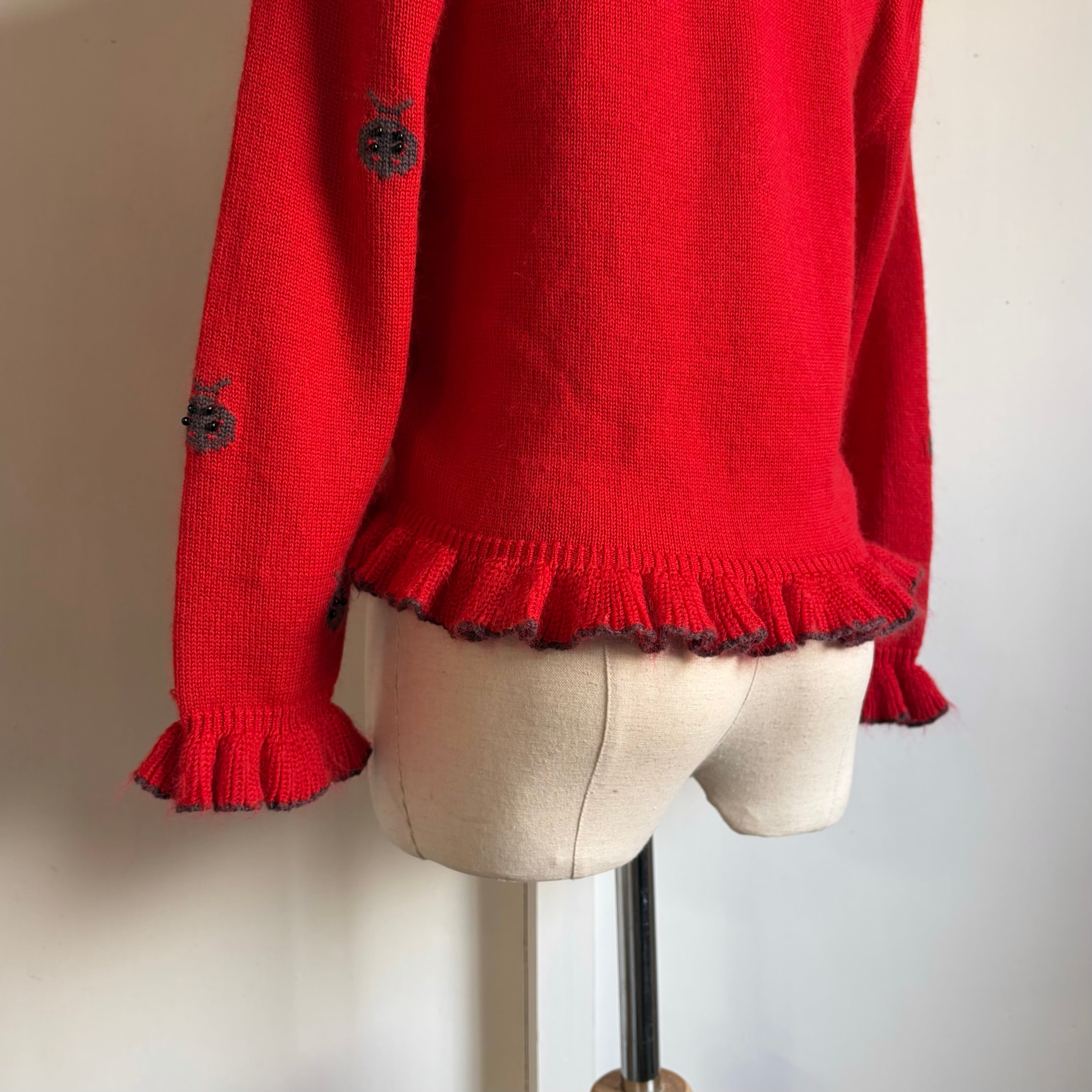 Ladybug Motif Ruffled Knit 〈レトロ古着 てんとう虫モチーフ フリルセーター ジャパンヴィンテージ Japan Vintage〉