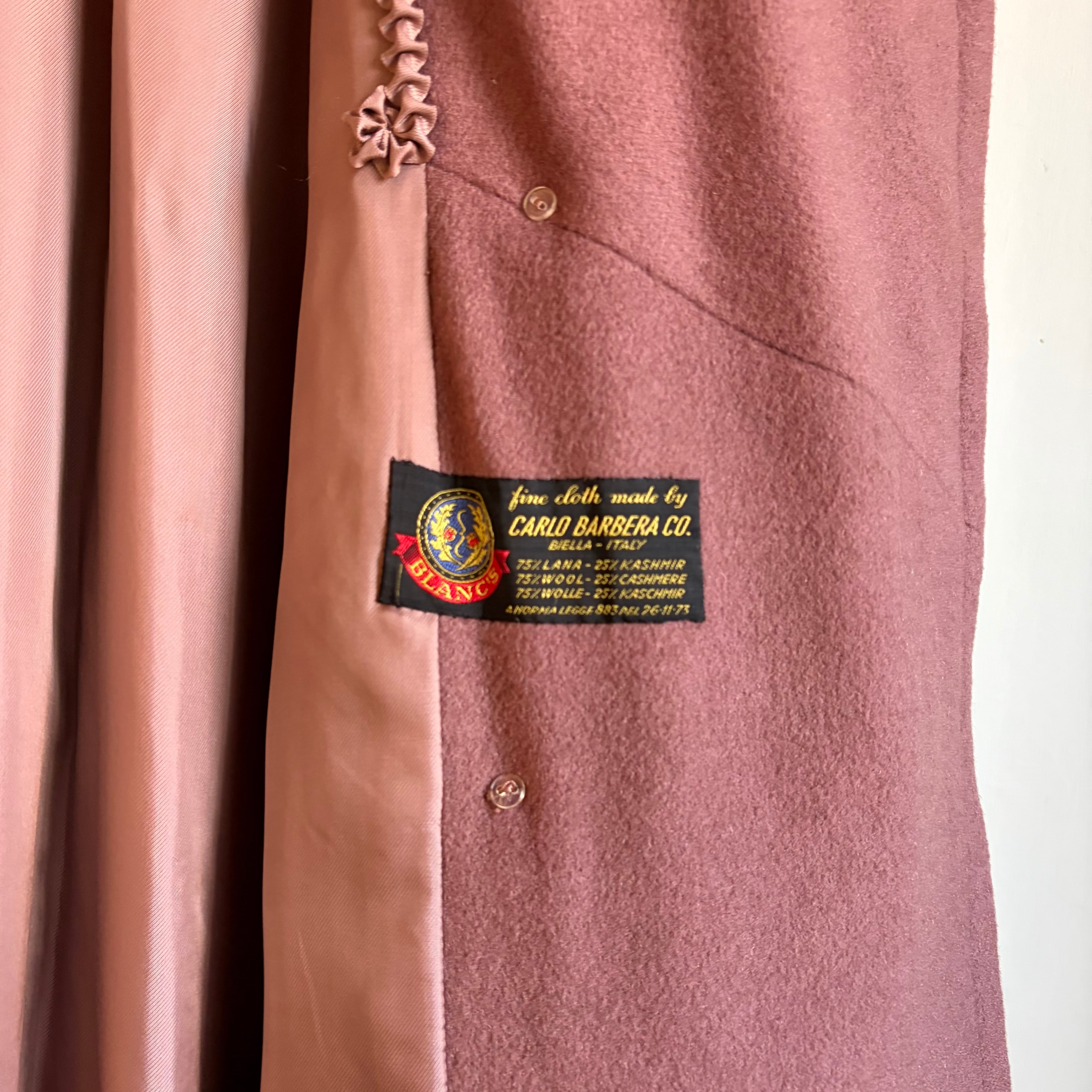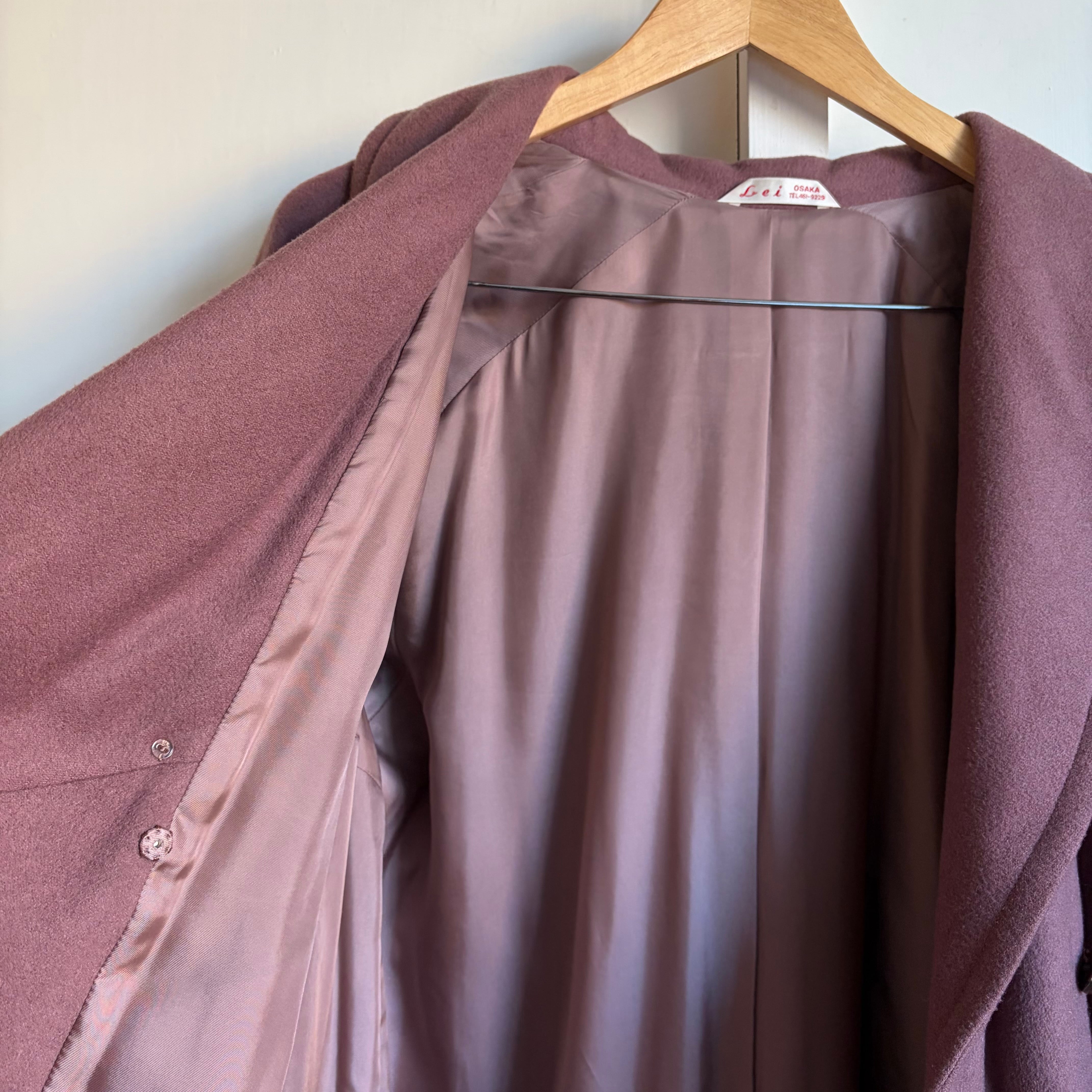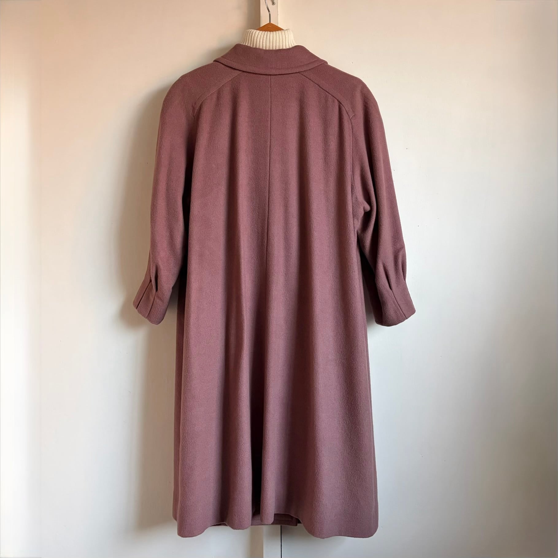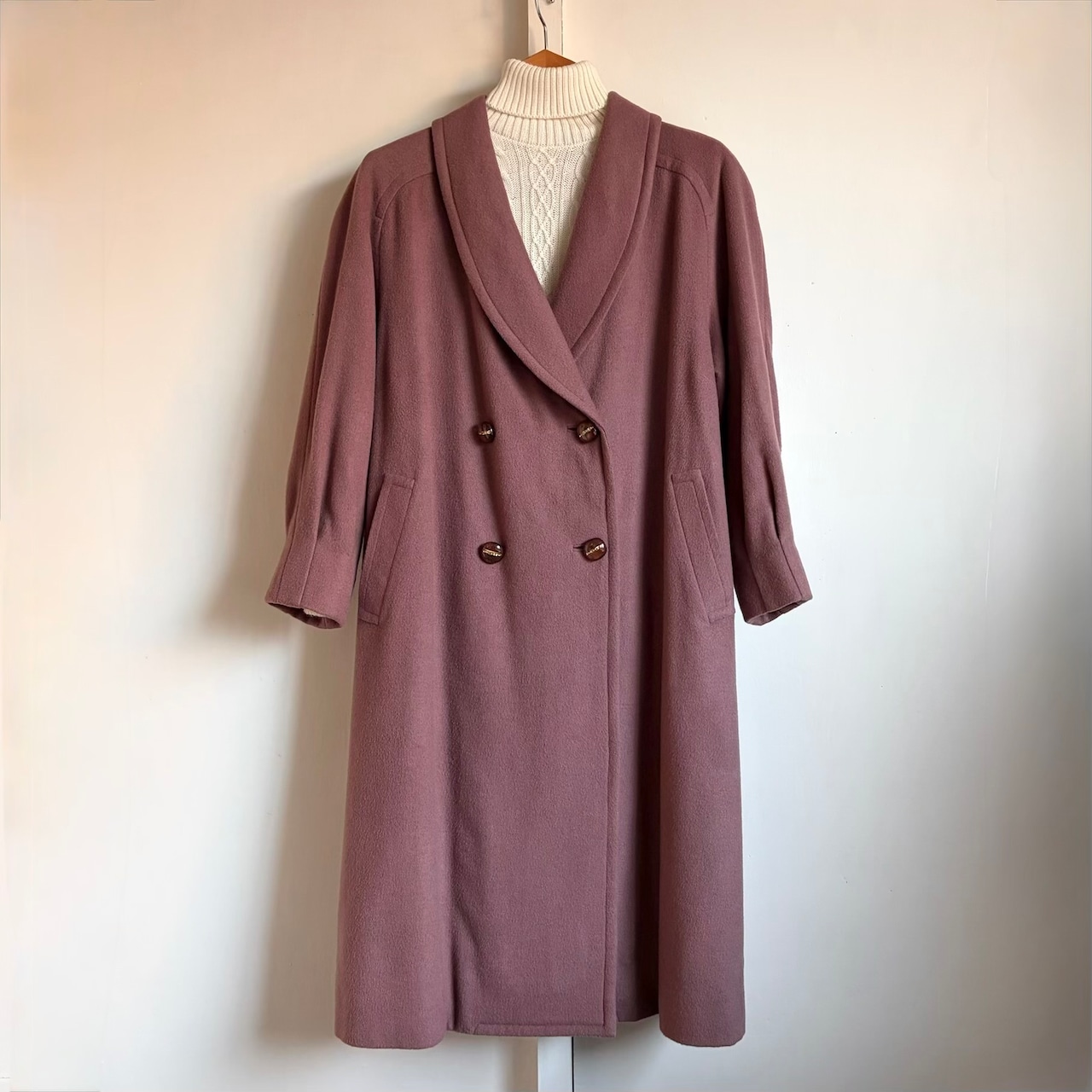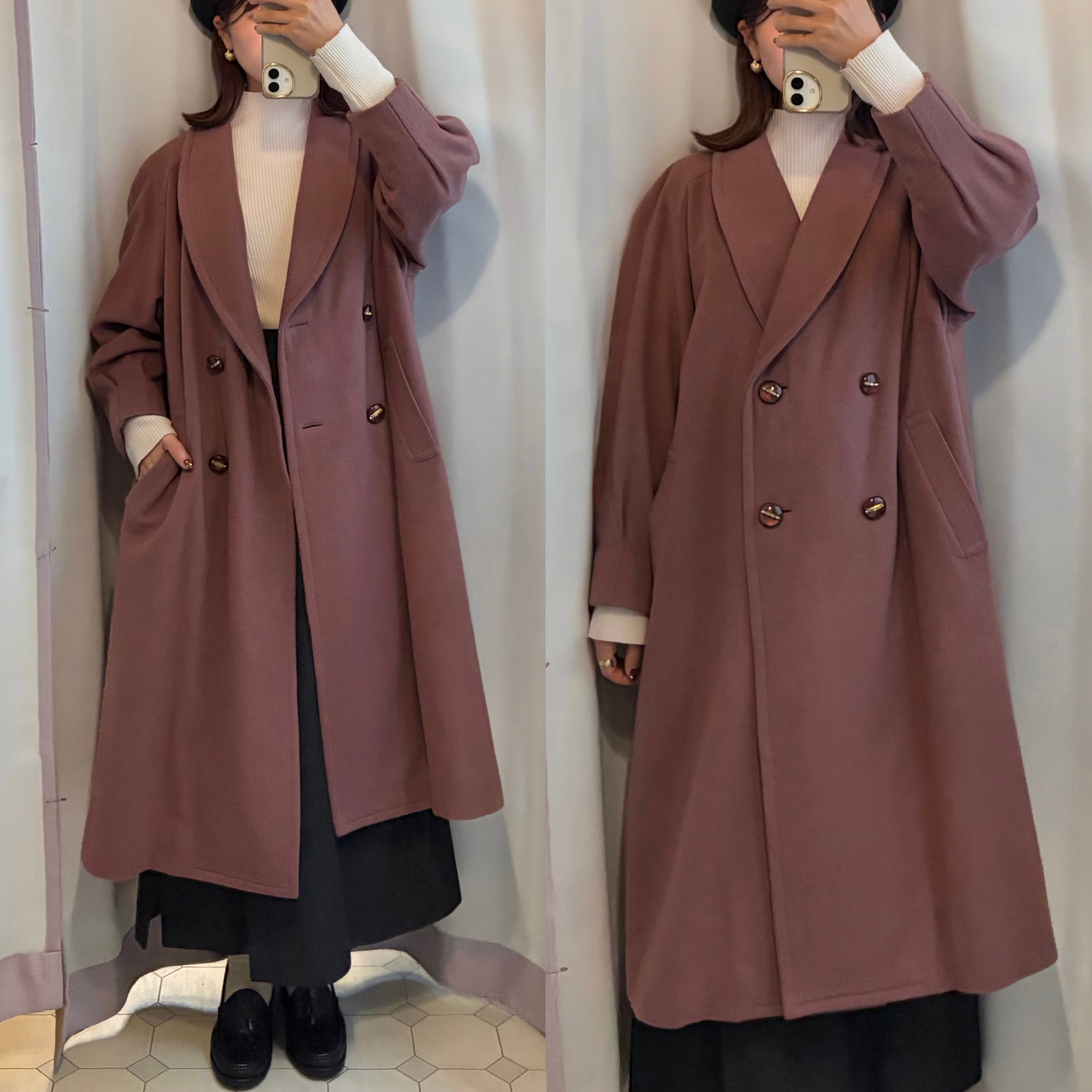 くすみがかったピンクが可愛いカシミヤ混のショールカラーコート