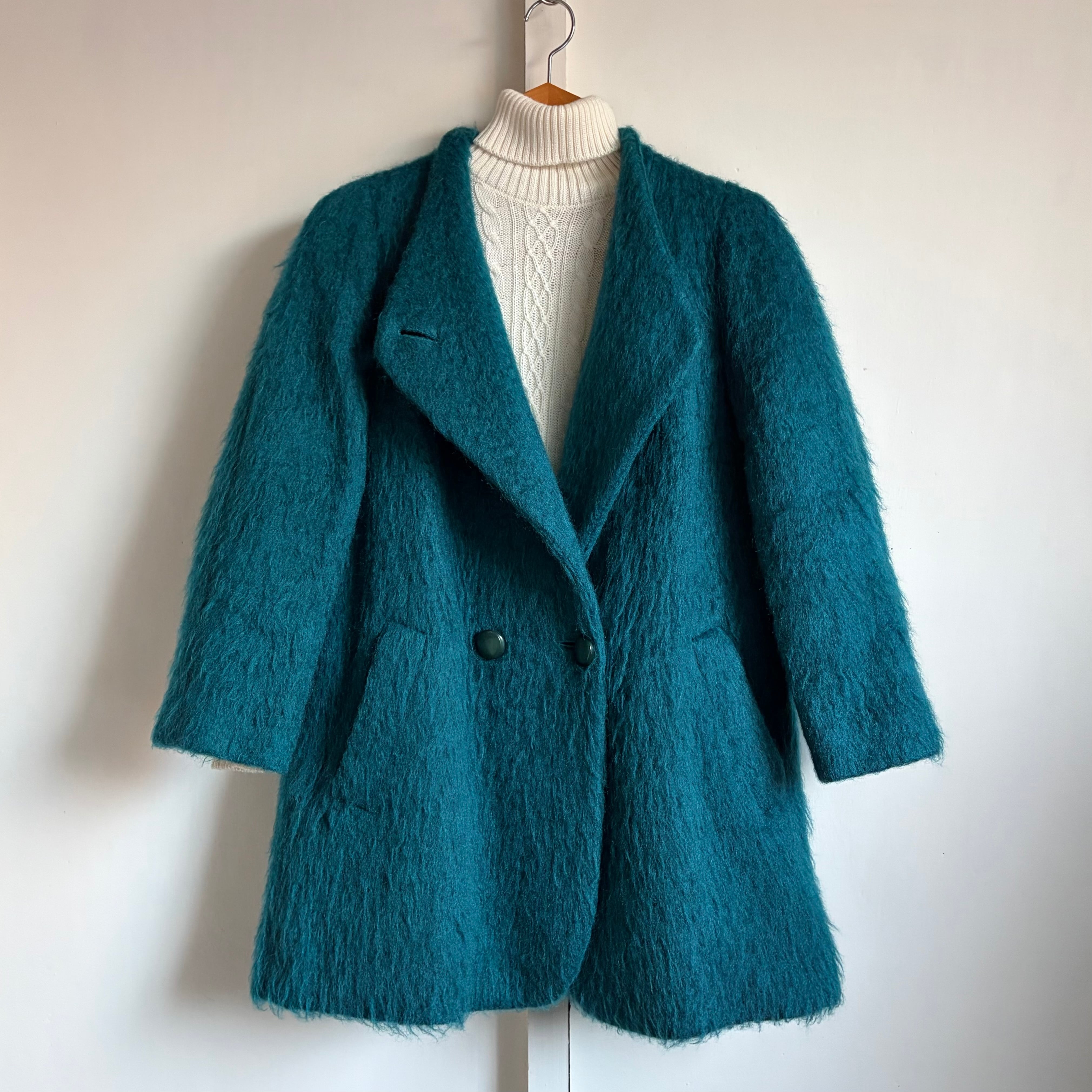 Peacock Blue Shaggy Coat〈レトロ古着 ピーコックブルーシャギーコート アウター ジャパンヴィンテージ Japan Vintage〉