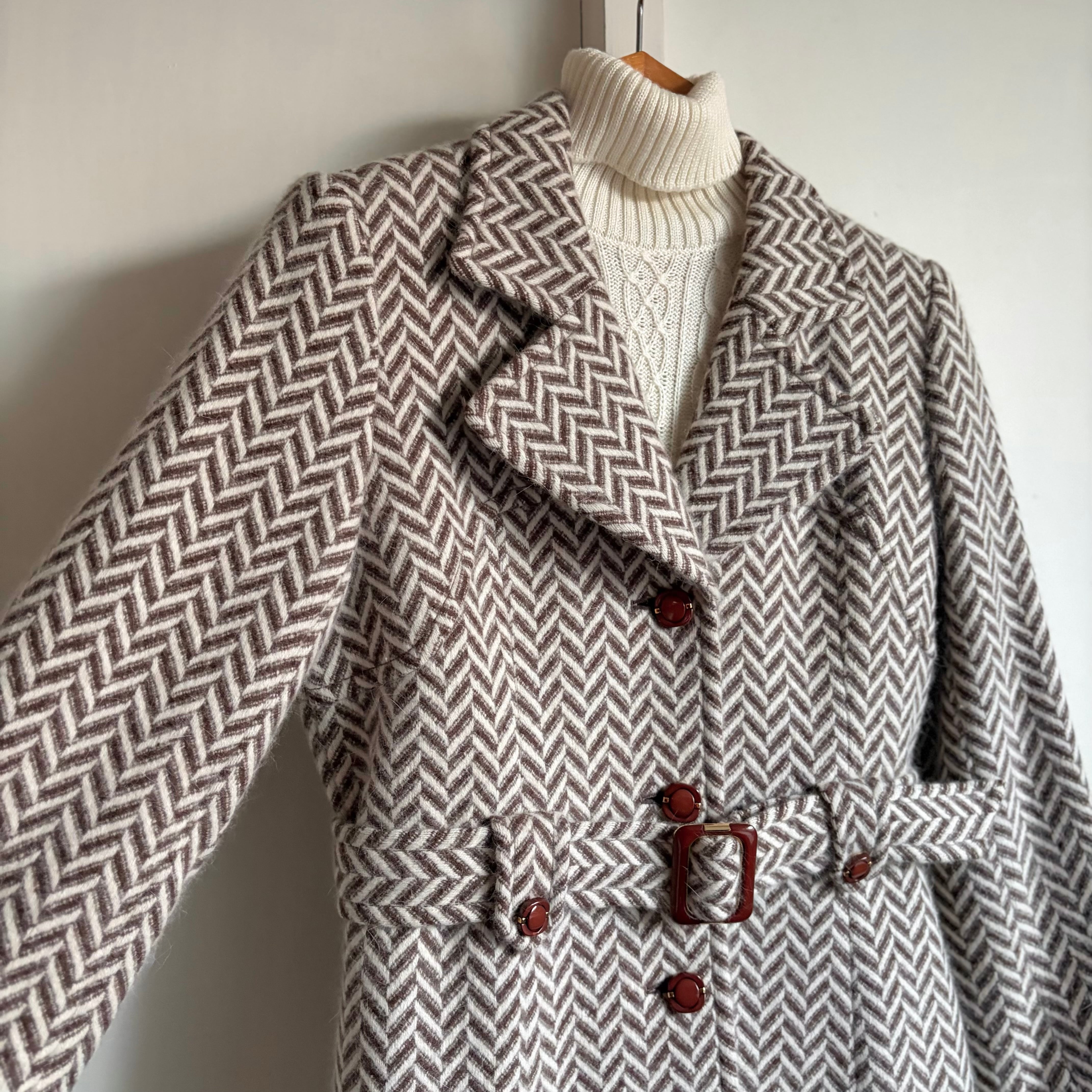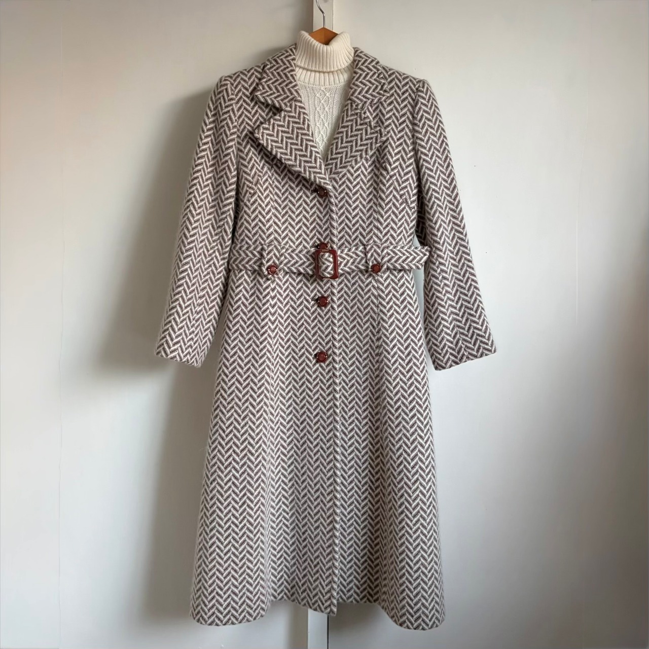 Herringbone Belted Coat〈レトロ古着 ヘリンボーン ベルテッドコート アウター ジャパンヴィンテージ Japan Vintage〉