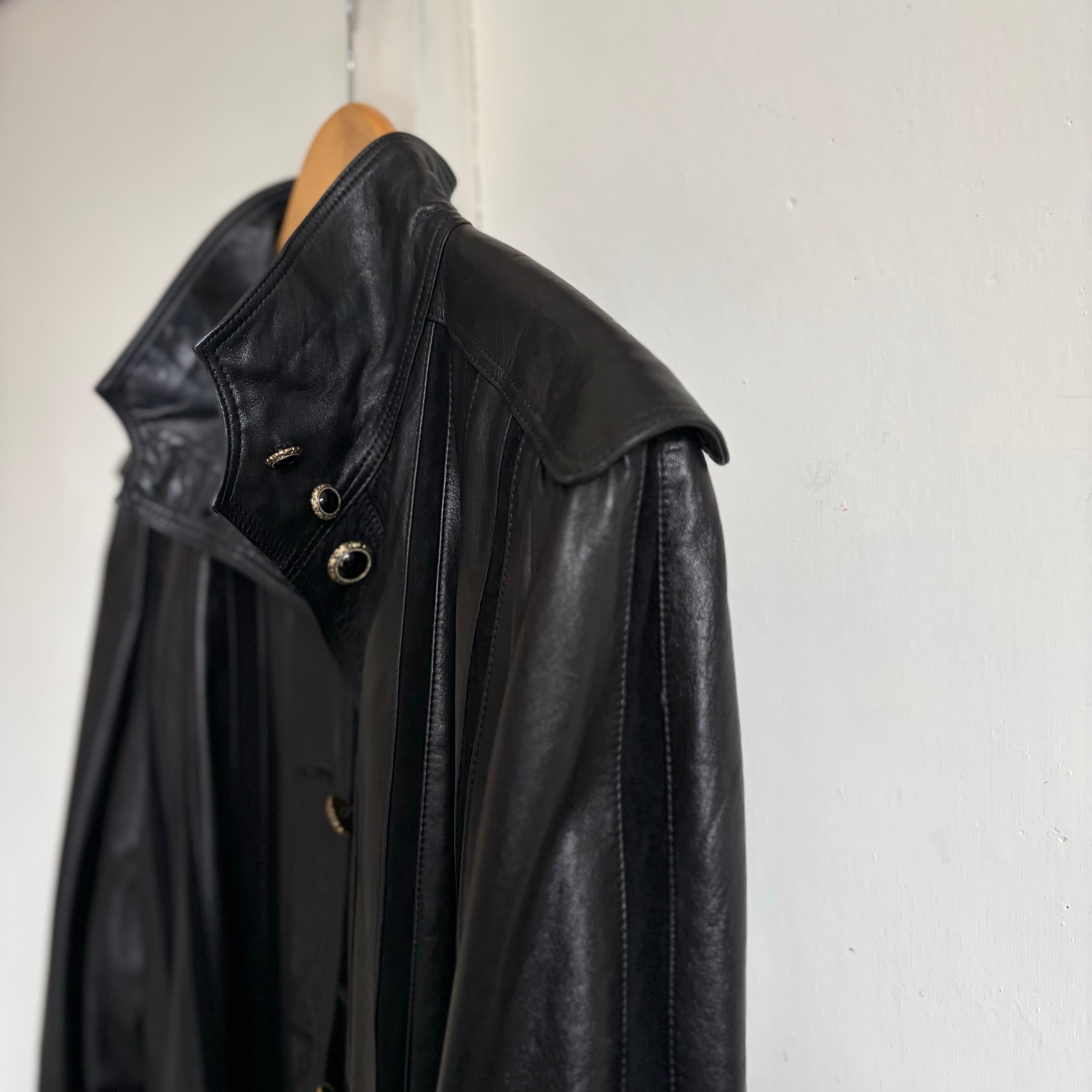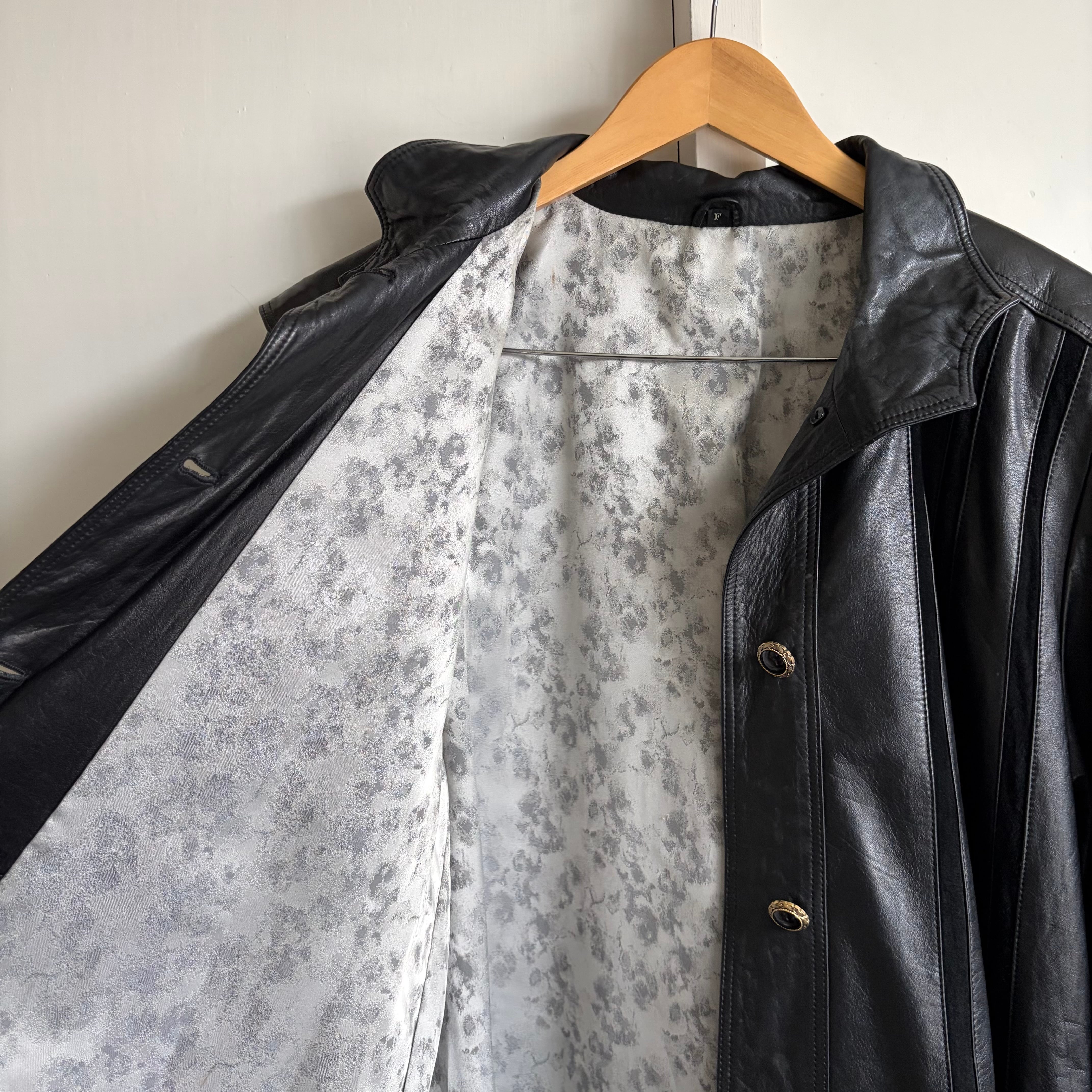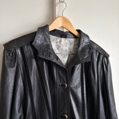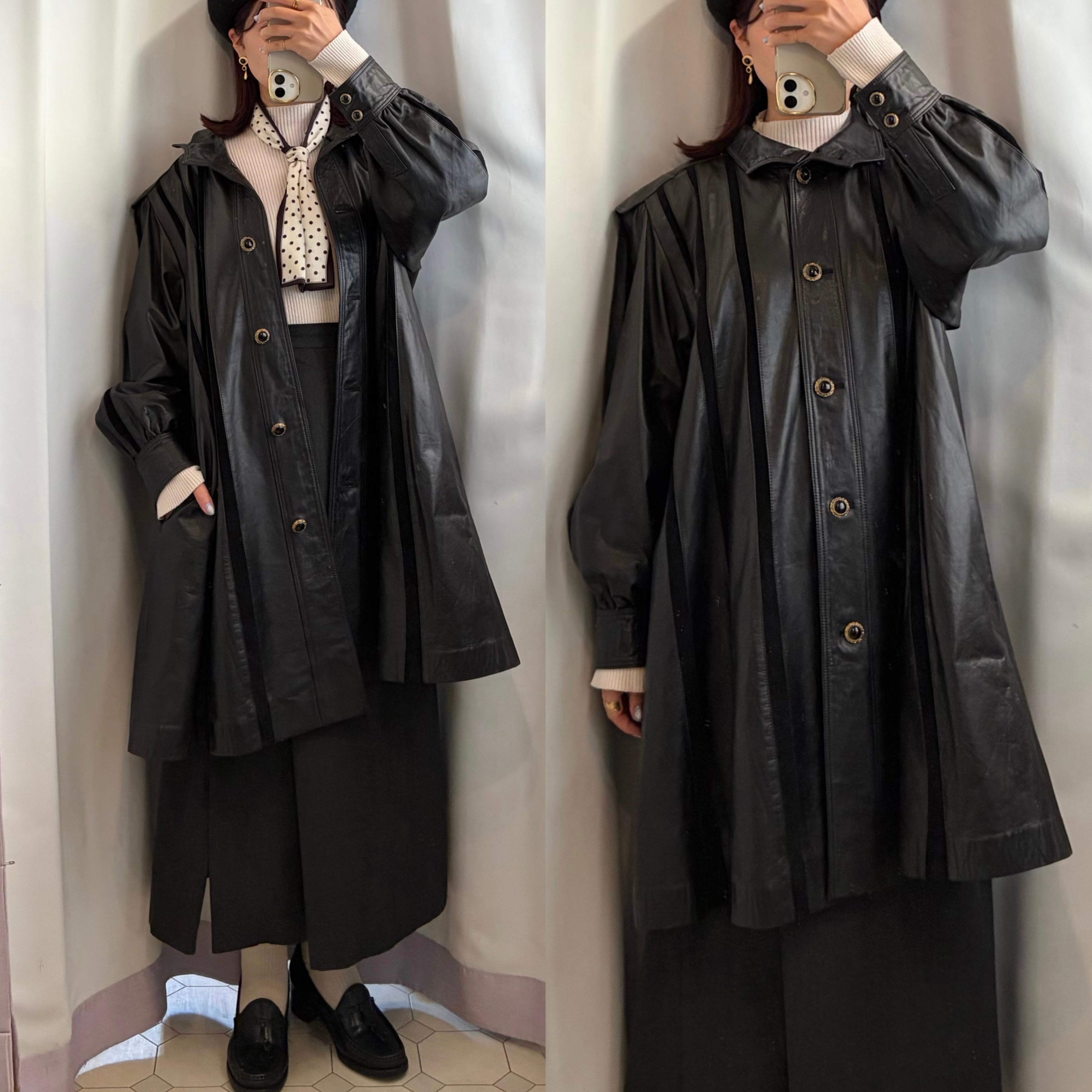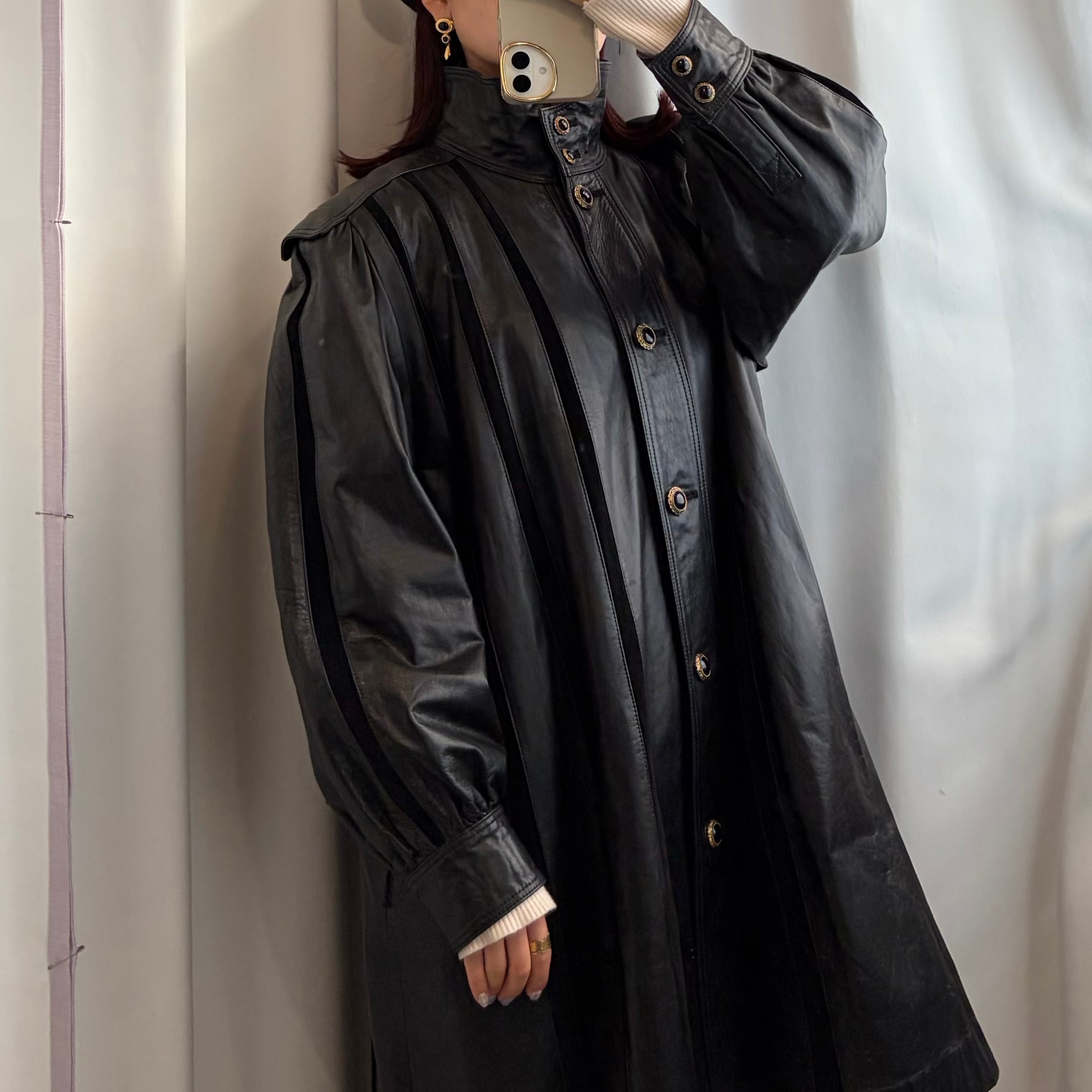 Cow Leather Stand Collar Coat〈レトロ古着 カウレザー スタンドカラーコート 黒 日本製 ジャパンヴィンテージ Japan Vintage〉